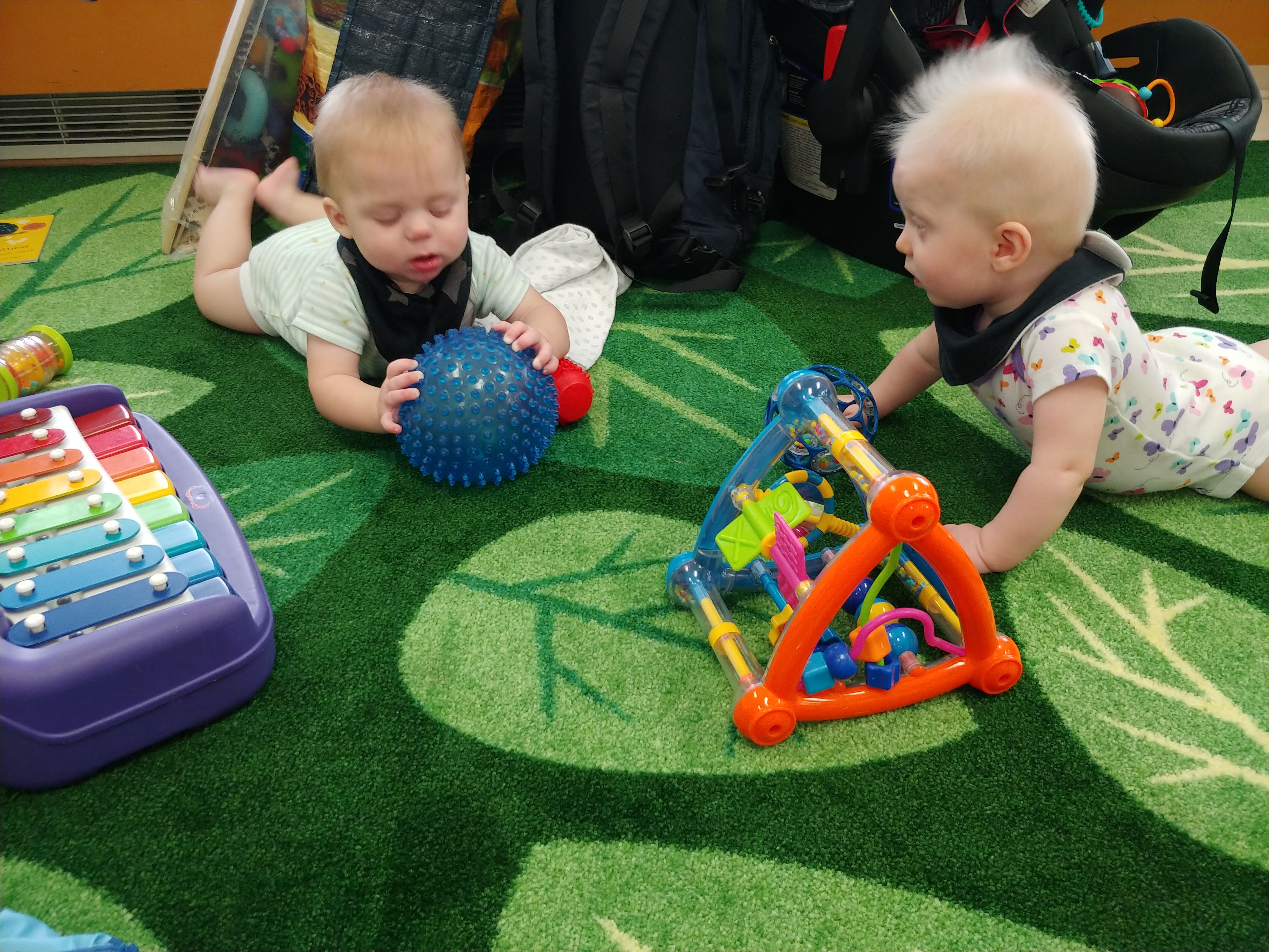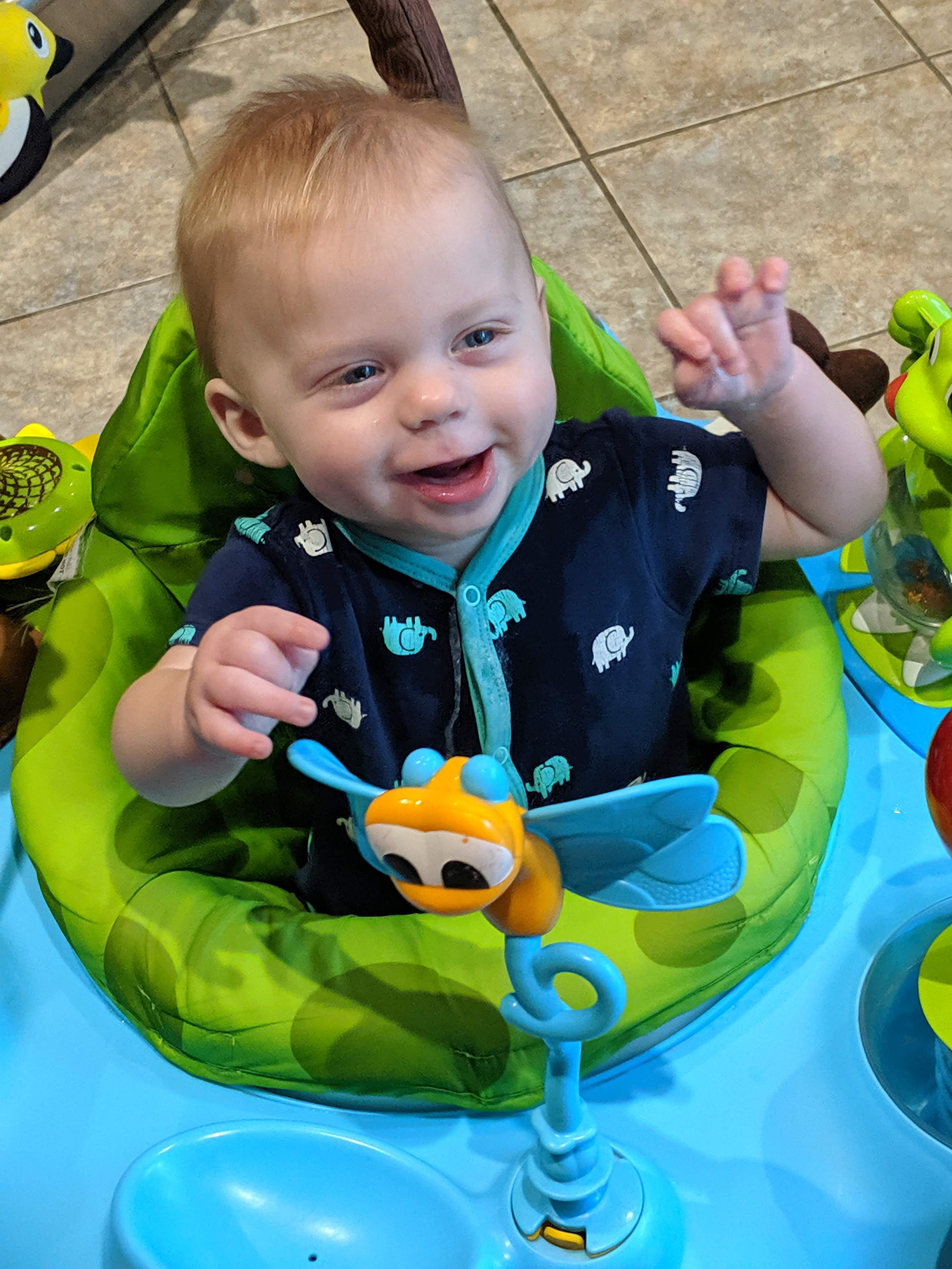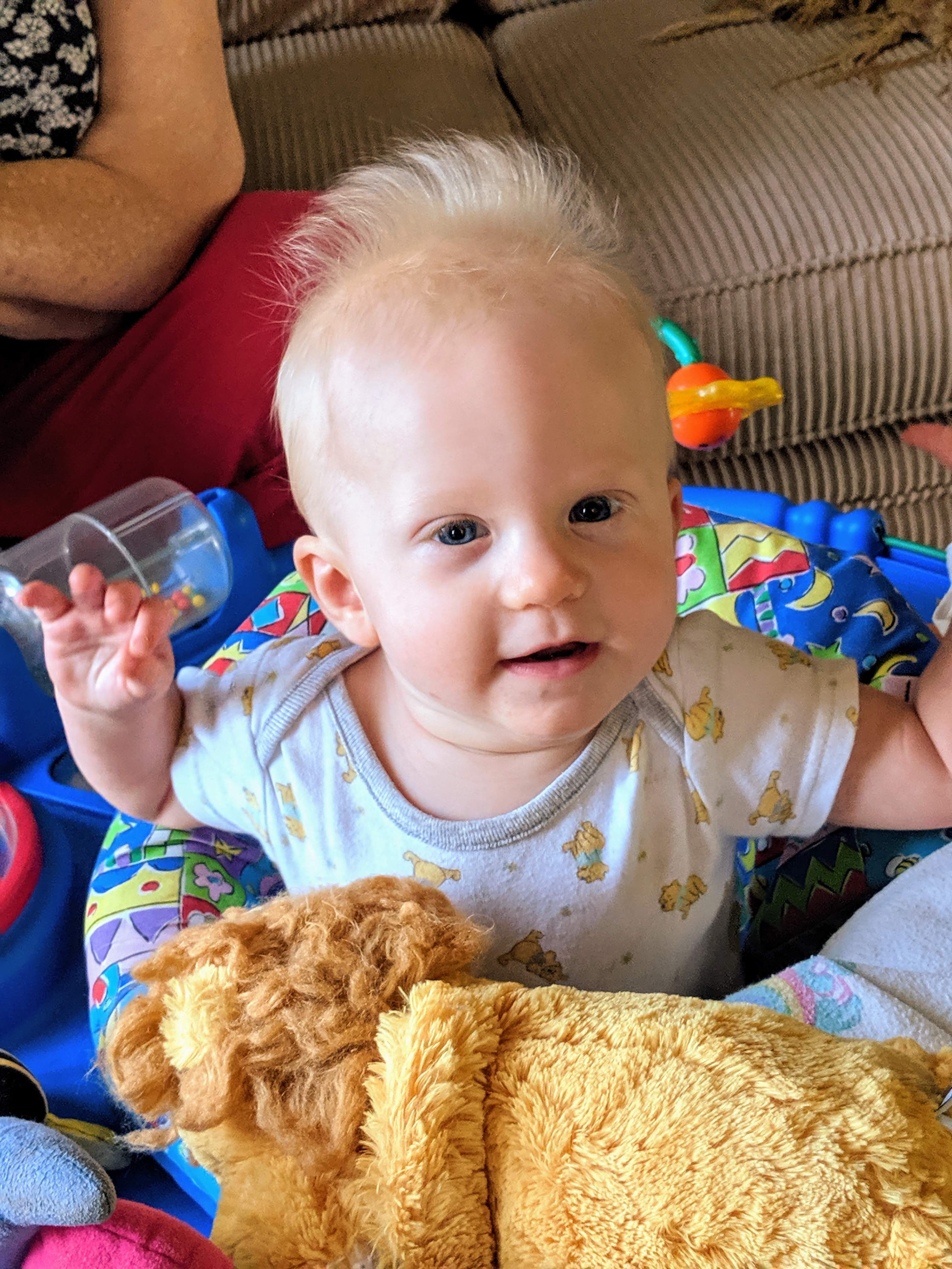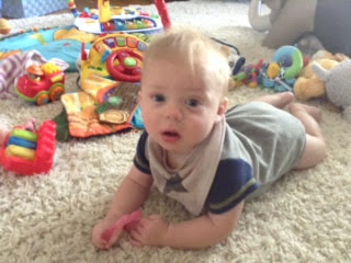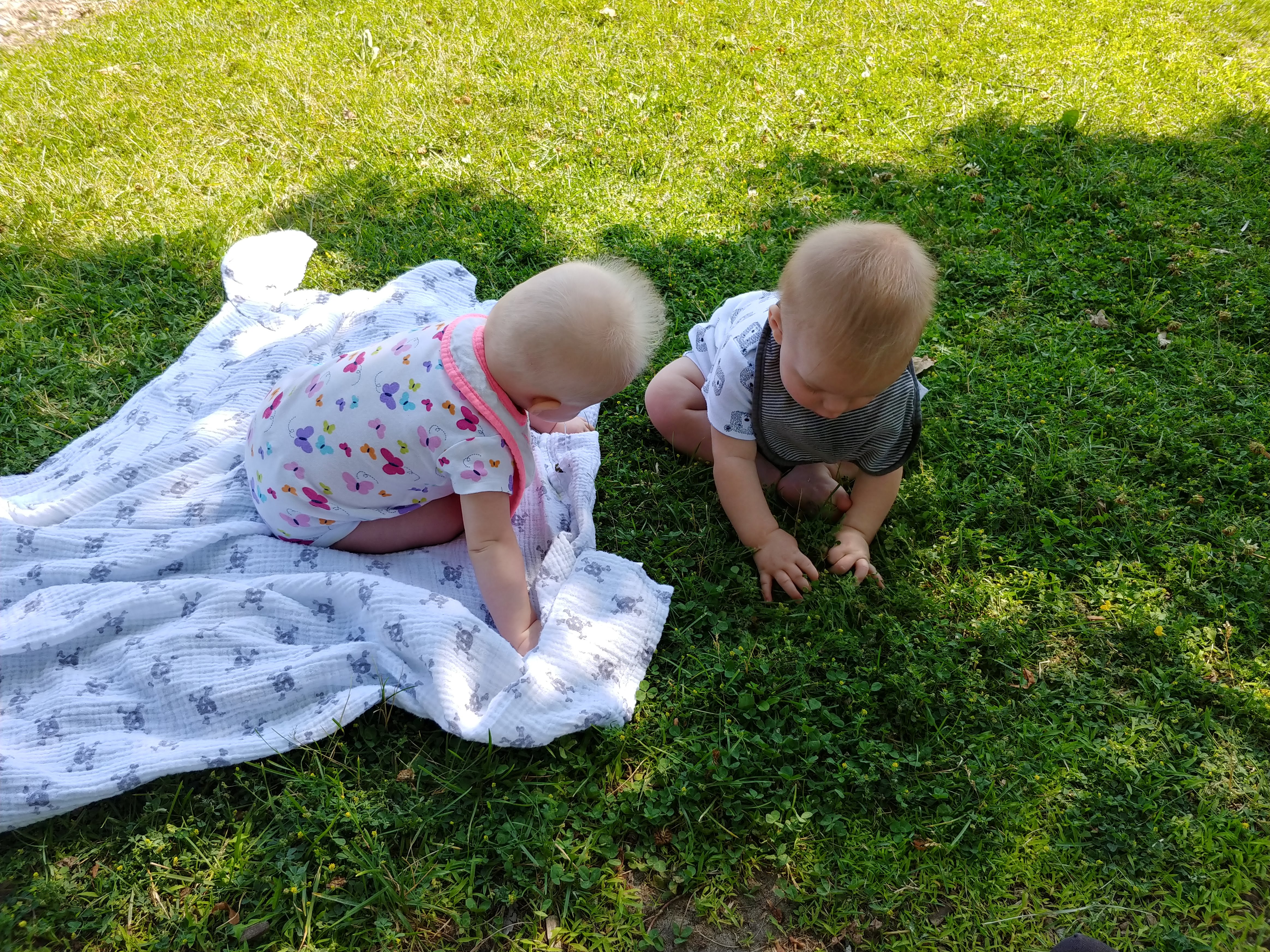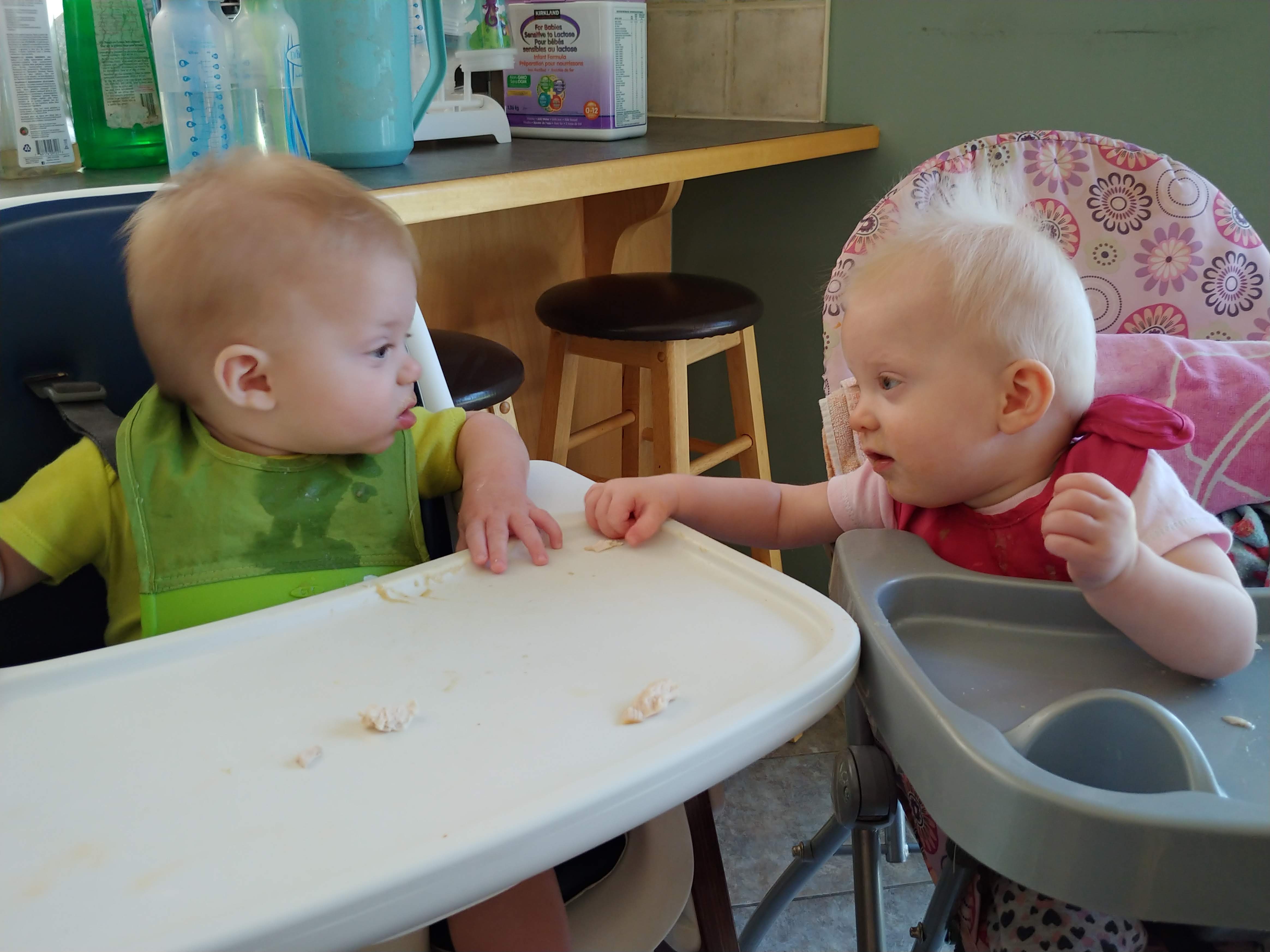 Things are about to get busy around here, as Asher and Cadence start exploring! The babies are 7 months today, and Asher is crawling and starting to pull himself up and cruise, while Cadence isn’t far behind! She has begun going forward as well as backward, and they both love to be walked around holding onto our hands.