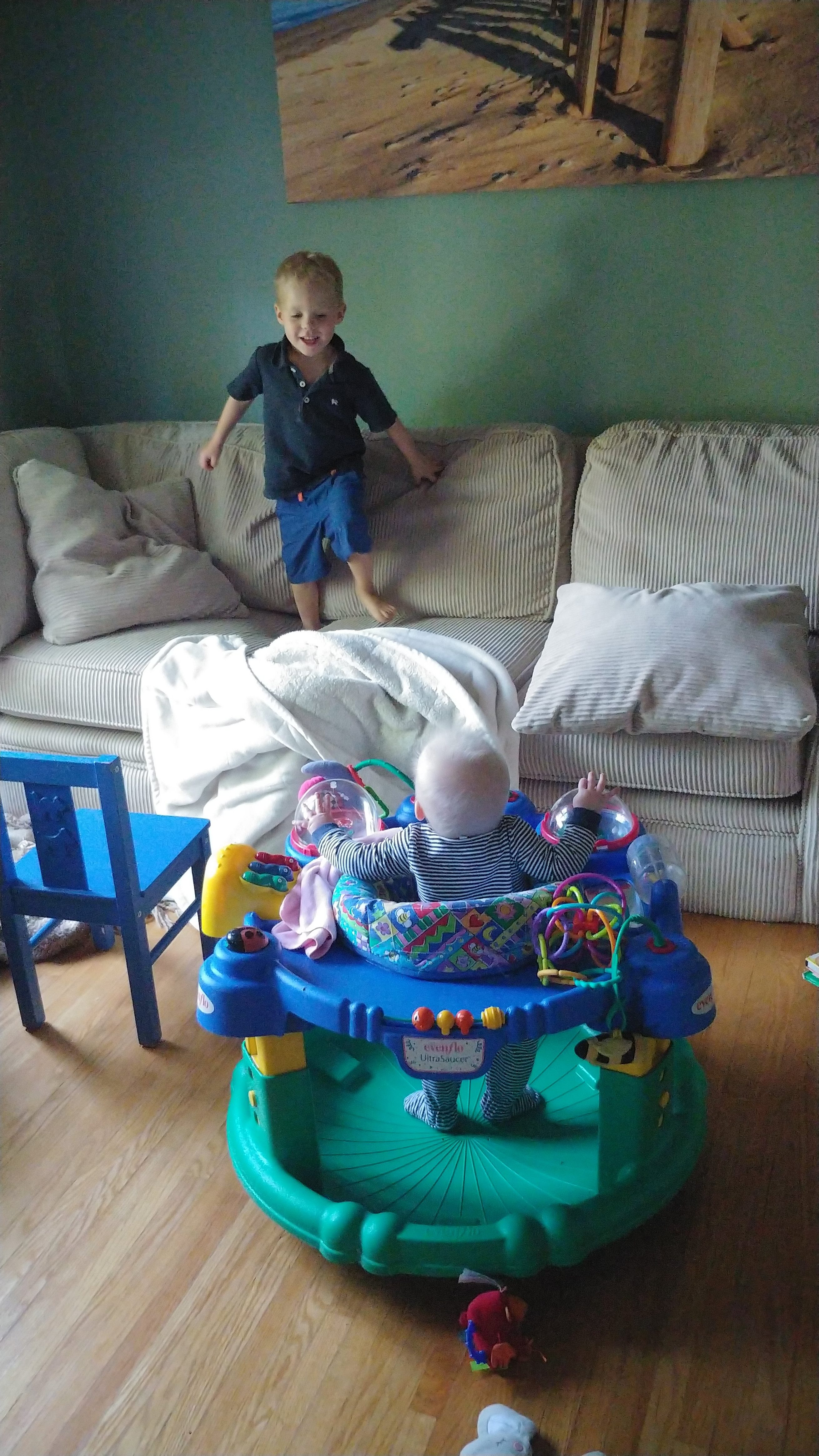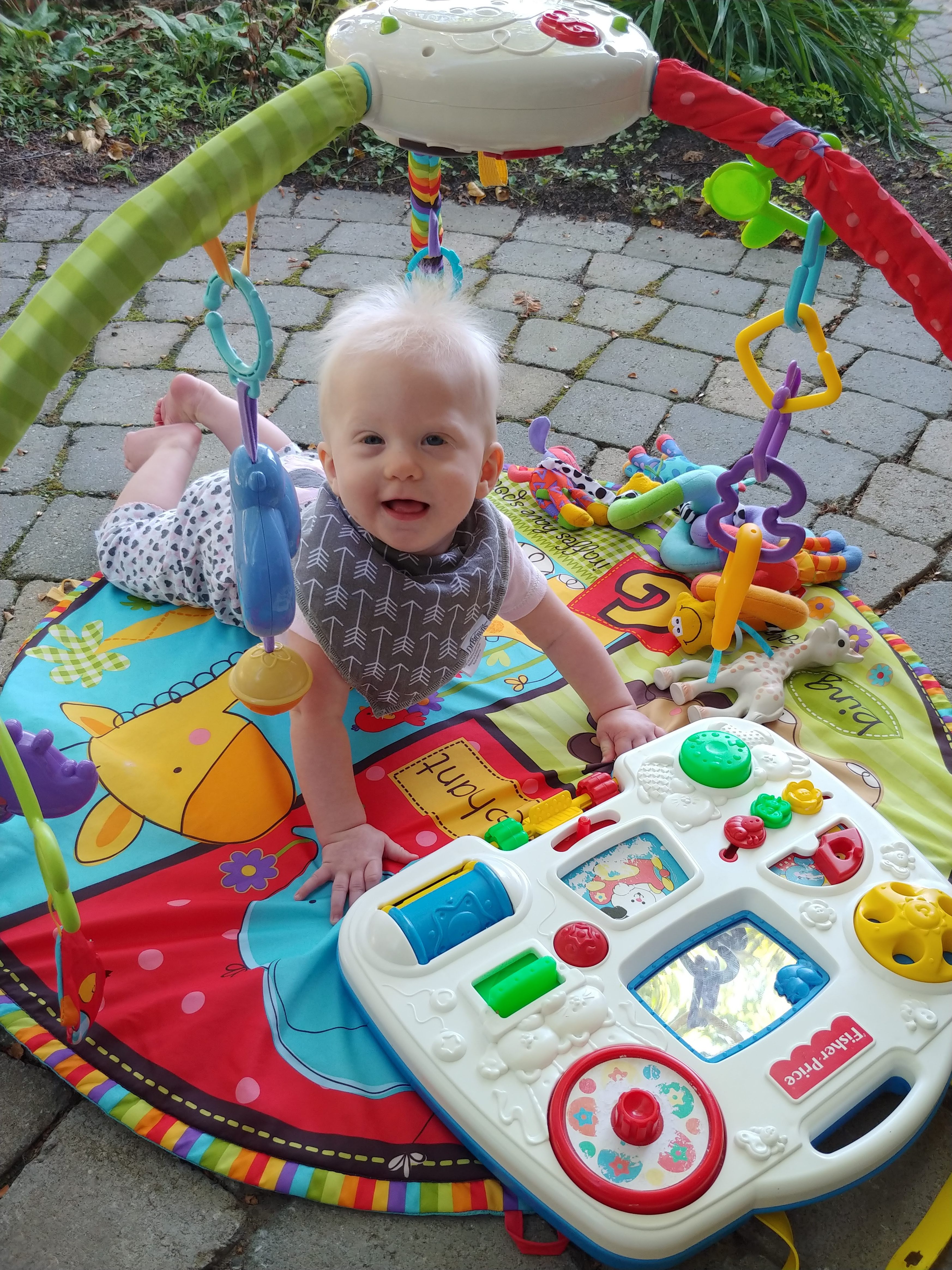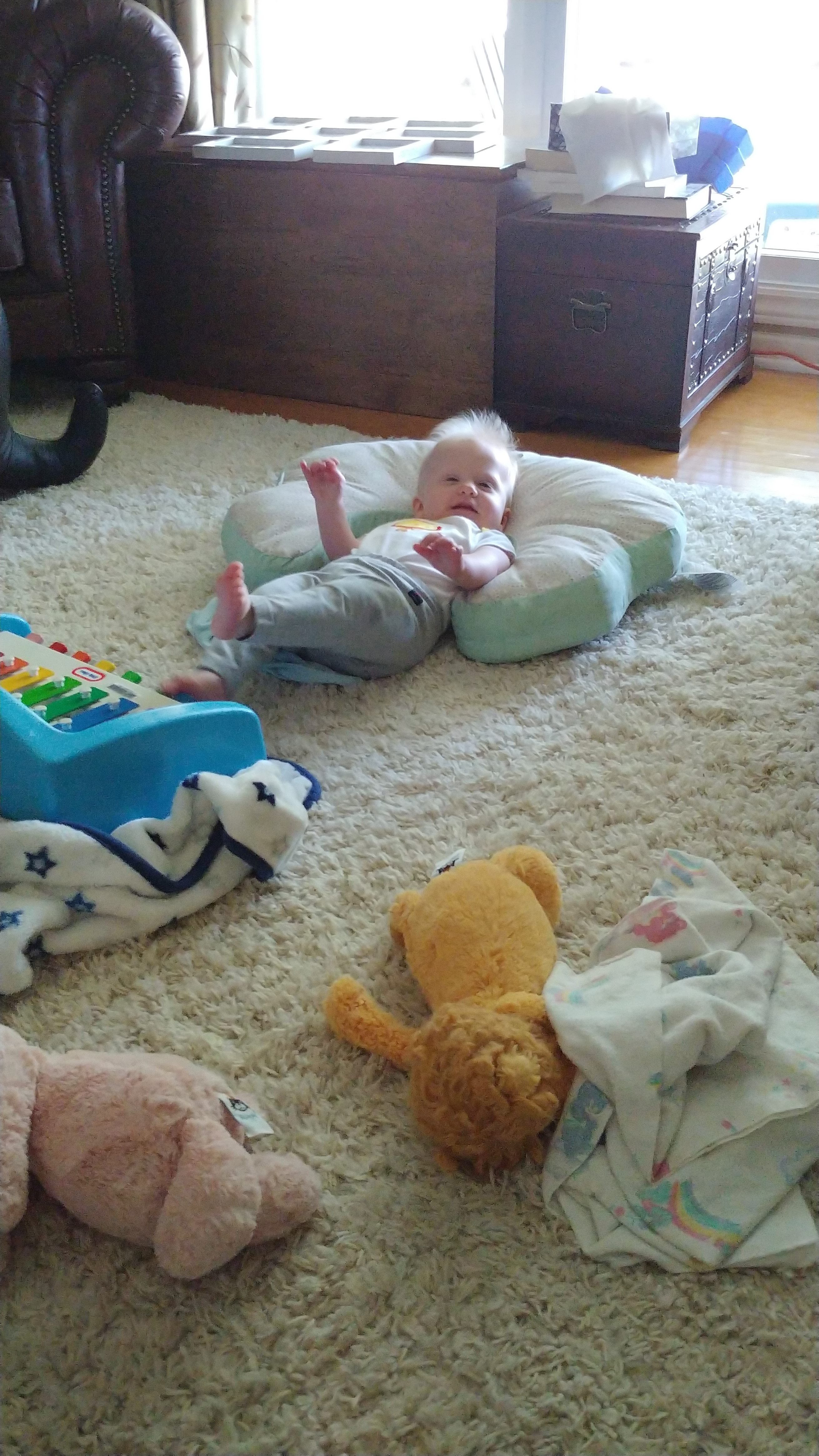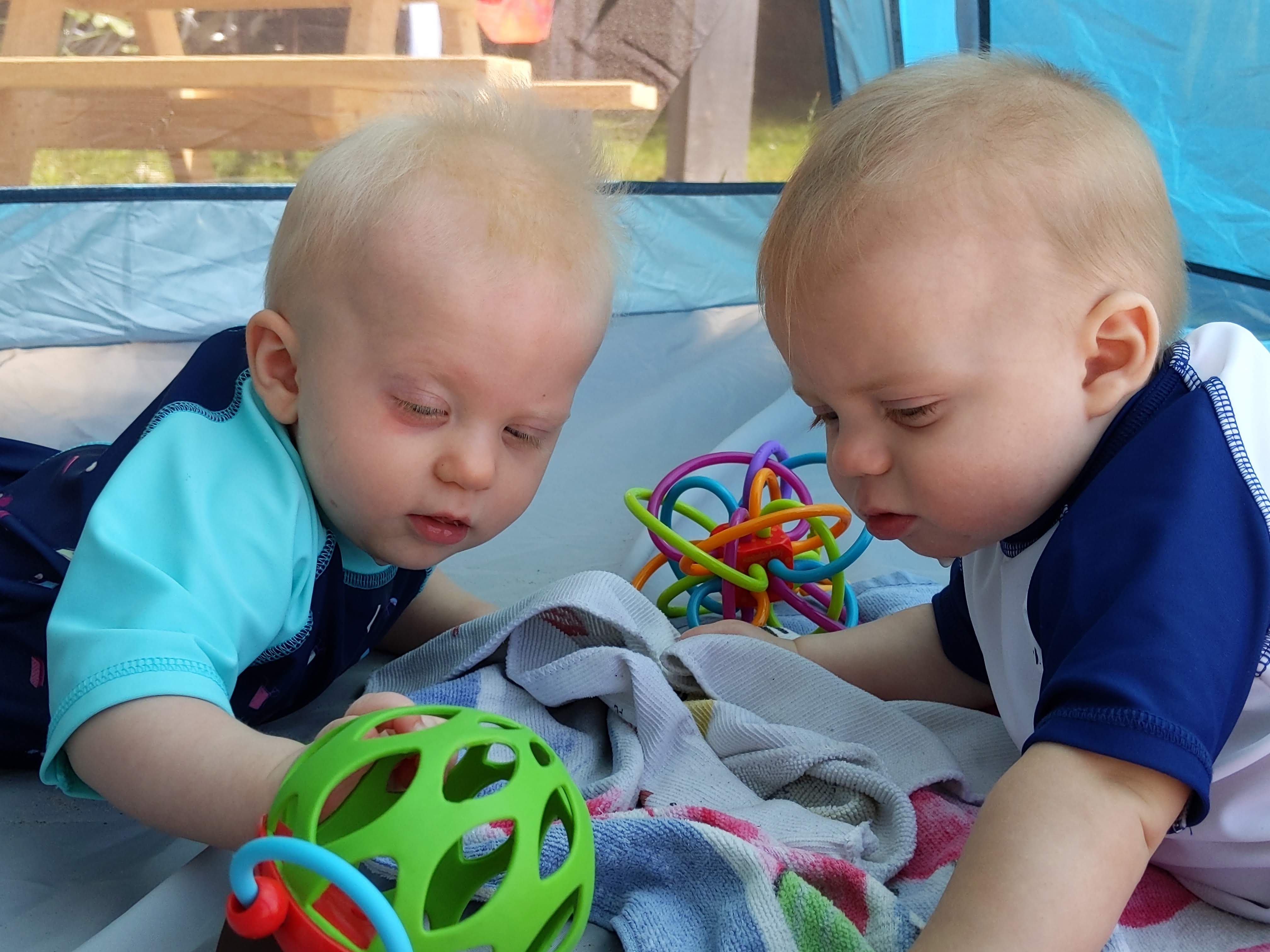 Things are about to get busy around here, as Asher and Cadence start exploring! The babies are 7 months today, and Asher is crawling and starting to pull himself up and cruise, while Cadence isn’t far behind! She has begun going forward as well as backward, and they both love to be walked around holding onto our hands.