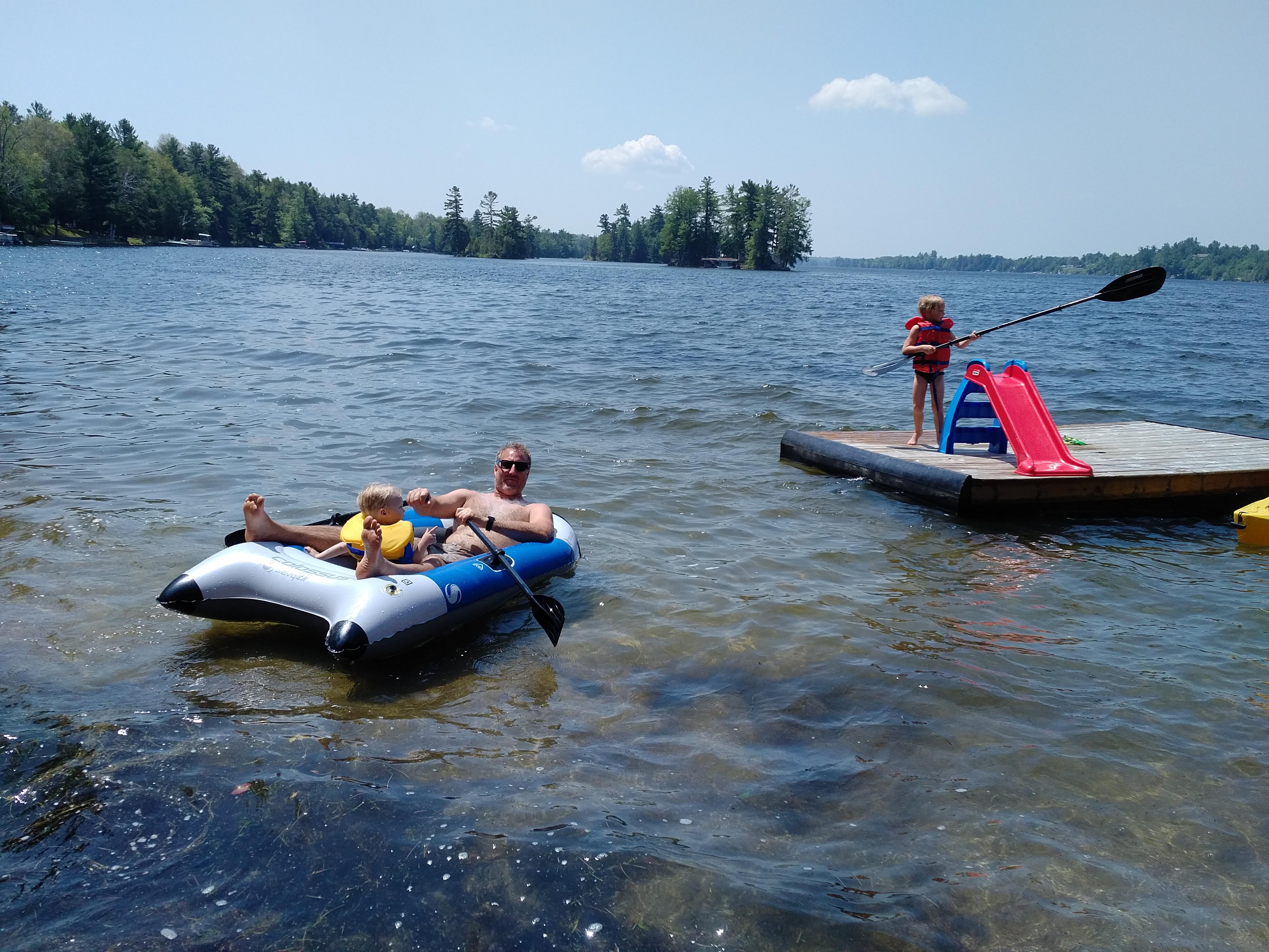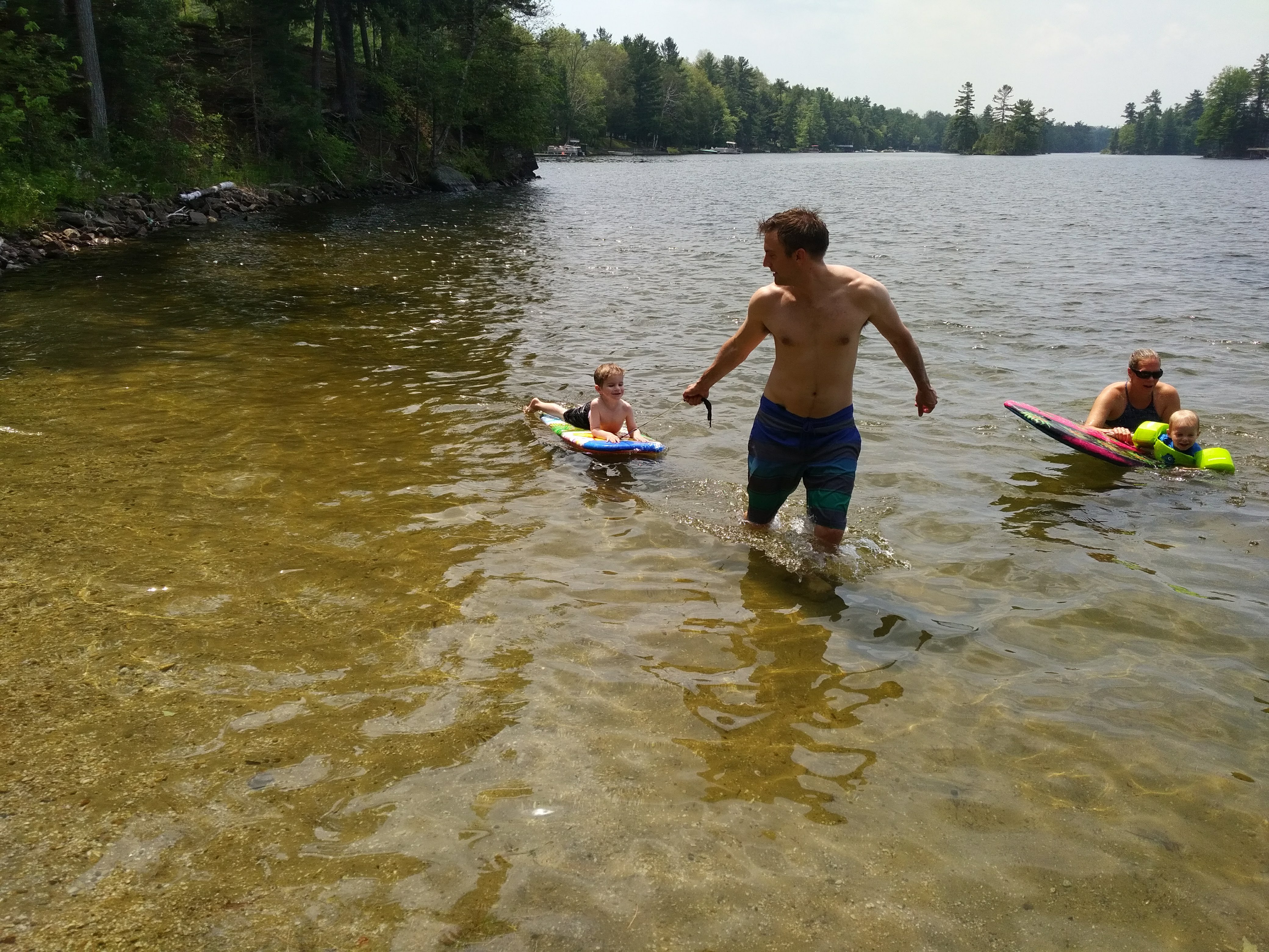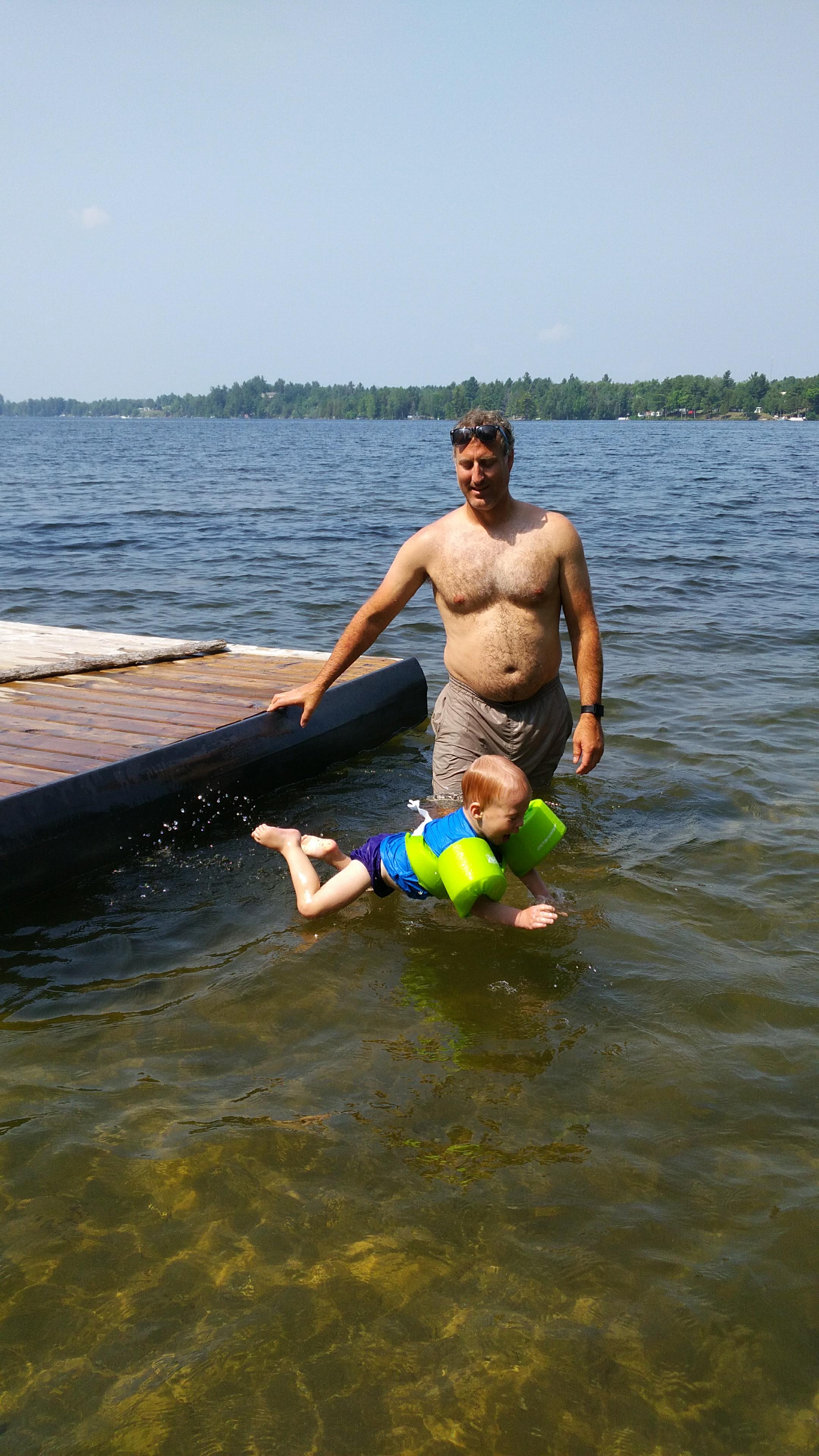 It’s been a HOT summer so far! Luckily we spent the hottest time at the cottage where we could jump in the lake whenever we wanted. Isaac absolutely loves the water, and quickly learned to swim with his floatties on after spending most of his time in the water. He spent most of his time jumping off the raft over and over. Luckily we had lots of visitors who helped keep Isaac busy! Friends and cousins came to visit, and we had fun with Grandma and Papa, and Charlotte and Izzy who came to stay with us for a few days.