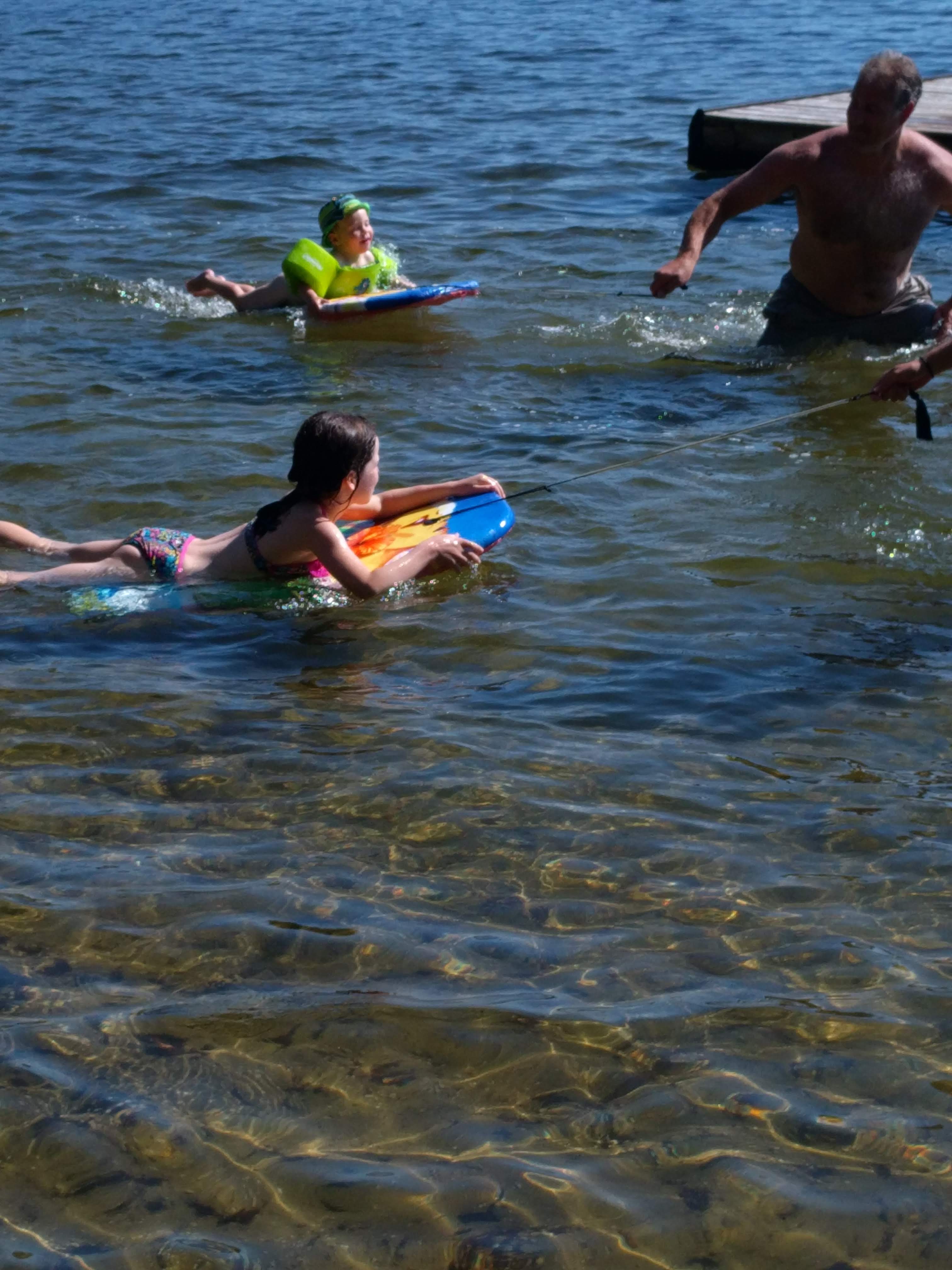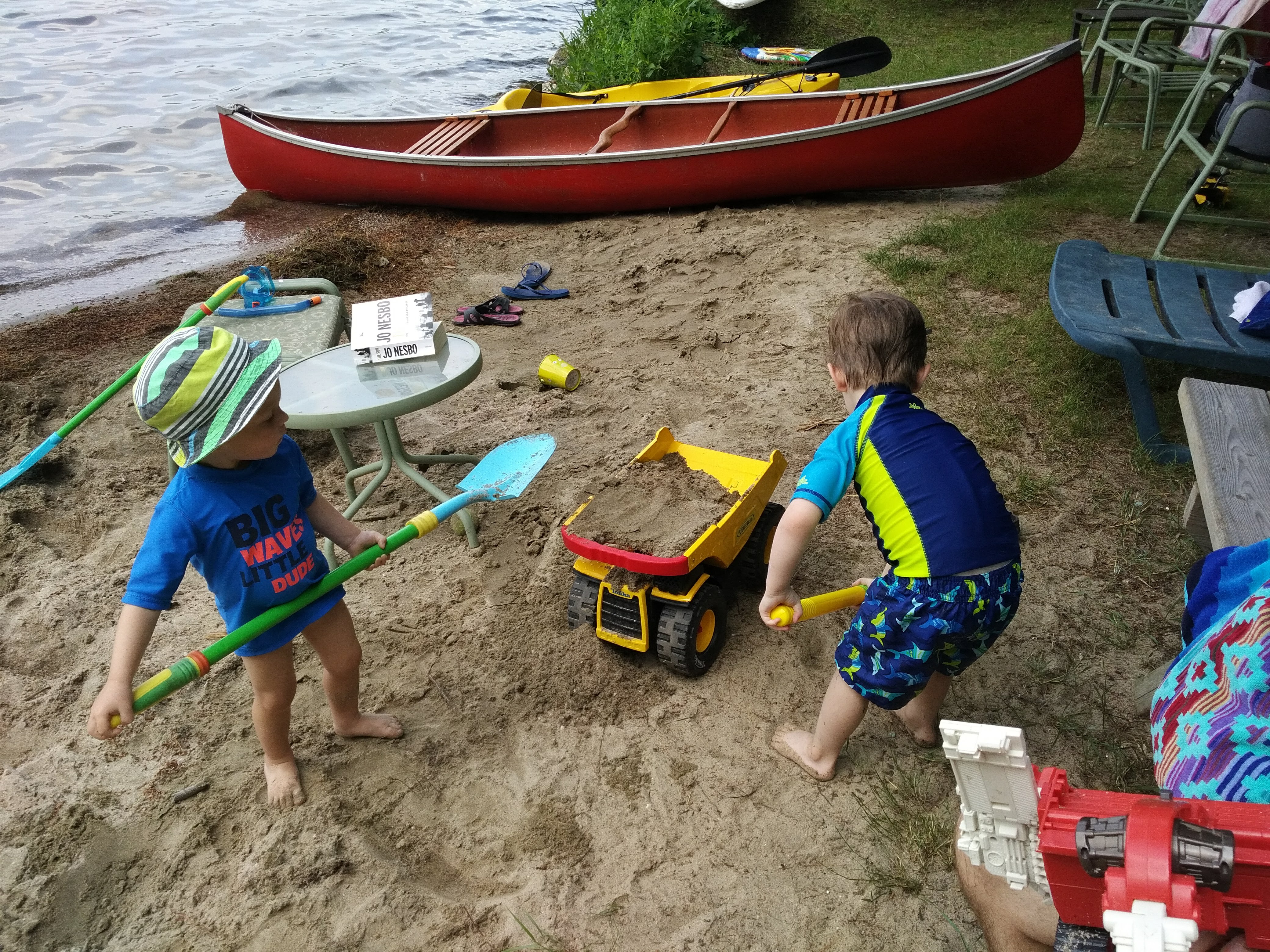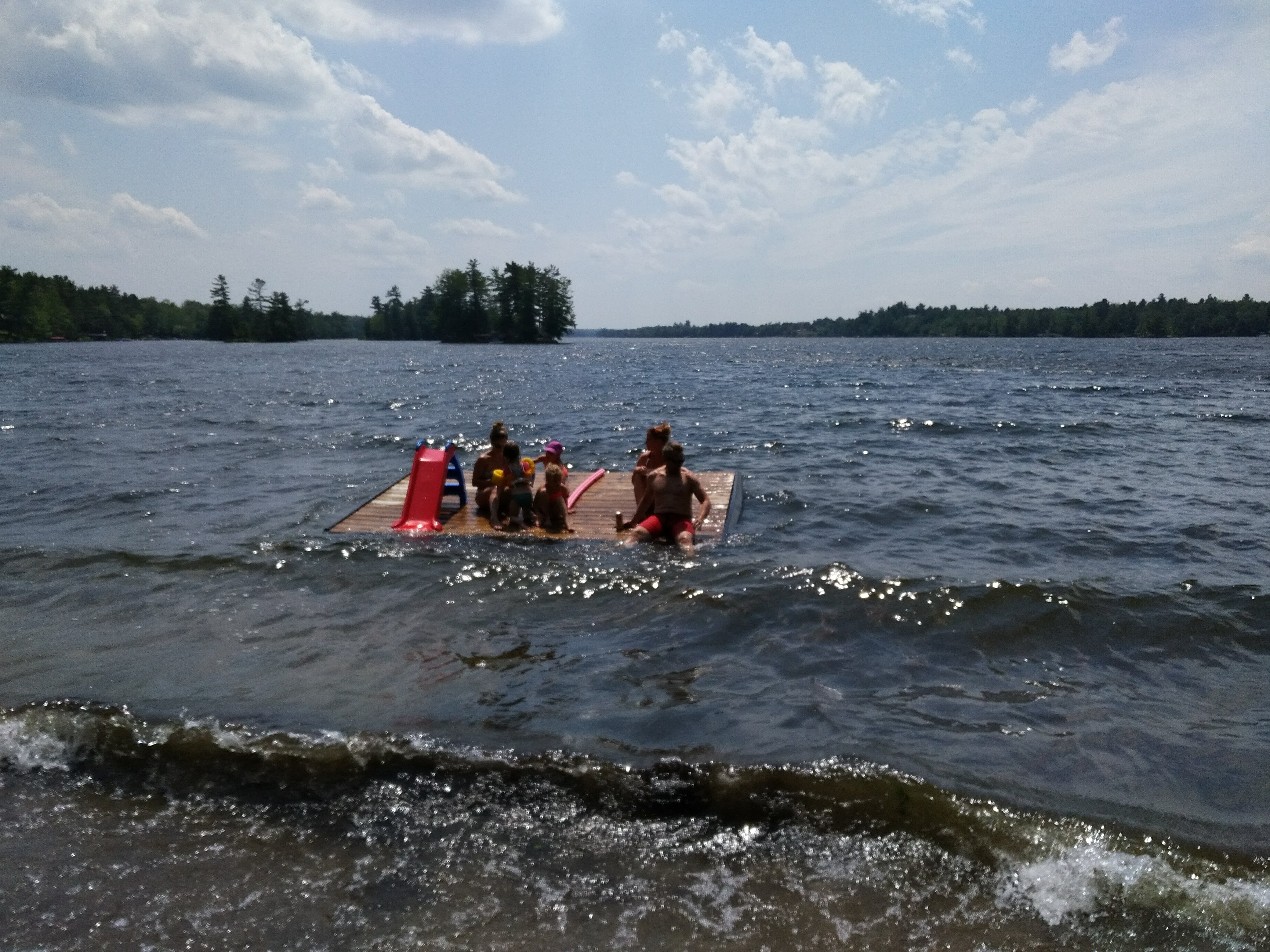 It’s been a HOT summer so far! Luckily we spent the hottest time at the cottage where we could jump in the lake whenever we wanted. Isaac absolutely loves the water, and quickly learned to swim with his floatties on after spending most of his time in the water. He spent most of his time jumping off the raft over and over. Luckily we had lots of visitors who helped keep Isaac busy! Friends and cousins came to visit, and we had fun with Grandma and Papa, and Charlotte and Izzy who came to stay with us for a few days.
