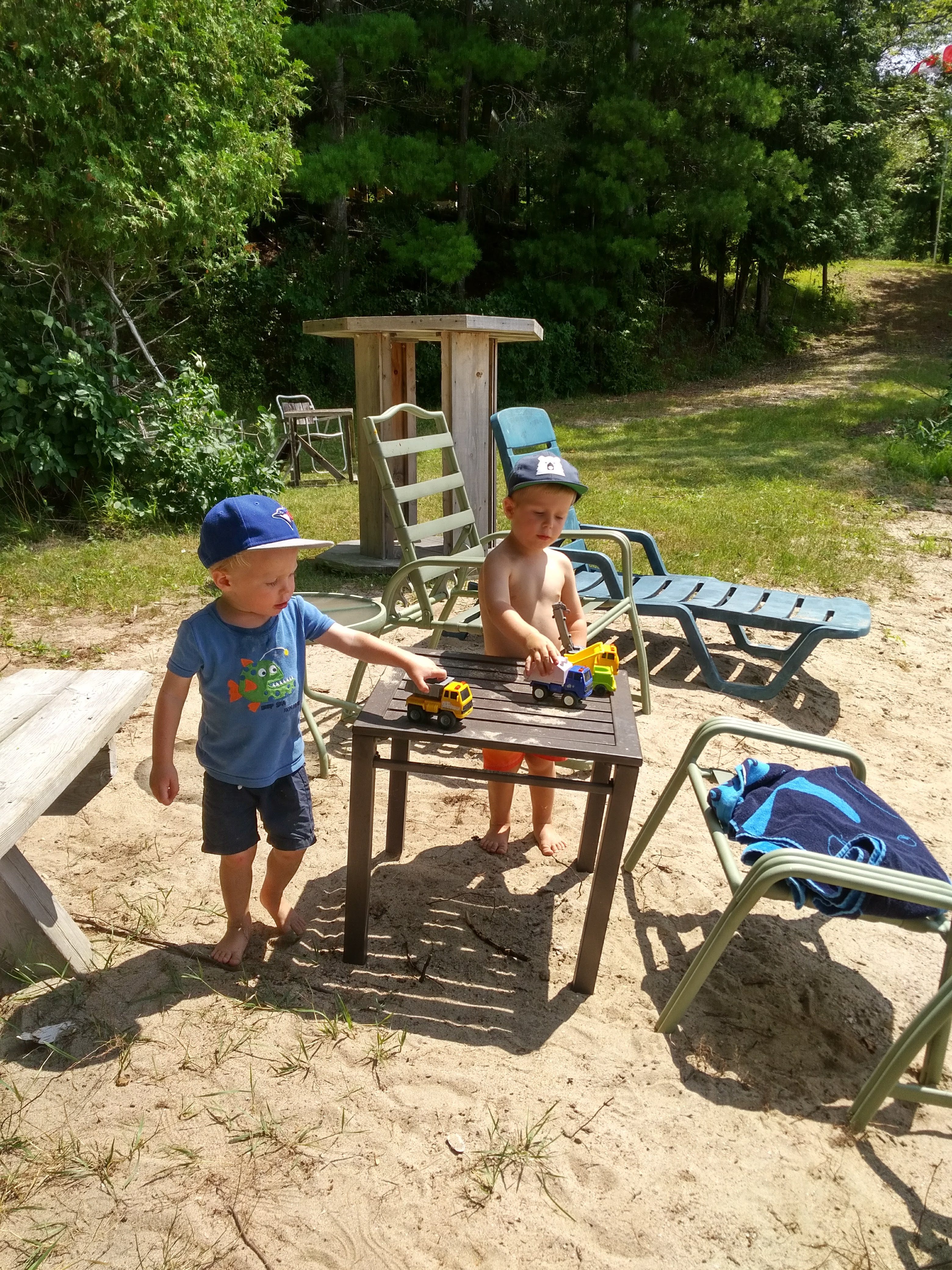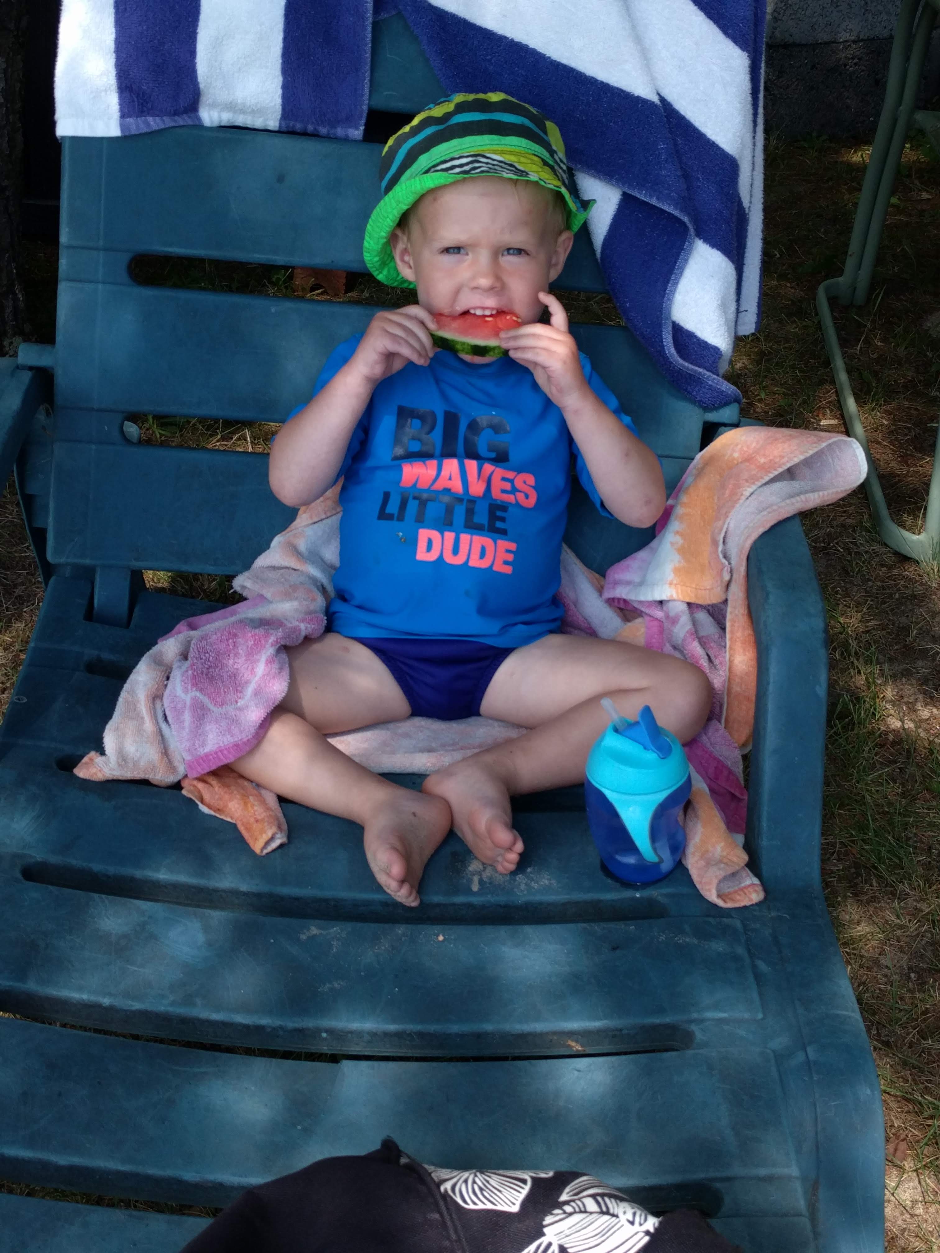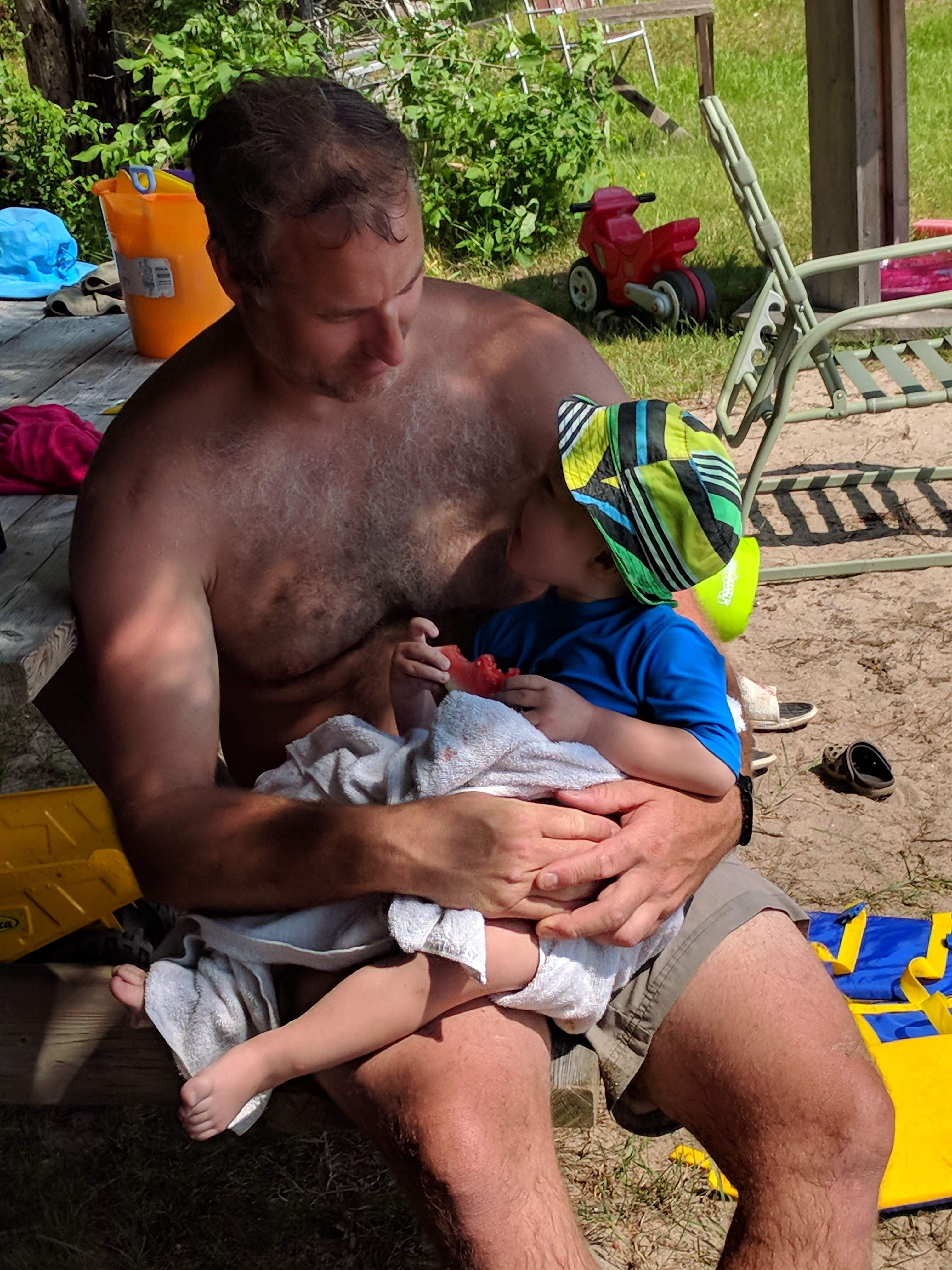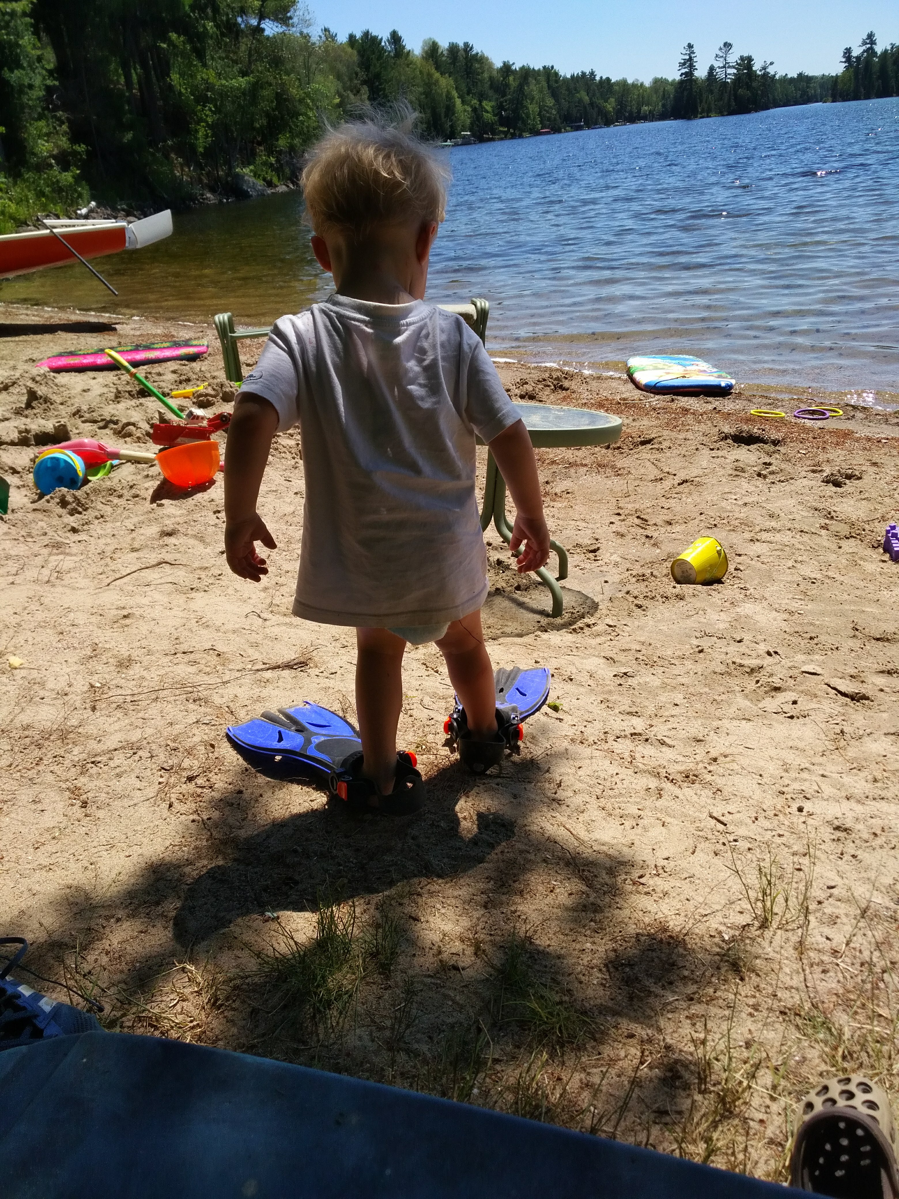 Isaac is all about playing with friends, and enjoyed at day at Dan and Susan’s cottage for Max’s third birthday, where he did more jumping off the dock.