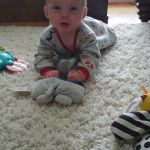 The babies are sitting up on their own and moving around. Asher can cover some ground now, although very slowly and in an unconventional way. He is also starting to walk when holding onto someone’s hands, instinctively putting one foot in front of the other. We’ve started giving them some food too, and they sit with us at the table in their highchairs. They both chatter-scream quite a bit now, and Jon and Lindy are having a hard time with the noise of three shouting kids at dinnertime.