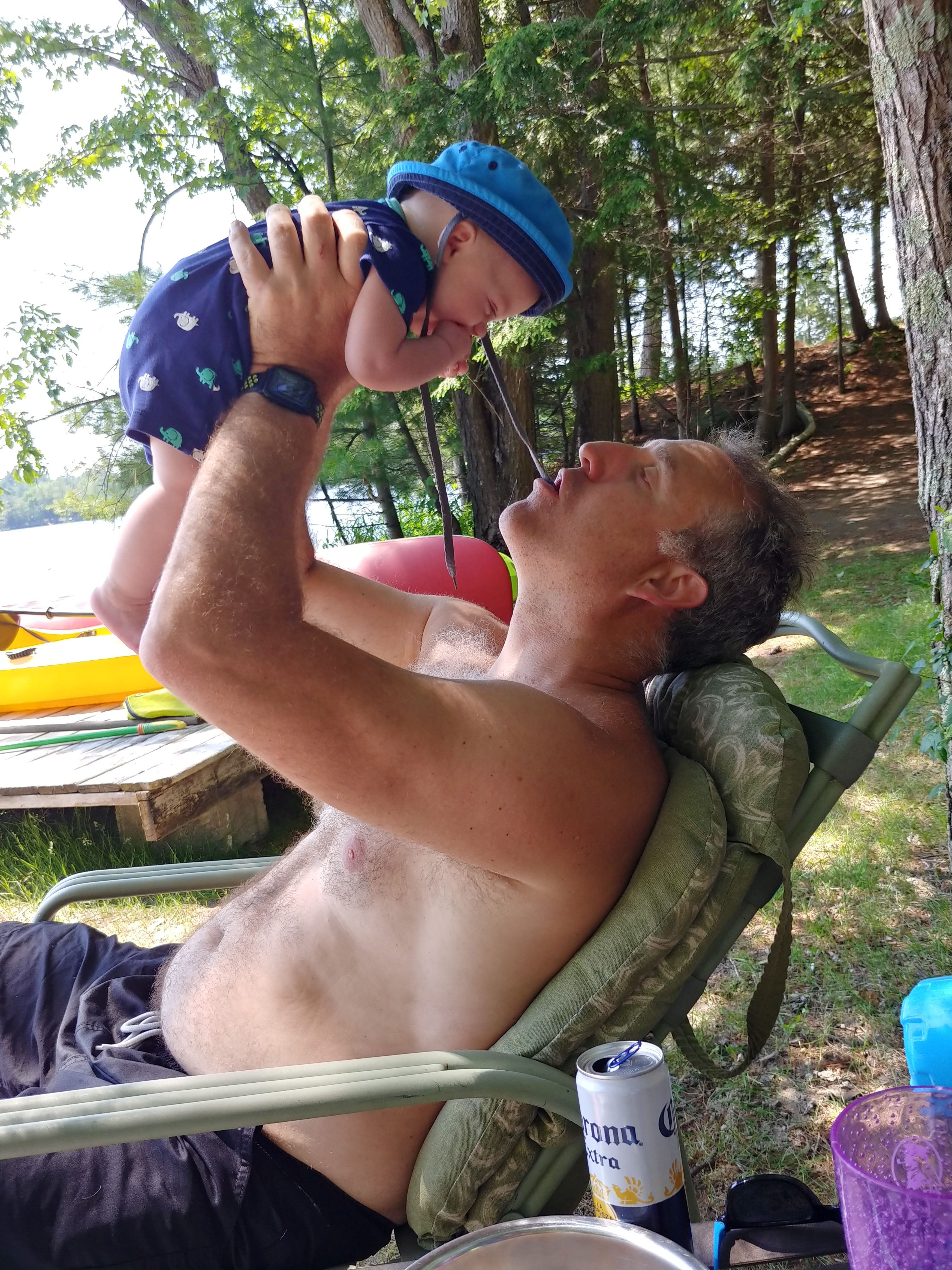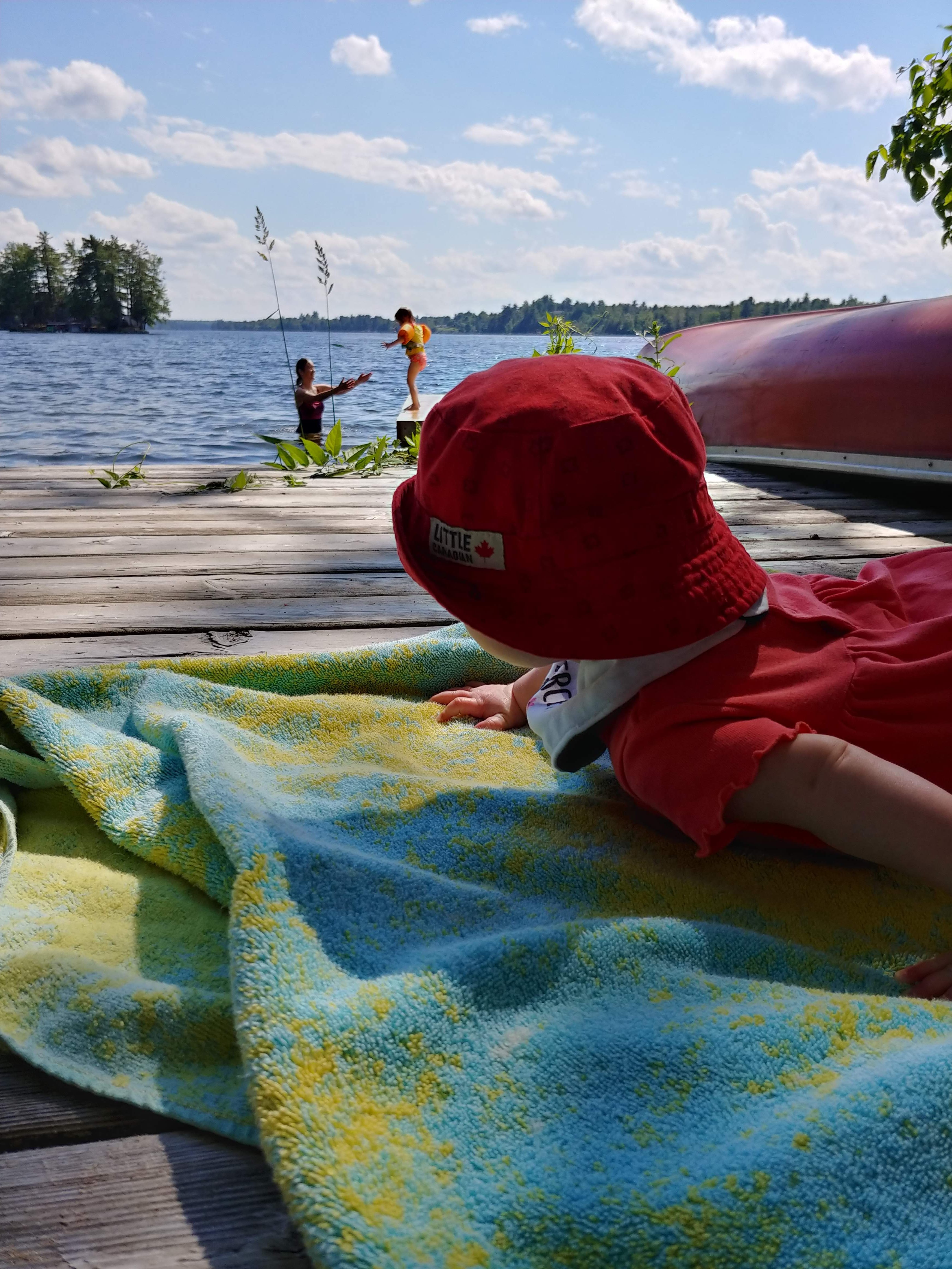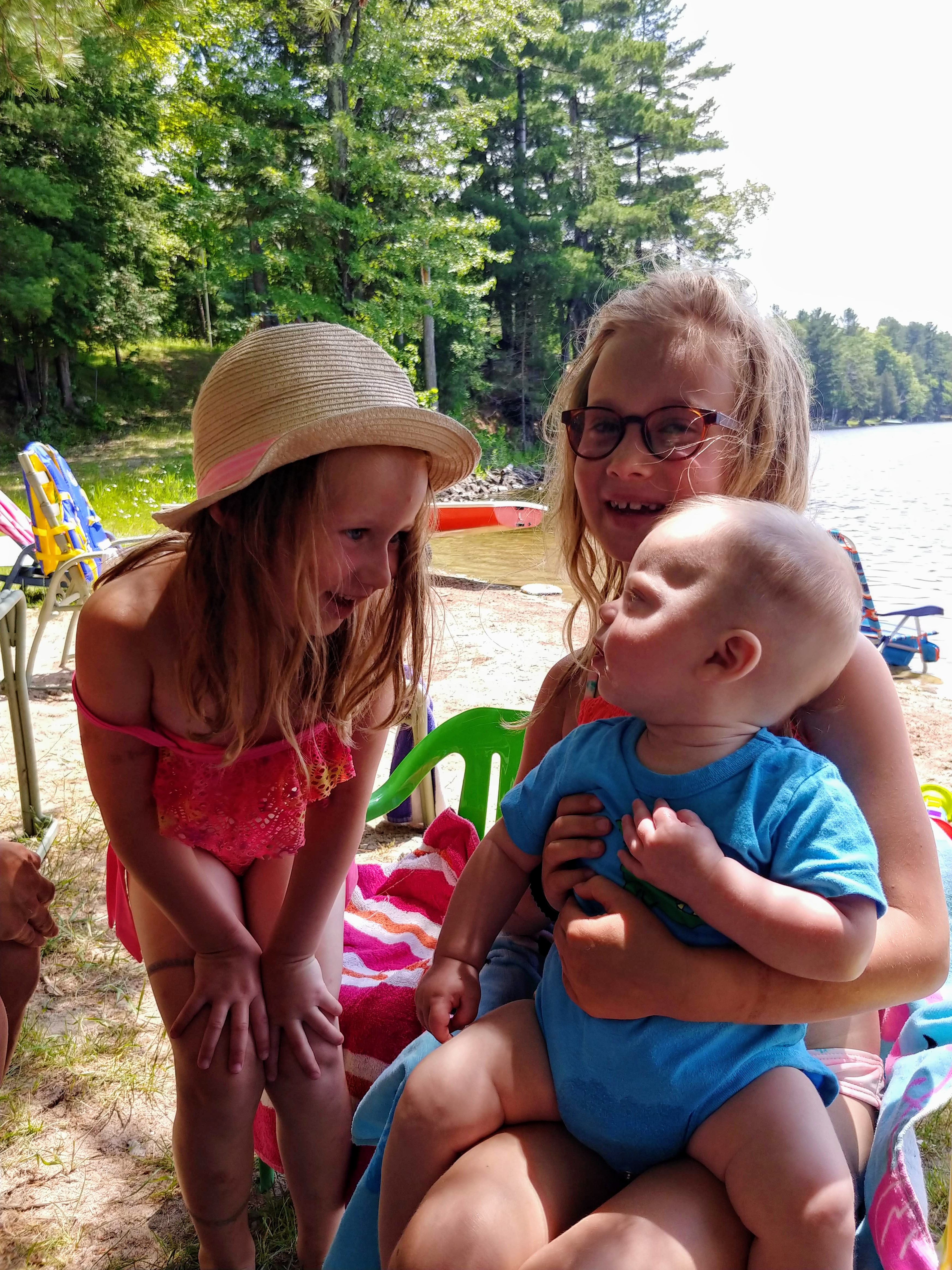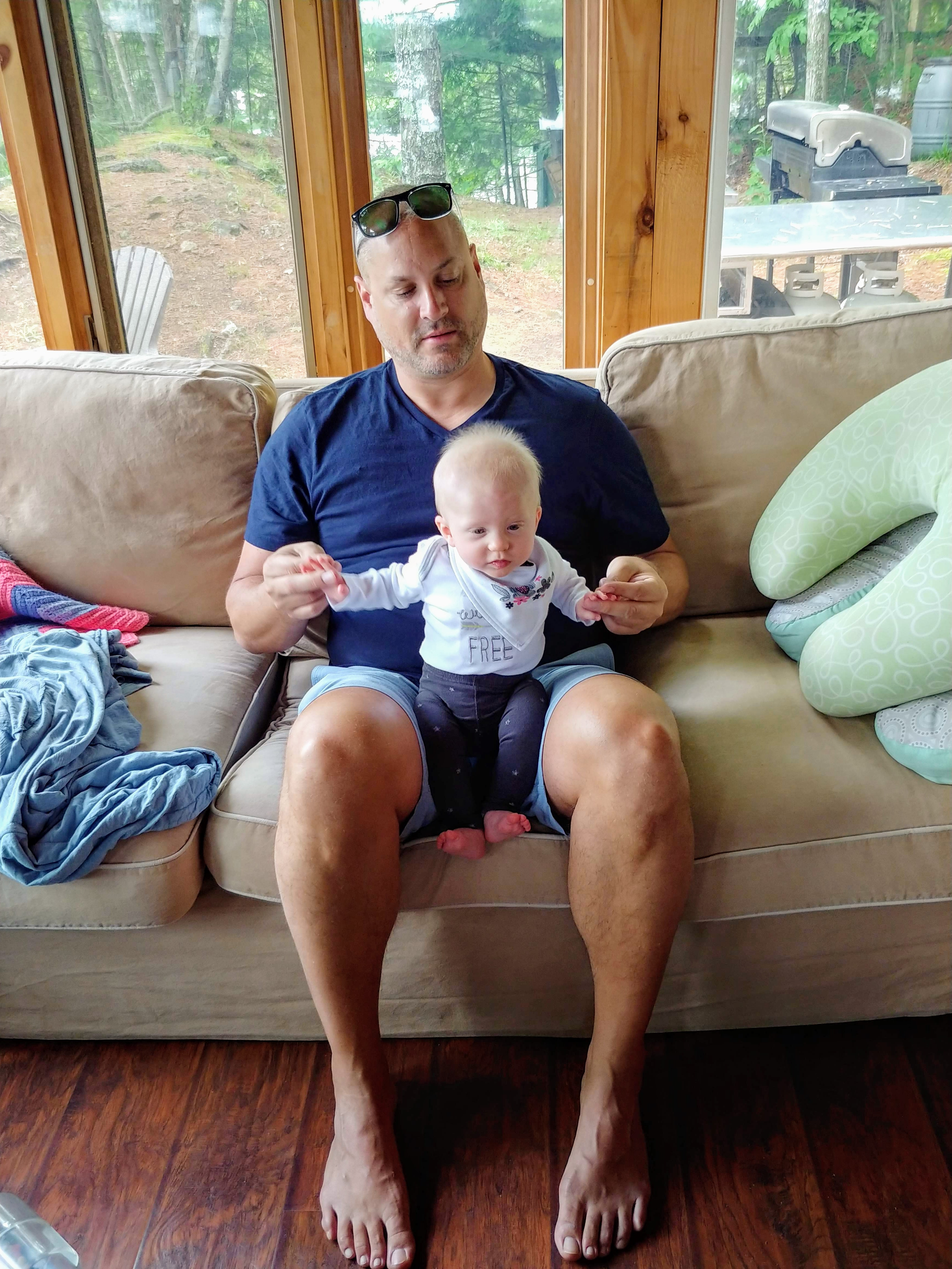 We had a great time at the cottage for our two week holiday. While there were still ups and downs, we finally felt like we could manage on our own. We had lots of family and friends drop in to keep us company and help either entertain Isaac or hold babies. It was really nice to feel like we could socialize without it always being about people helping us…it felt almost normal again! It did take a couple days for us to adjust to being at the cottage, but once we had our routines figured out, it all went smoothly. A few of the upgrades to the cottage helped us manage better, like having air conditioners in the bedrooms.