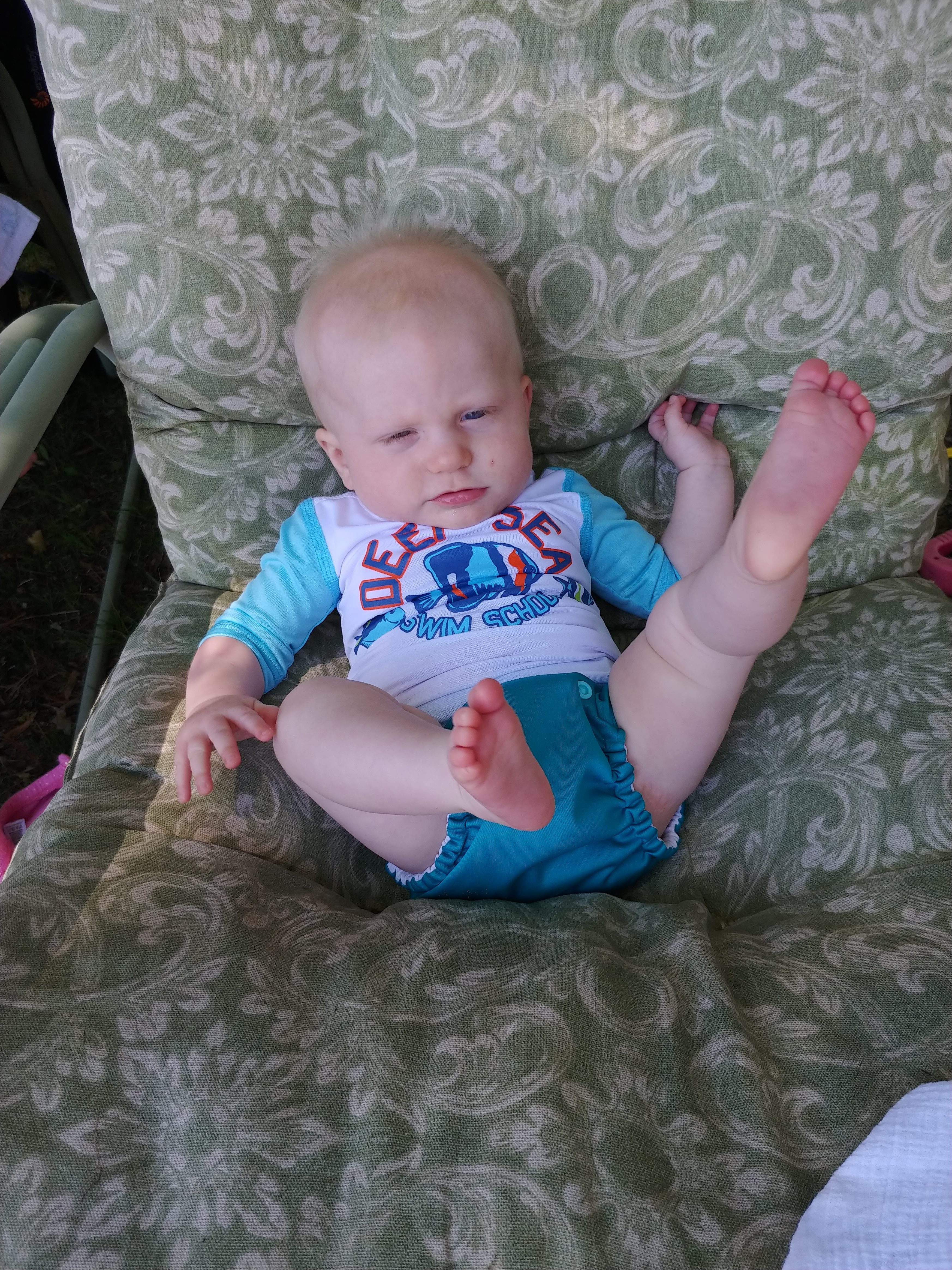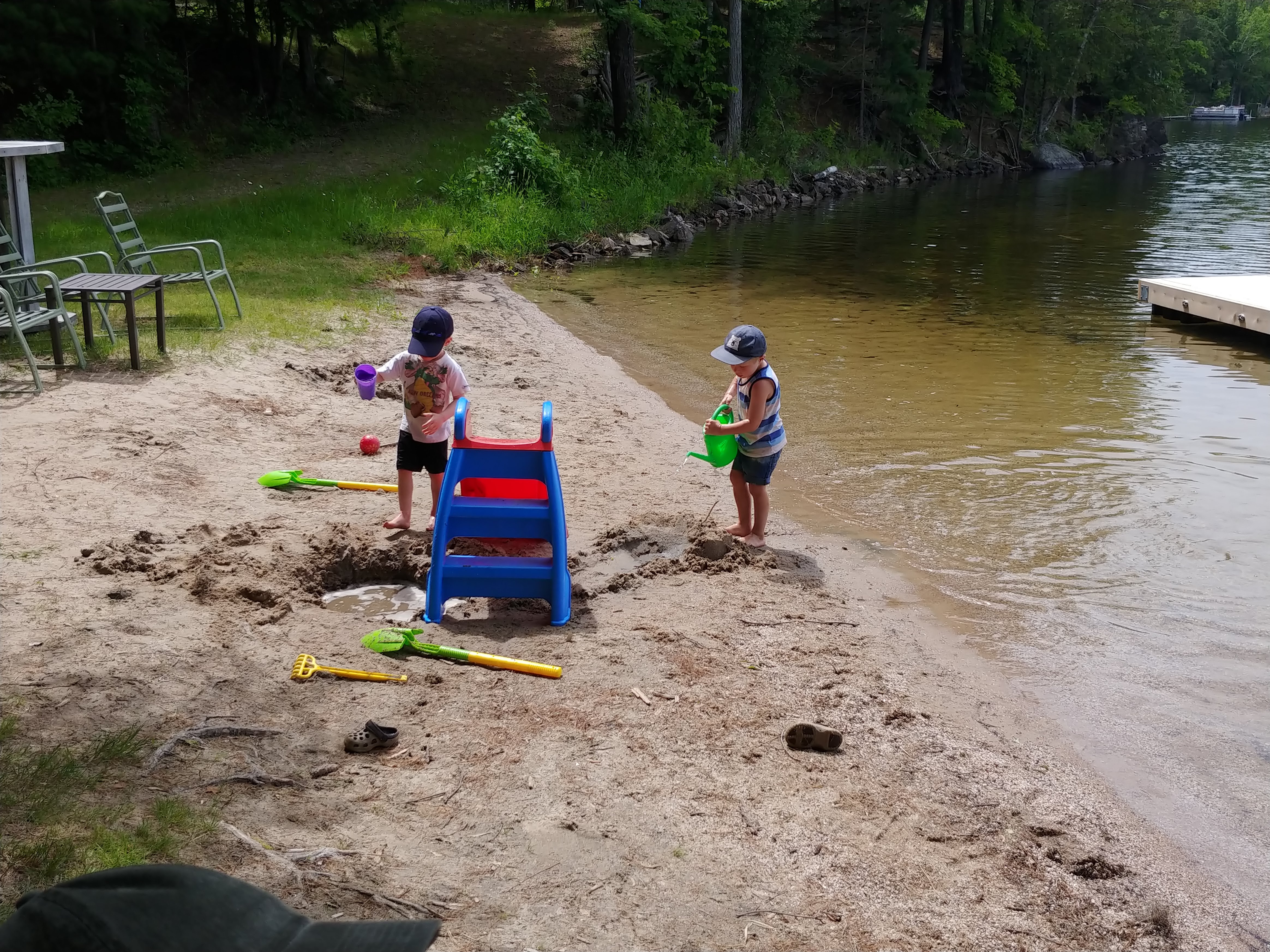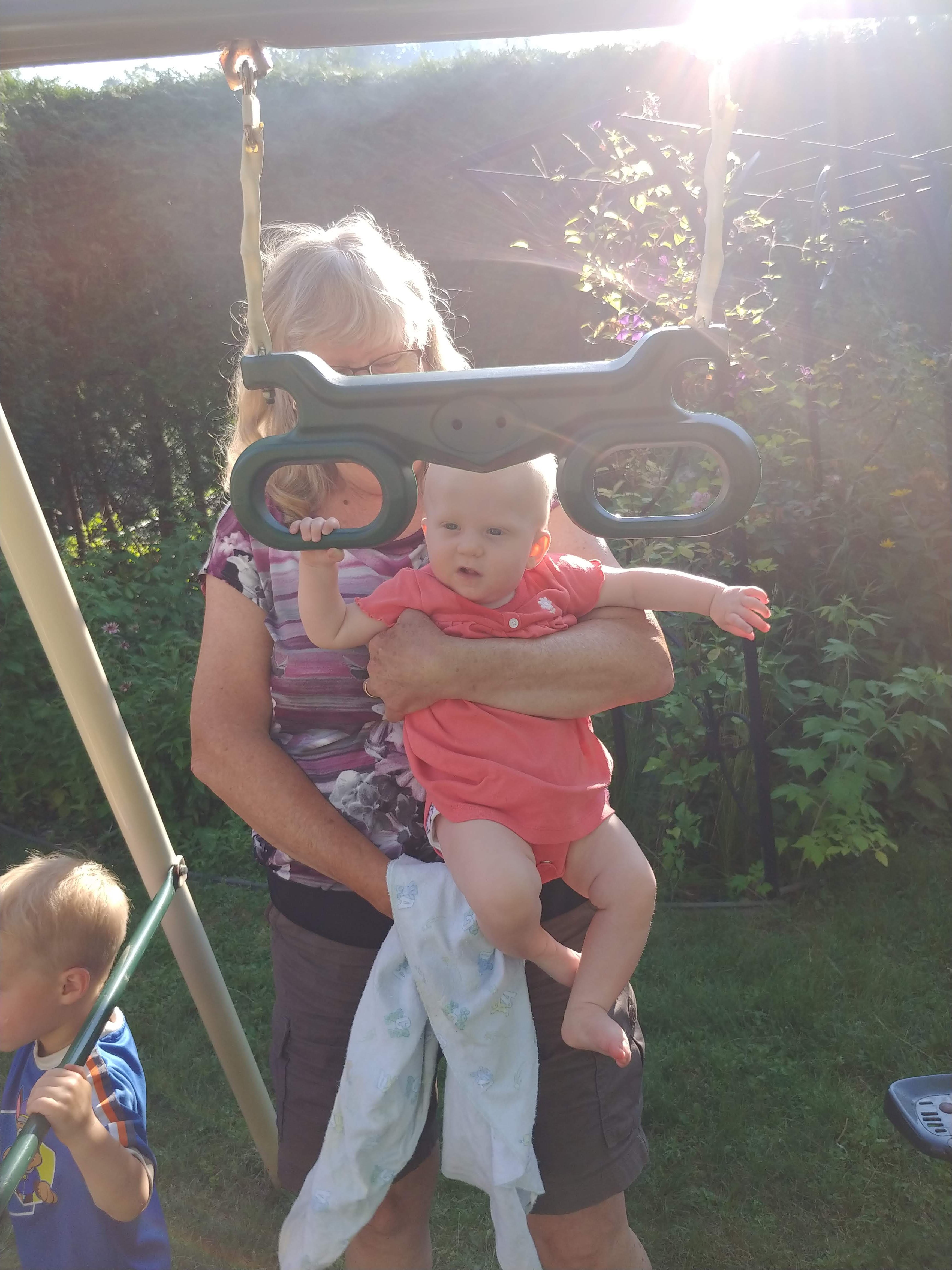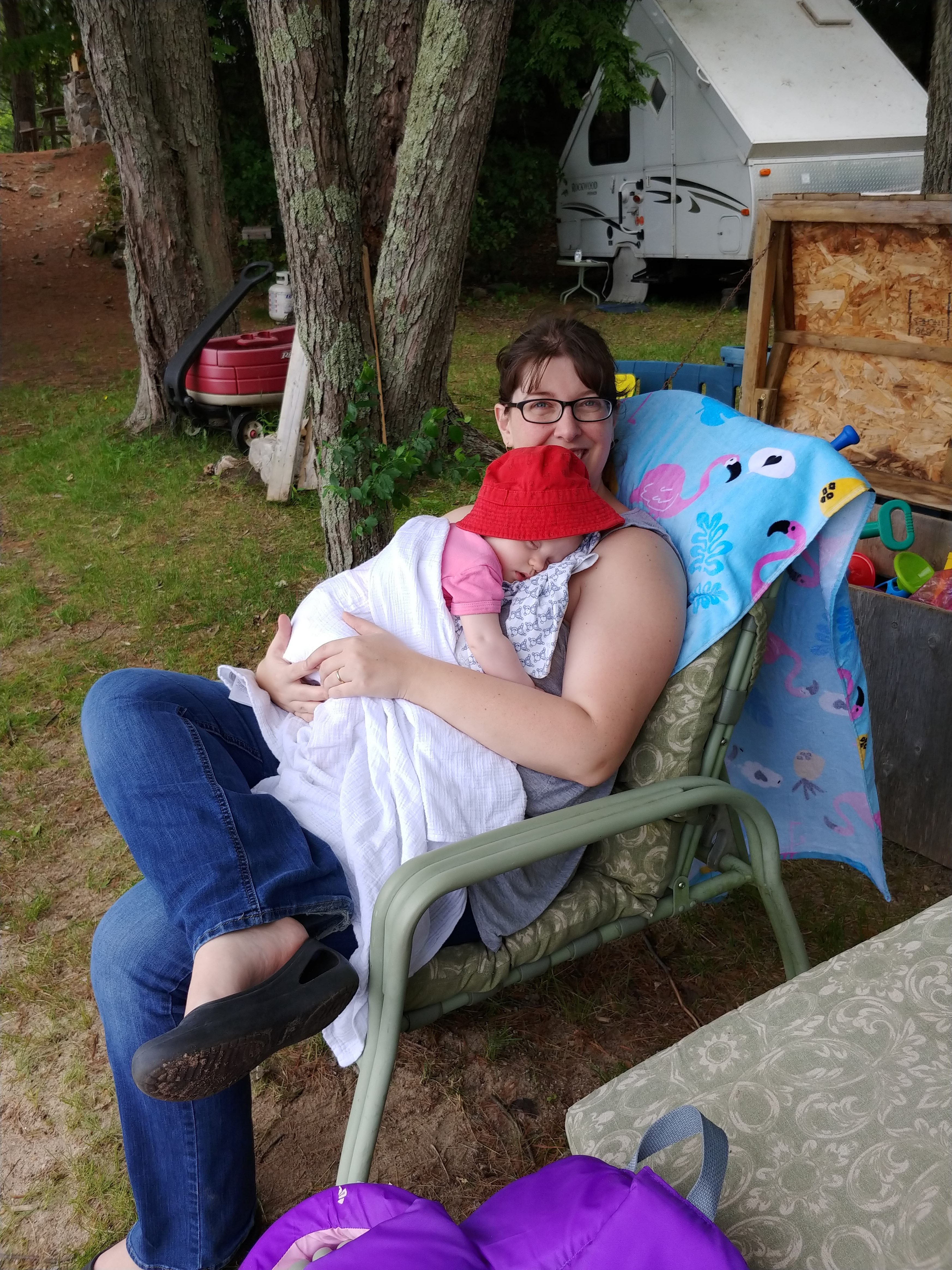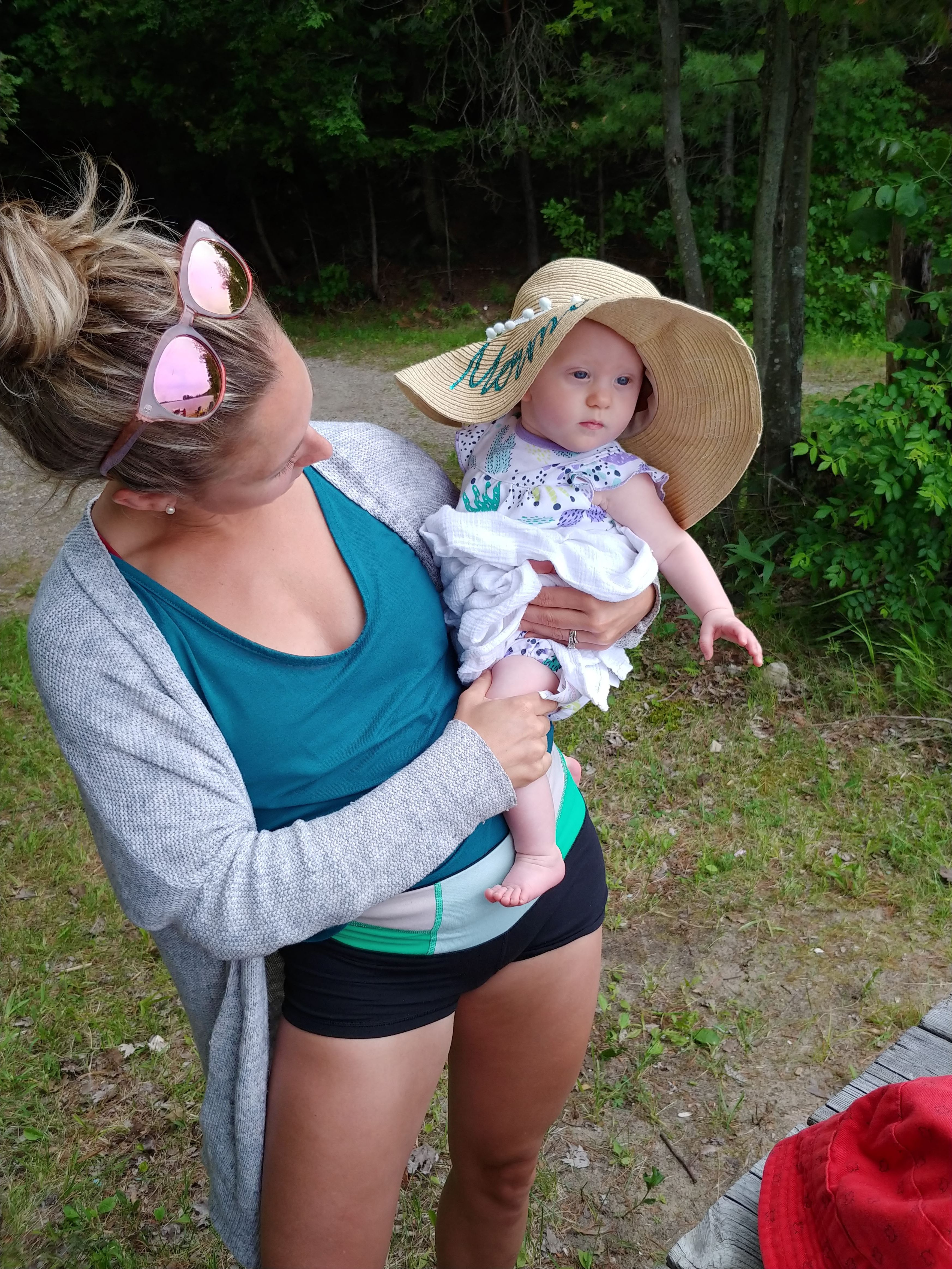 We had a great time at the cottage for our two week holiday. While there were still ups and downs, we finally felt like we could manage on our own. We had lots of family and friends drop in to keep us company and help either entertain Isaac or hold babies. It was really nice to feel like we could socialize without it always being about people helping us…it felt almost normal again! It did take a couple days for us to adjust to being at the cottage, but once we had our routines figured out, it all went smoothly. A few of the upgrades to the cottage helped us manage better, like having air conditioners in the bedrooms.