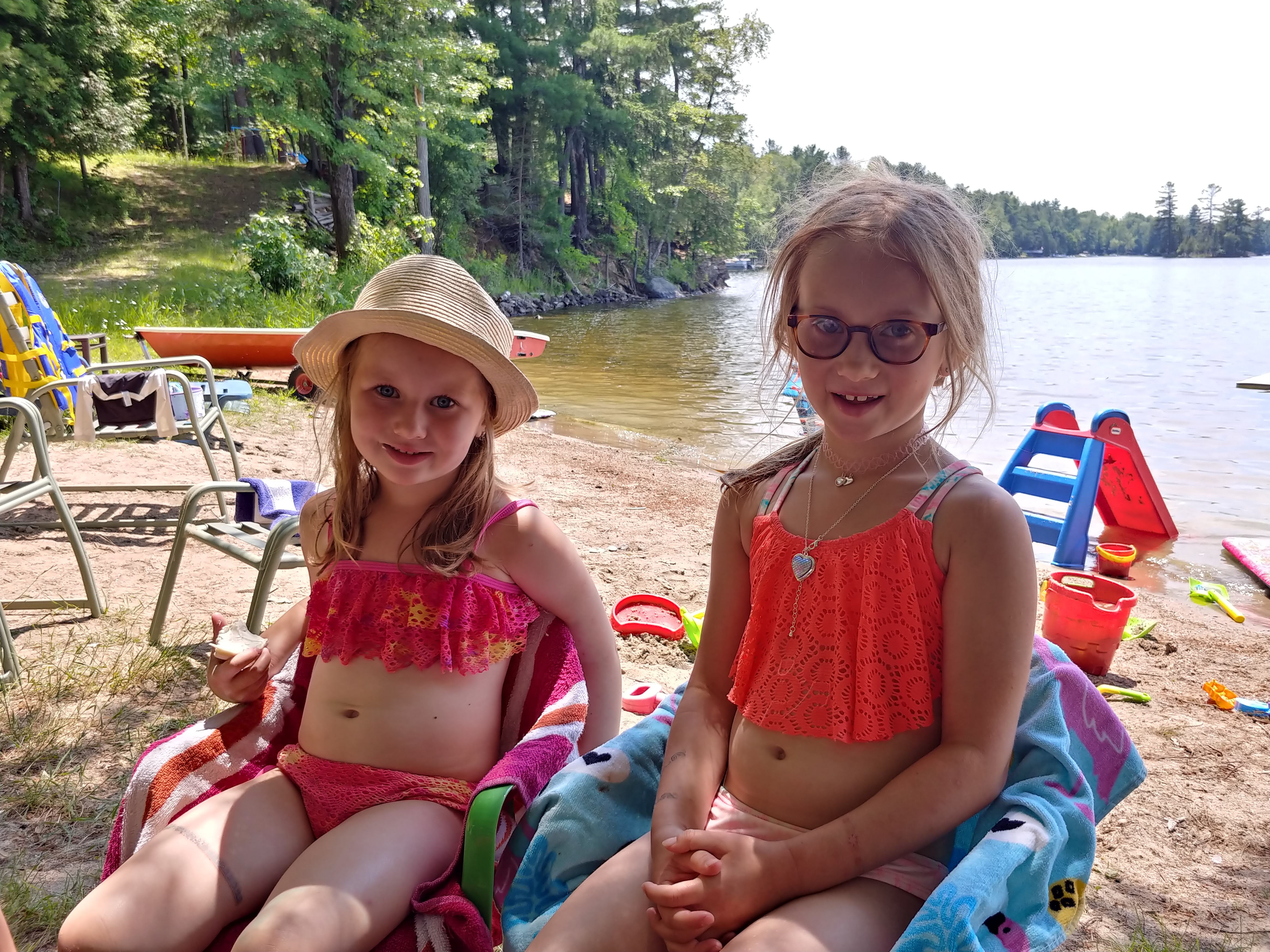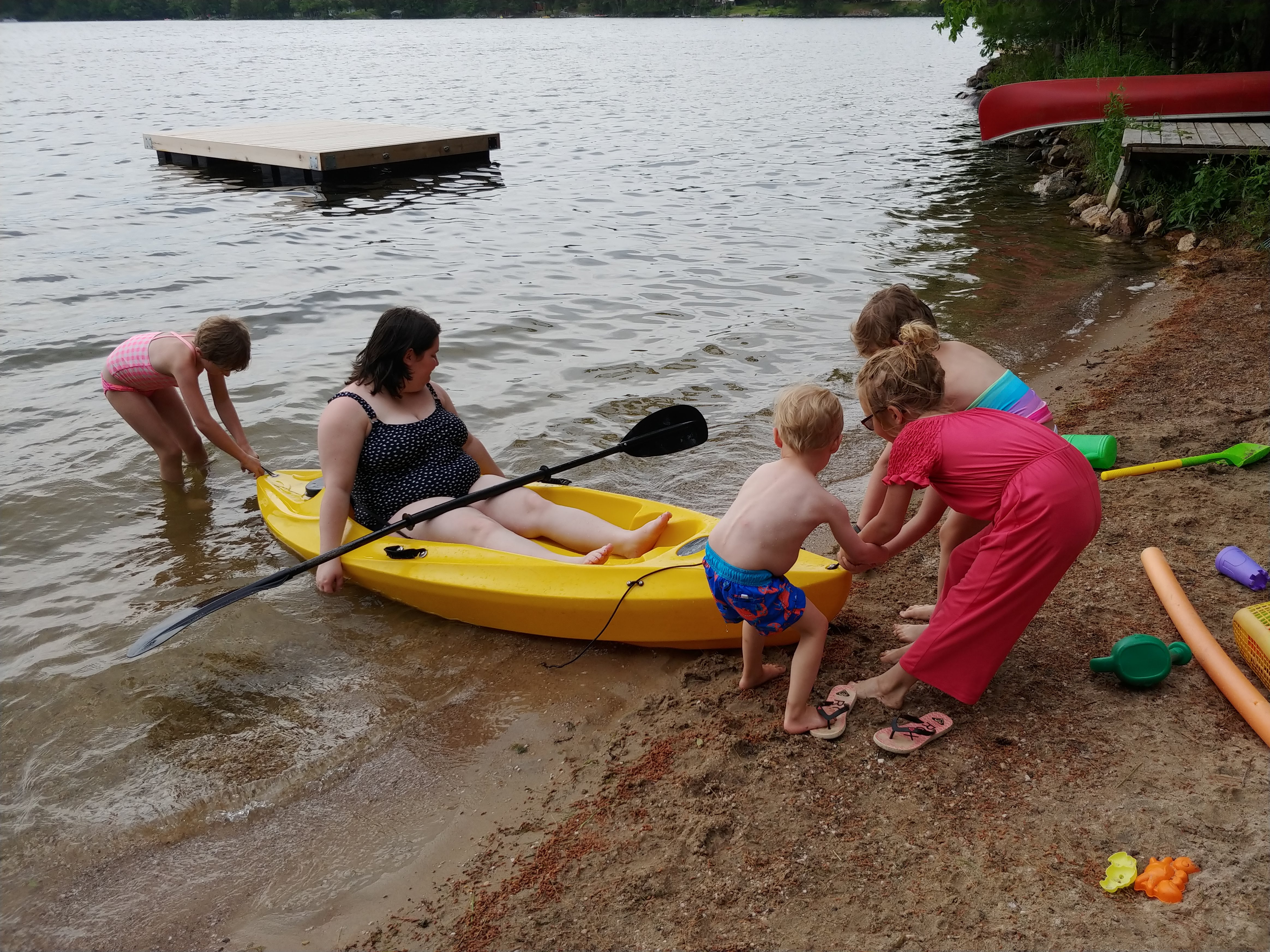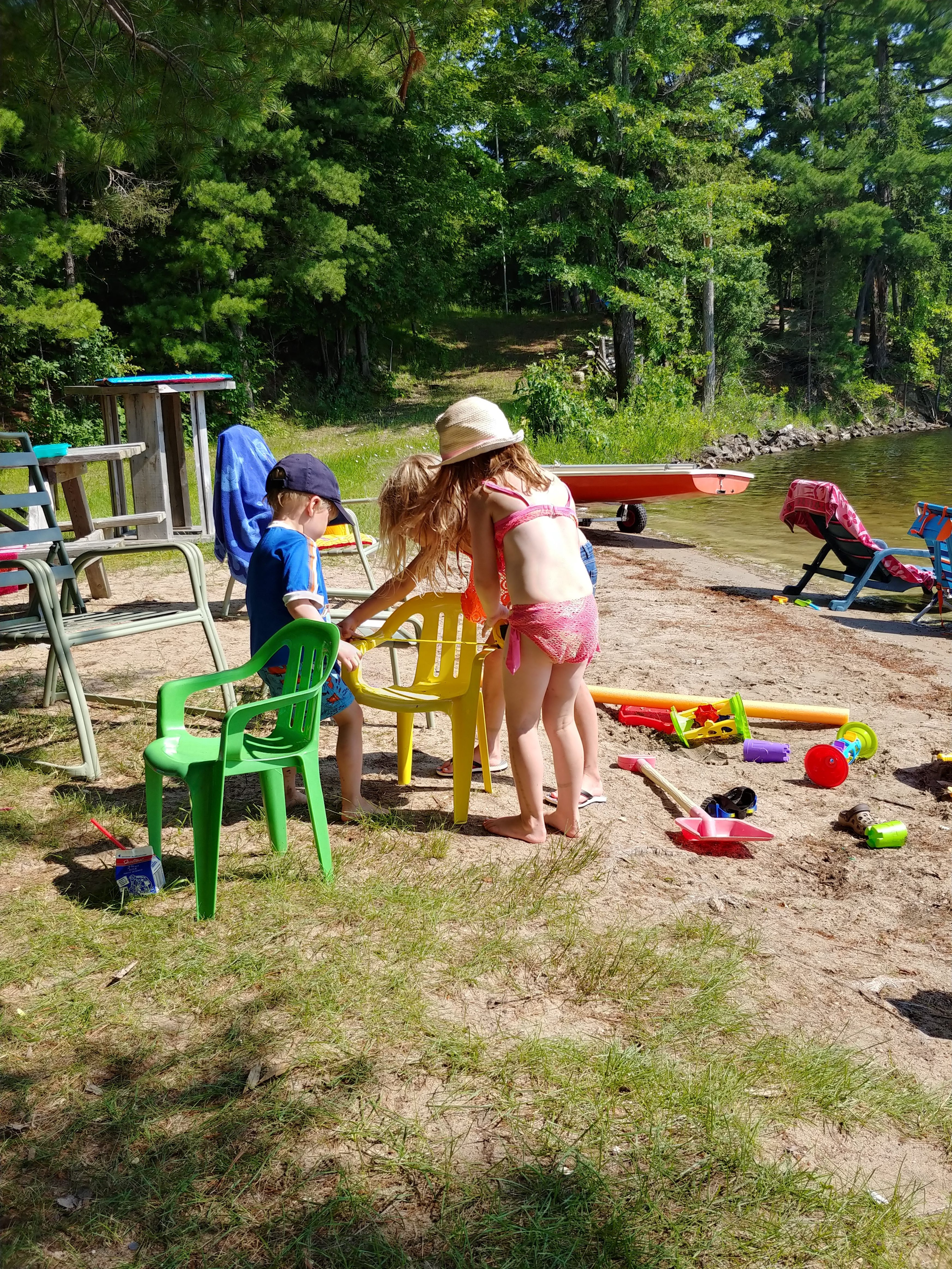 The water was still fresh at the beginning of our stay, but warmed up to bath water by the end. Isaac spent a good portion of each day in the water, often starting with a 7am swim. Cadence and Asher tested the water but it was still too cold for their liking for more than a minute, so they mostly just hung out on the beach. Although we were on holidays, having 3 kids means still having to do the everyday things like laundry and bottle prep etc, so Lindy spent more time inside than the usual cottage holiday – but at least with a better view than at home 🙂