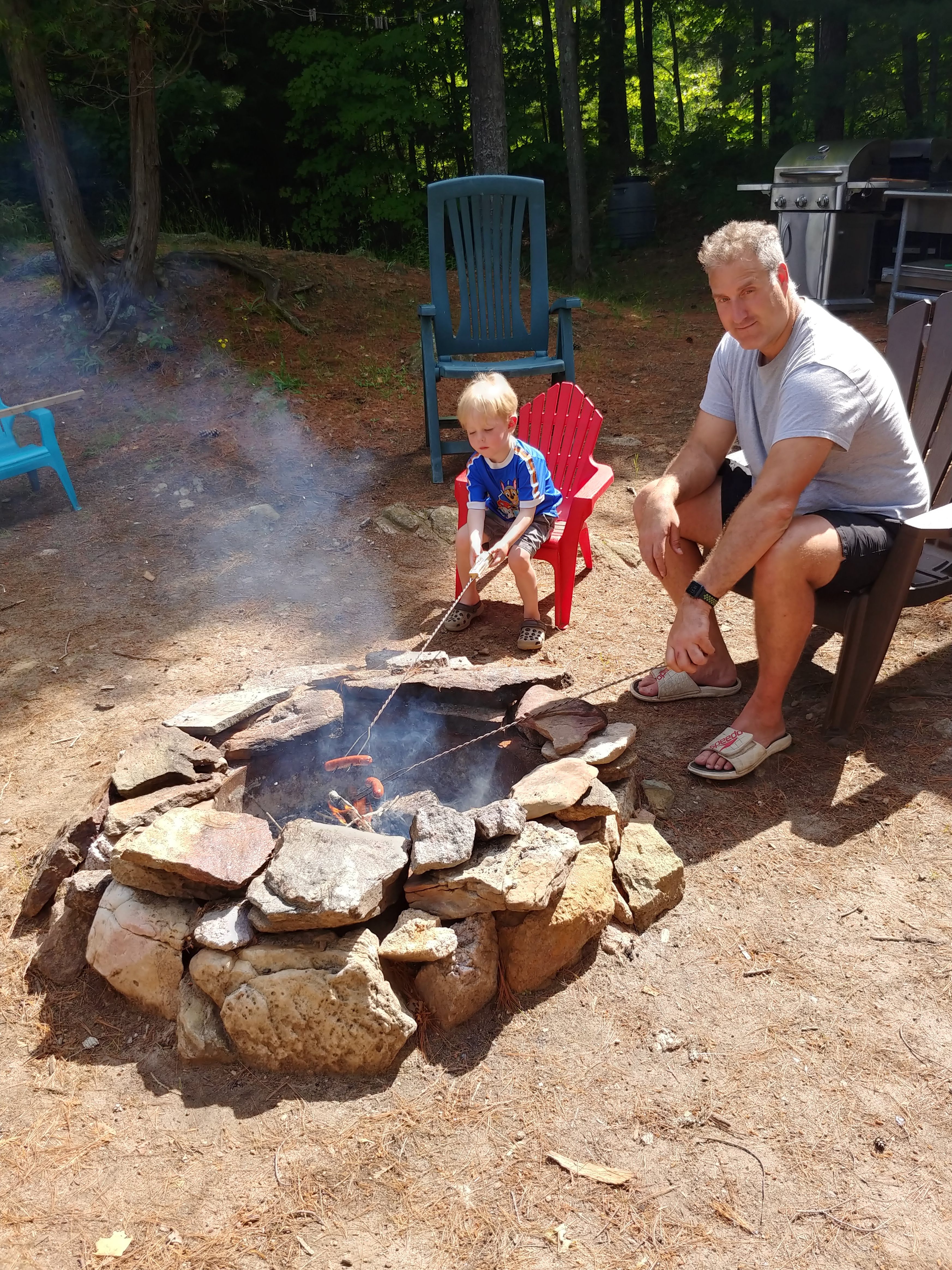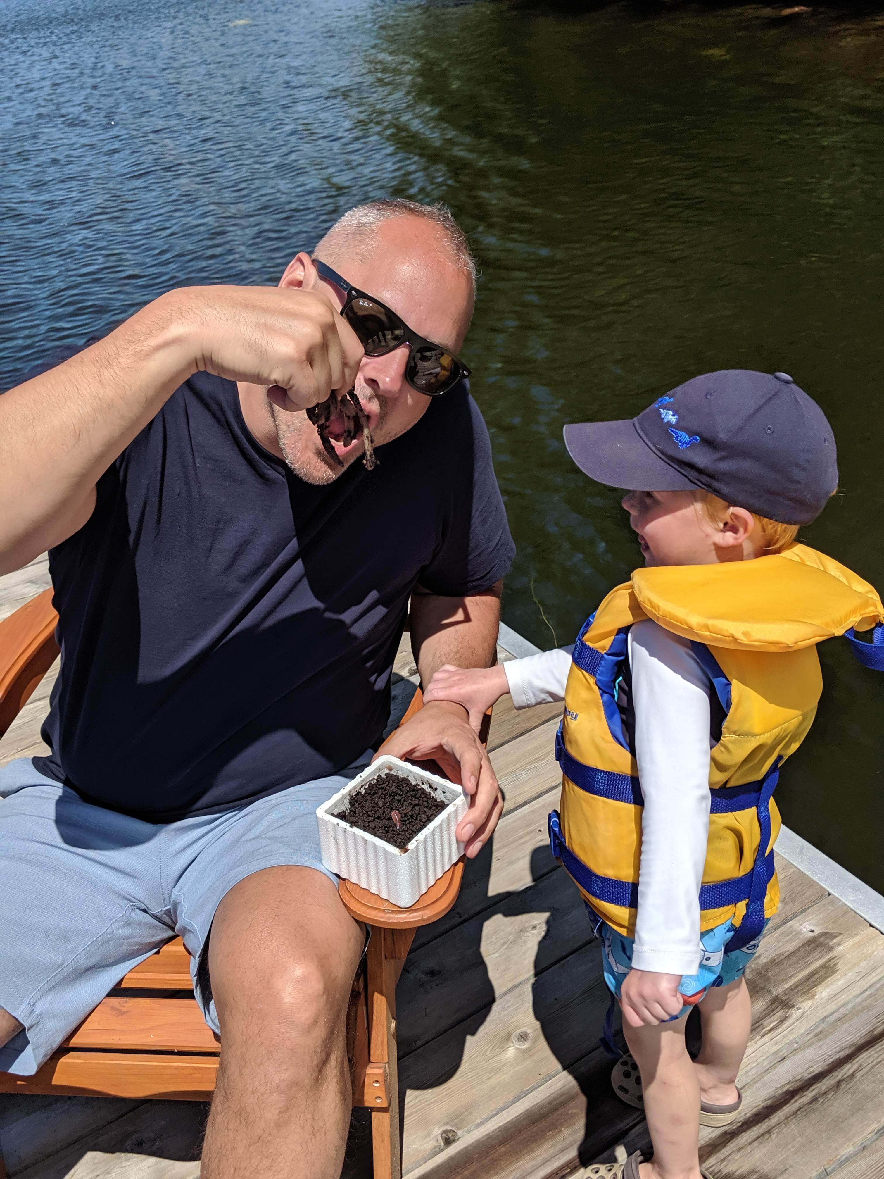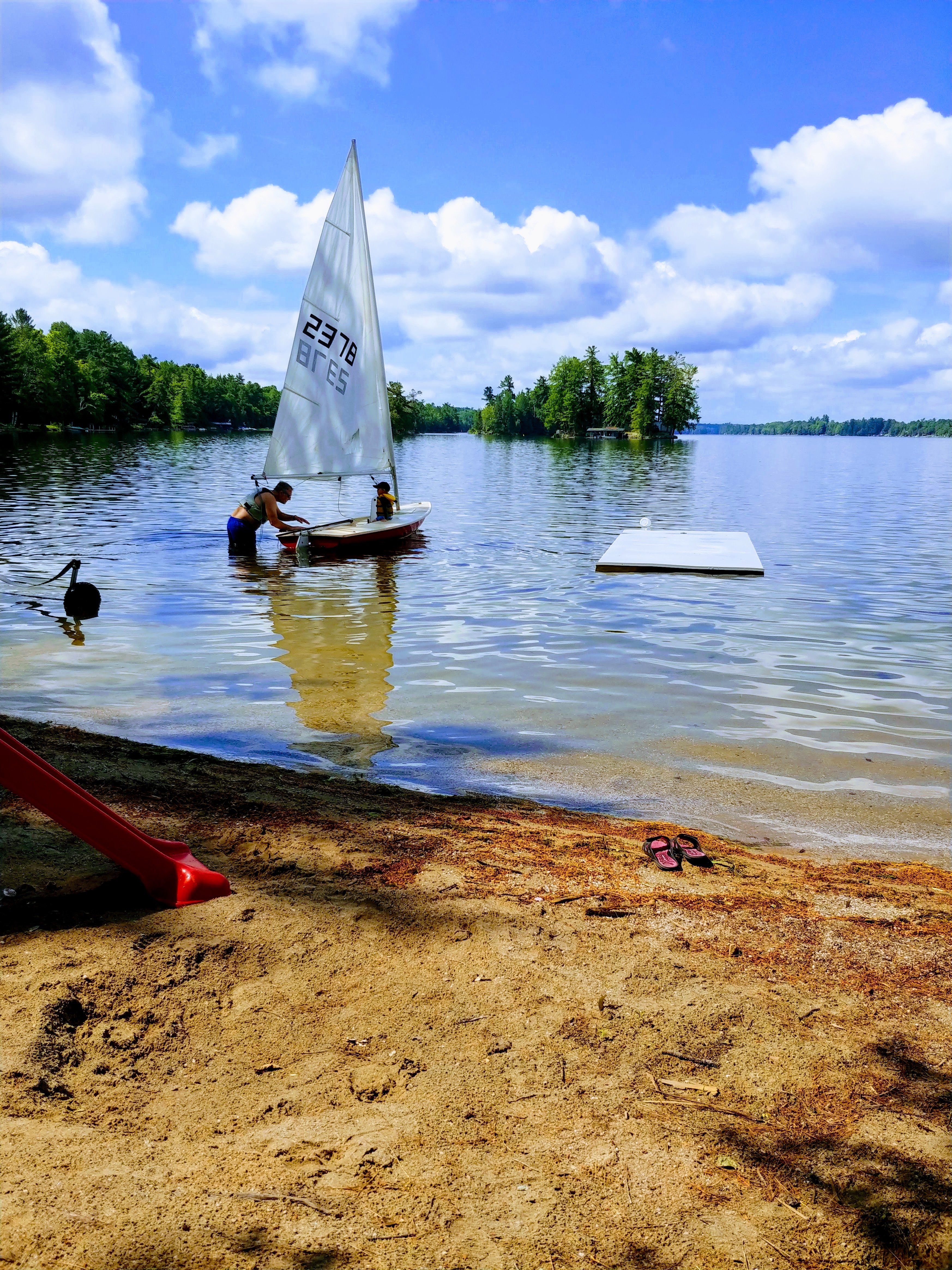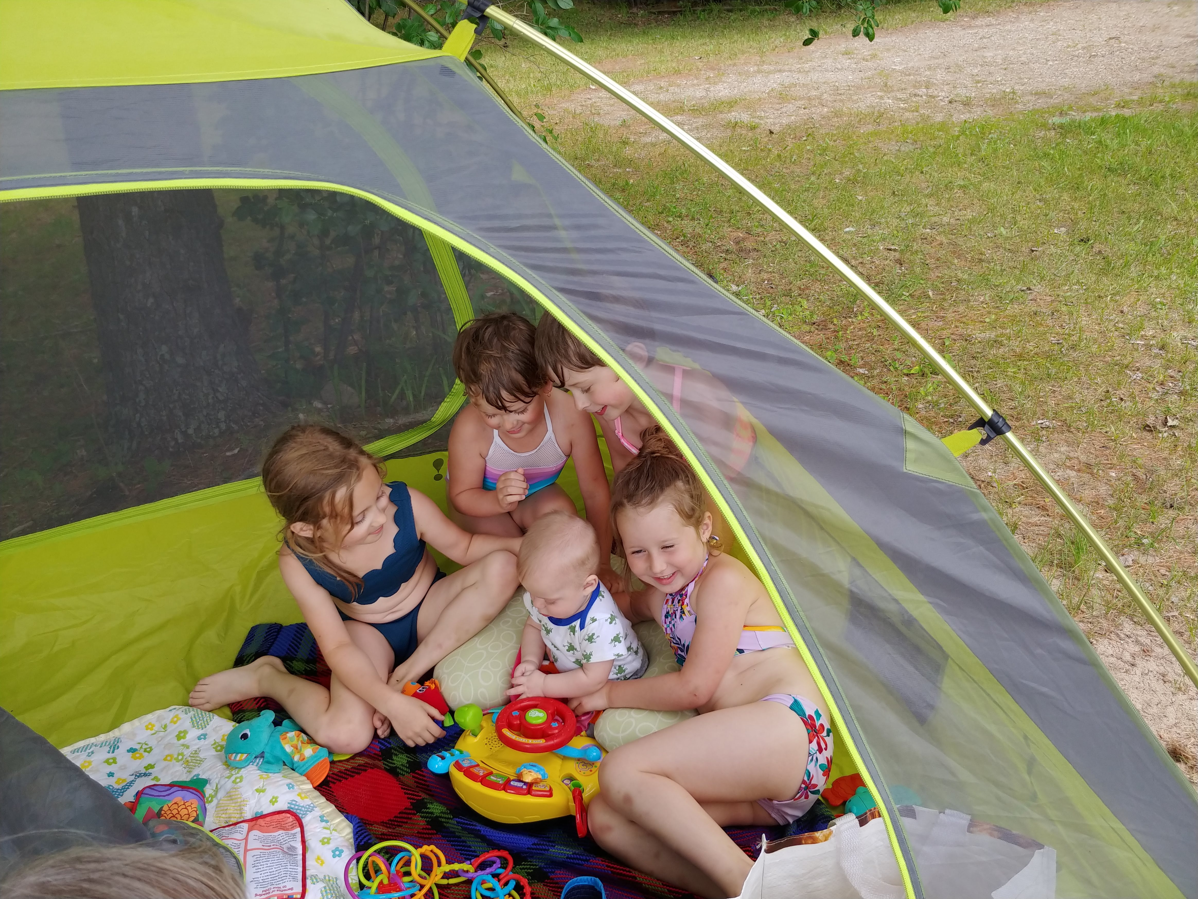 The water was still fresh at the beginning of our stay, but warmed up to bath water by the end. Isaac spent a good portion of each day in the water, often starting with a 7am swim. Cadence and Asher tested the water but it was still too cold for their liking for more than a minute, so they mostly just hung out on the beach. Although we were on holidays, having 3 kids means still having to do the everyday things like laundry and bottle prep etc, so Lindy spent more time inside than the usual cottage holiday – but at least with a better view than at home 🙂