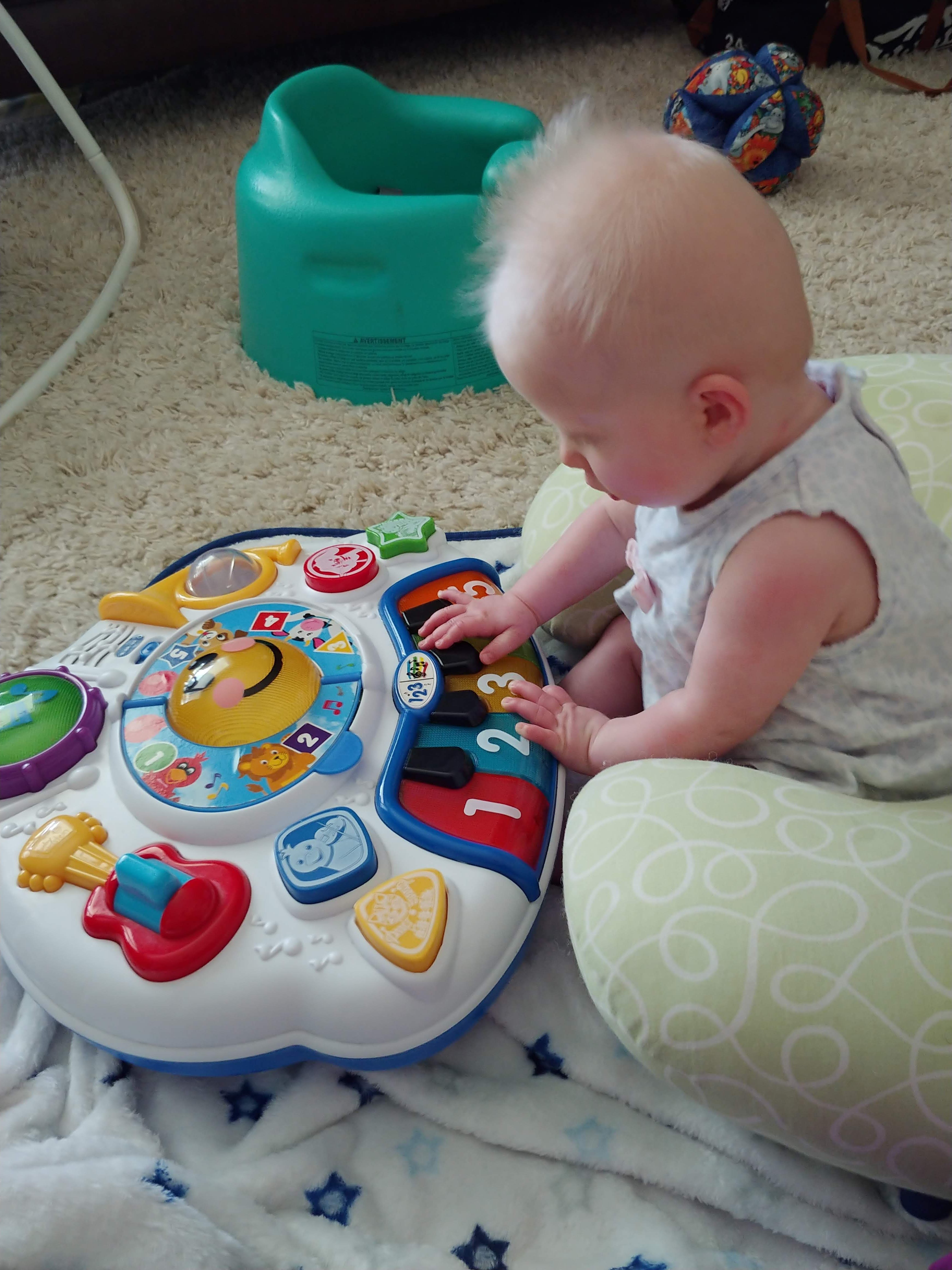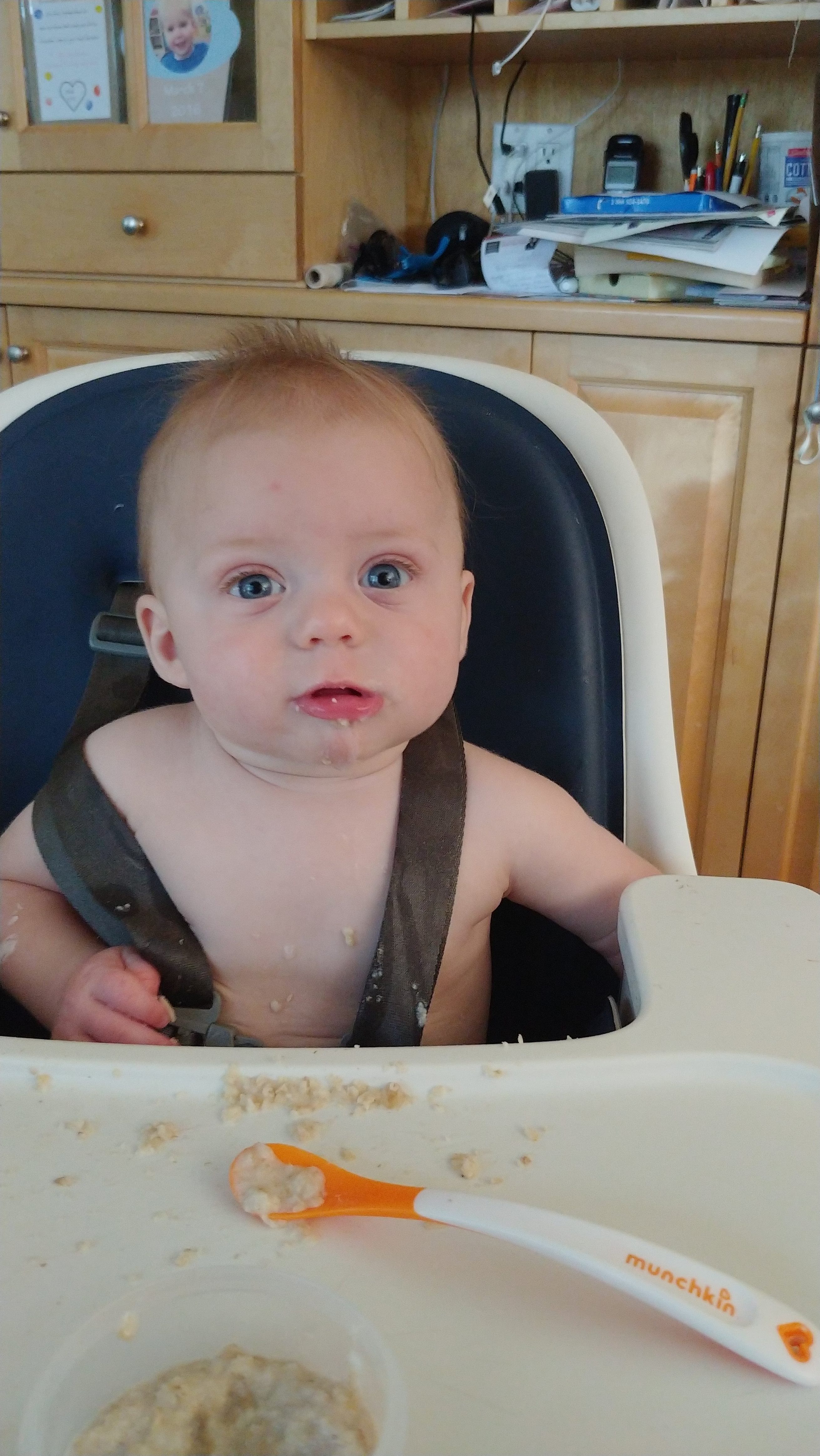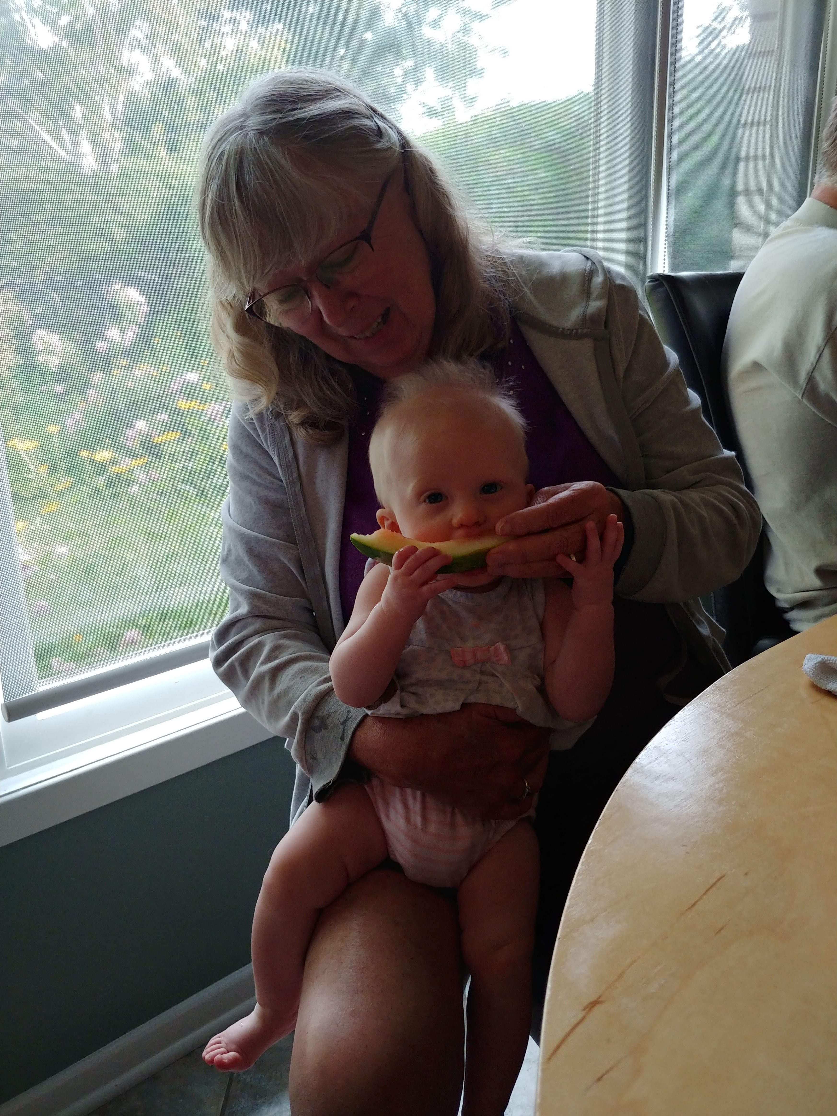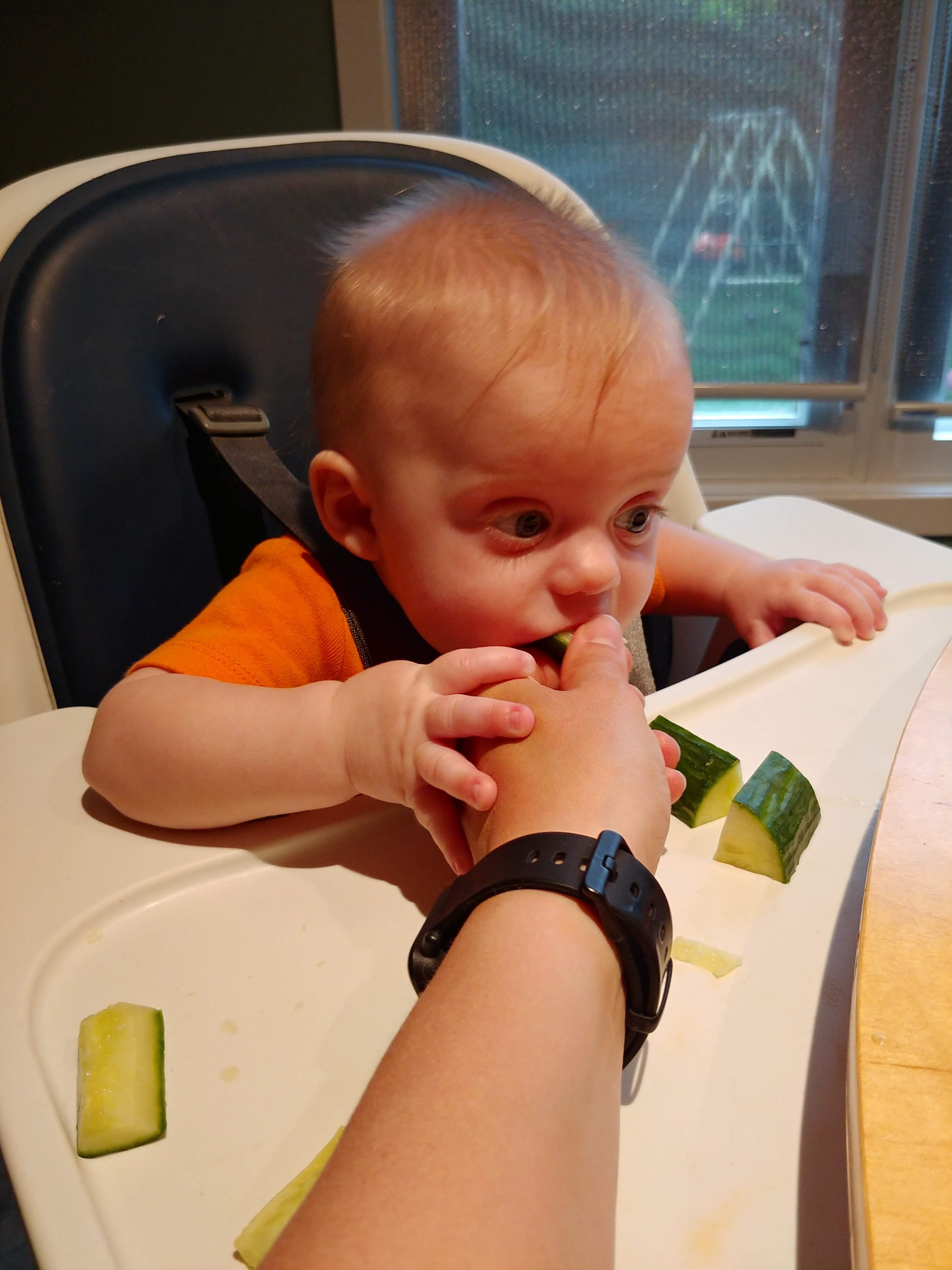 The babies are sitting up on their own and moving around. Asher can cover some ground now, although very slowly and in an unconventional way. He is also starting to walk when holding onto someone’s hands, instinctively putting one foot in front of the other. We’ve started giving them some food too, and they sit with us at the table in their highchairs. They both chatter-scream quite a bit now, and Jon and Lindy are having a hard time with the noise of three shouting kids at dinnertime.