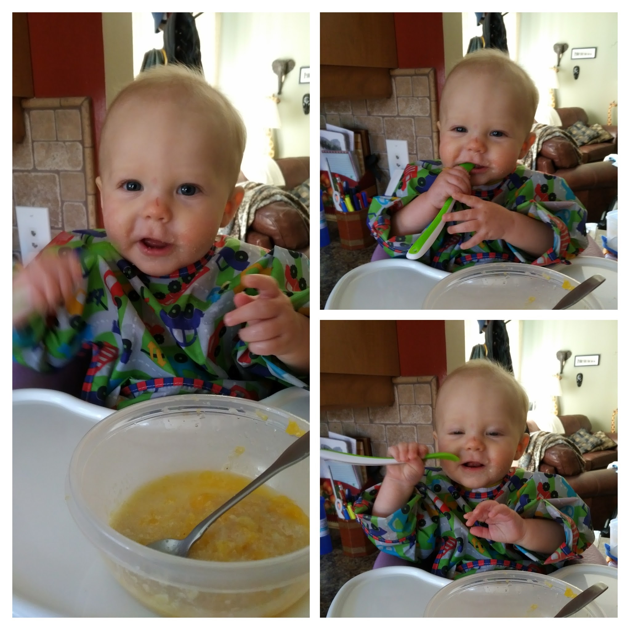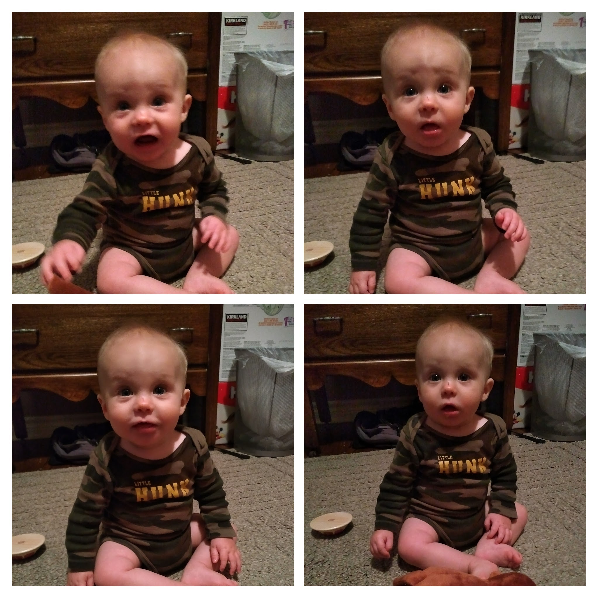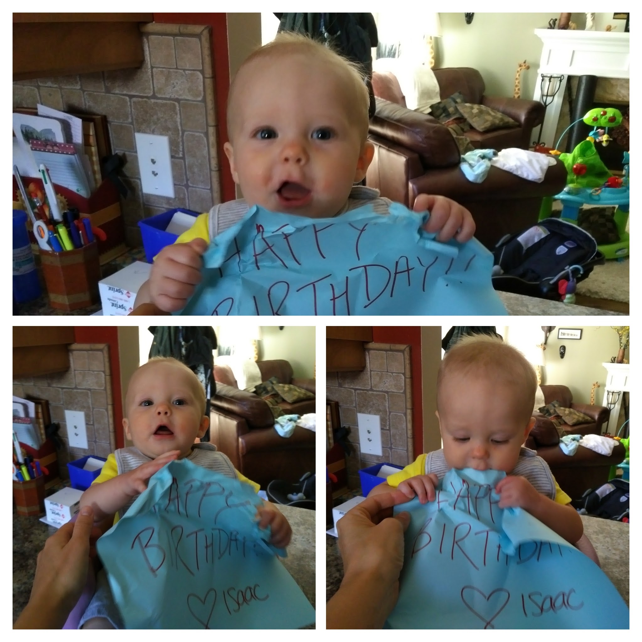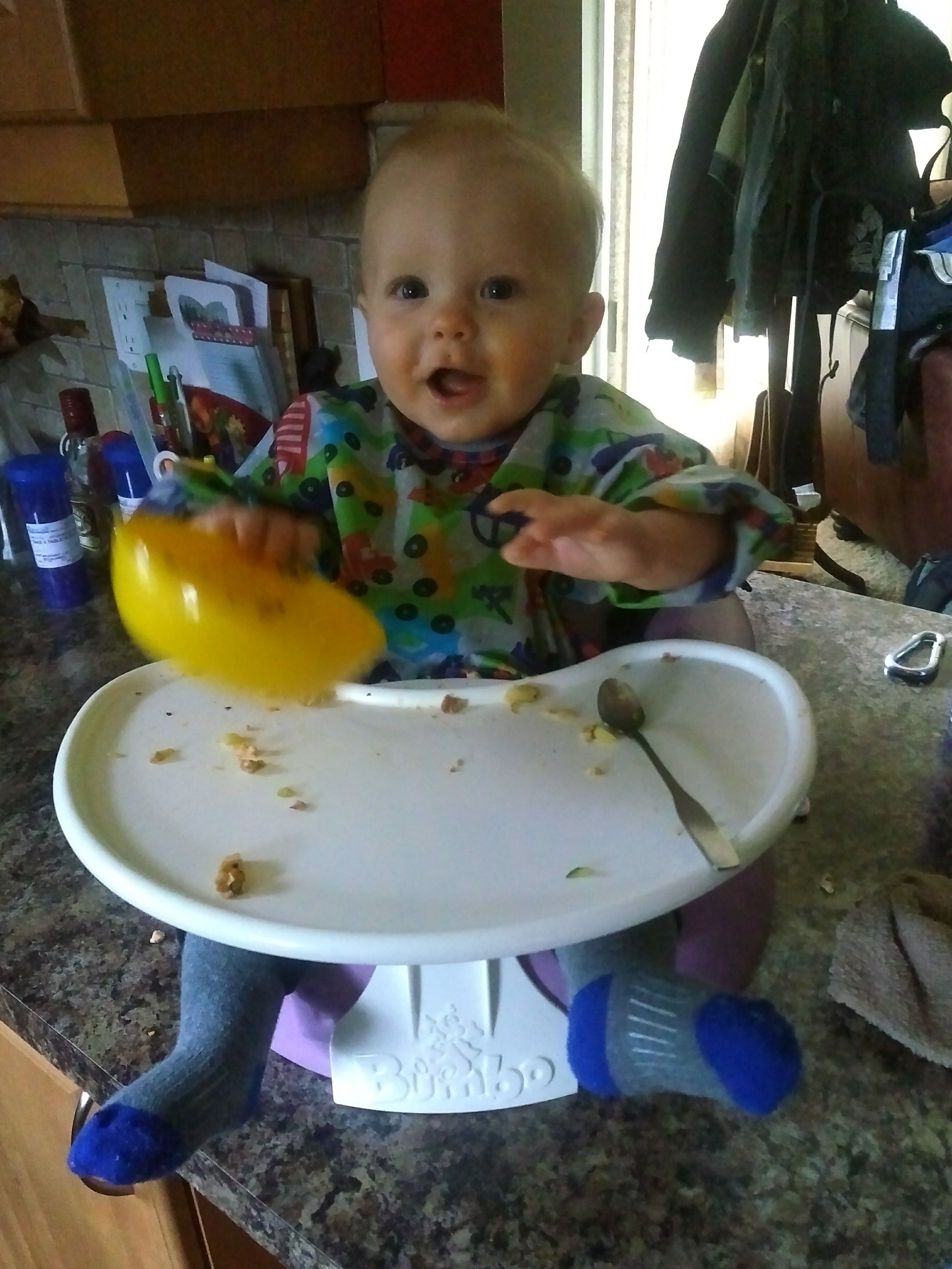 Isaac is a barrel of laughs these days, always finding something to giggle about, and meeting new people with a huge smile. He’s on the move more than ever, doing his version of crawling – a mix between a bear crawl and a zombie drag – but getting around more and more. He has pulled himself up to standing already, and is constantly climbing everything and everyone…just never sits still. His appetite is keeping up with him too, and so far he likes to eat whatever is put in front of him, and lots of it!