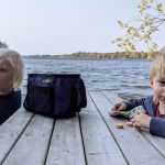 The kids had fun at the cottage again, exploring their tree house and helping to rake the beach. Oma and Opa came to help – and Opa did a lot of the hard work of putting the dock away, although Jon was the only one in water! Even Isaac wouldn’t go in – but he was happy to hang around in his swimsuit.