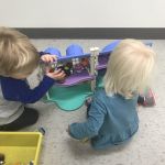Cadence is still very much interested in potty training but hasn’t quite been successful yet. She does often go by herself to get out her change pad and diapers and wipes and will get undressed and lie herself down to be changed. She now also likes changing her baby doll. We acquired a baby stroller that then became the fought over toy…until a new toy lawnmower showed up as well.