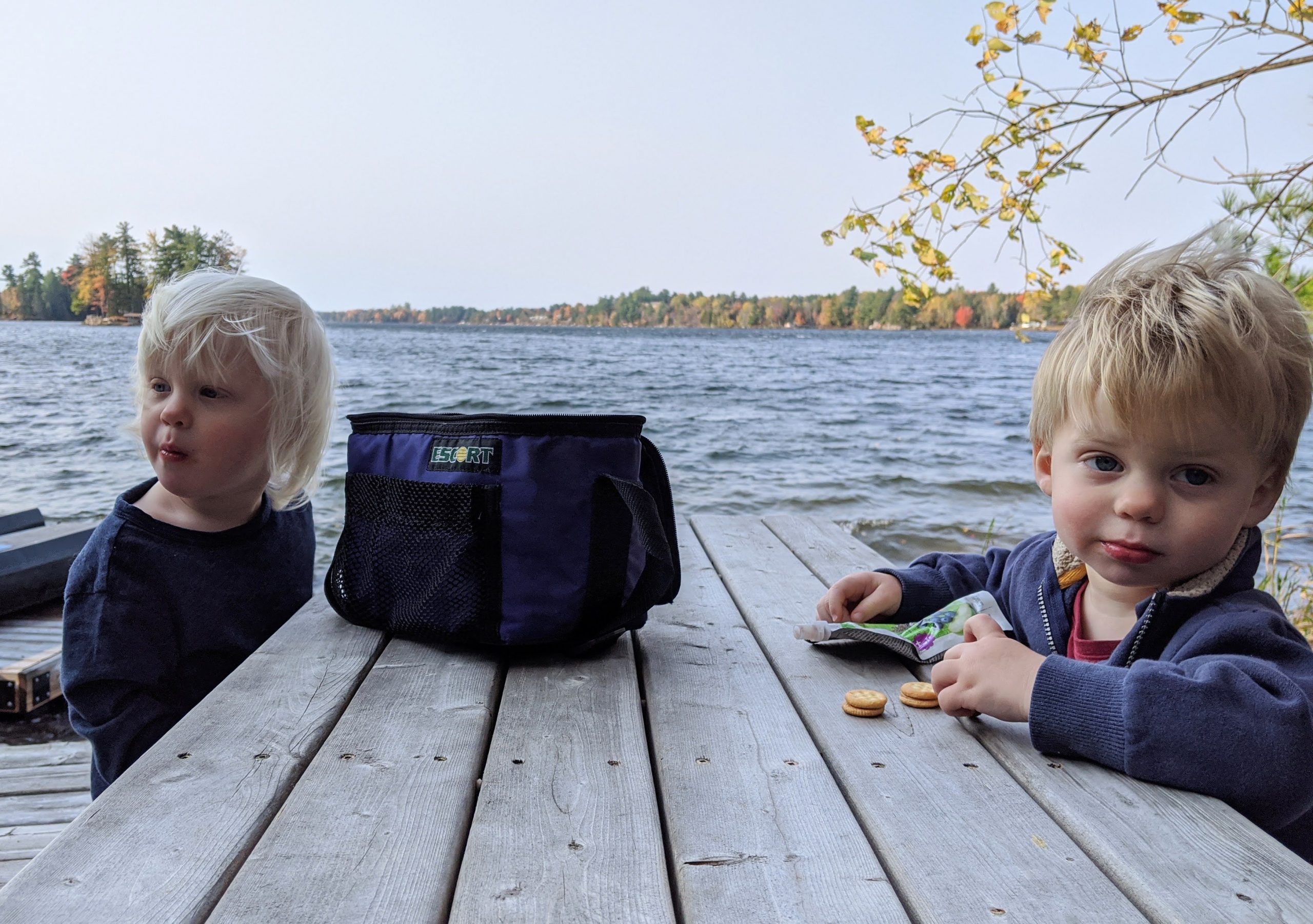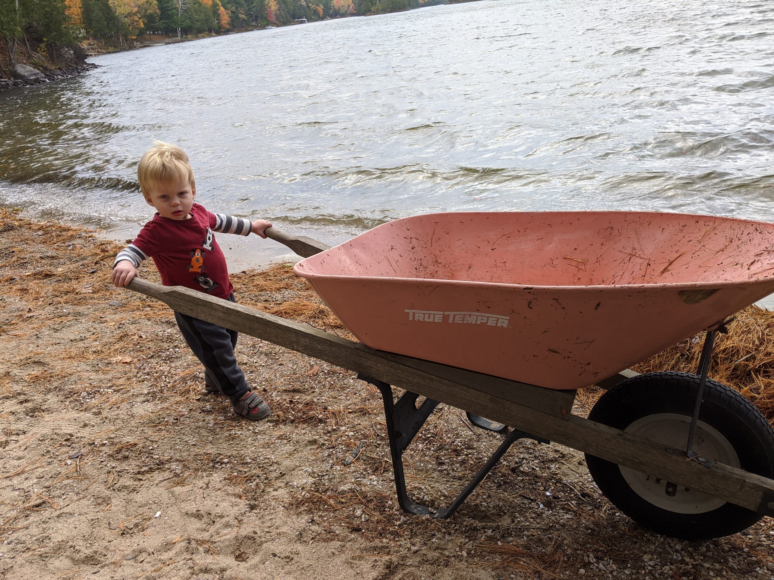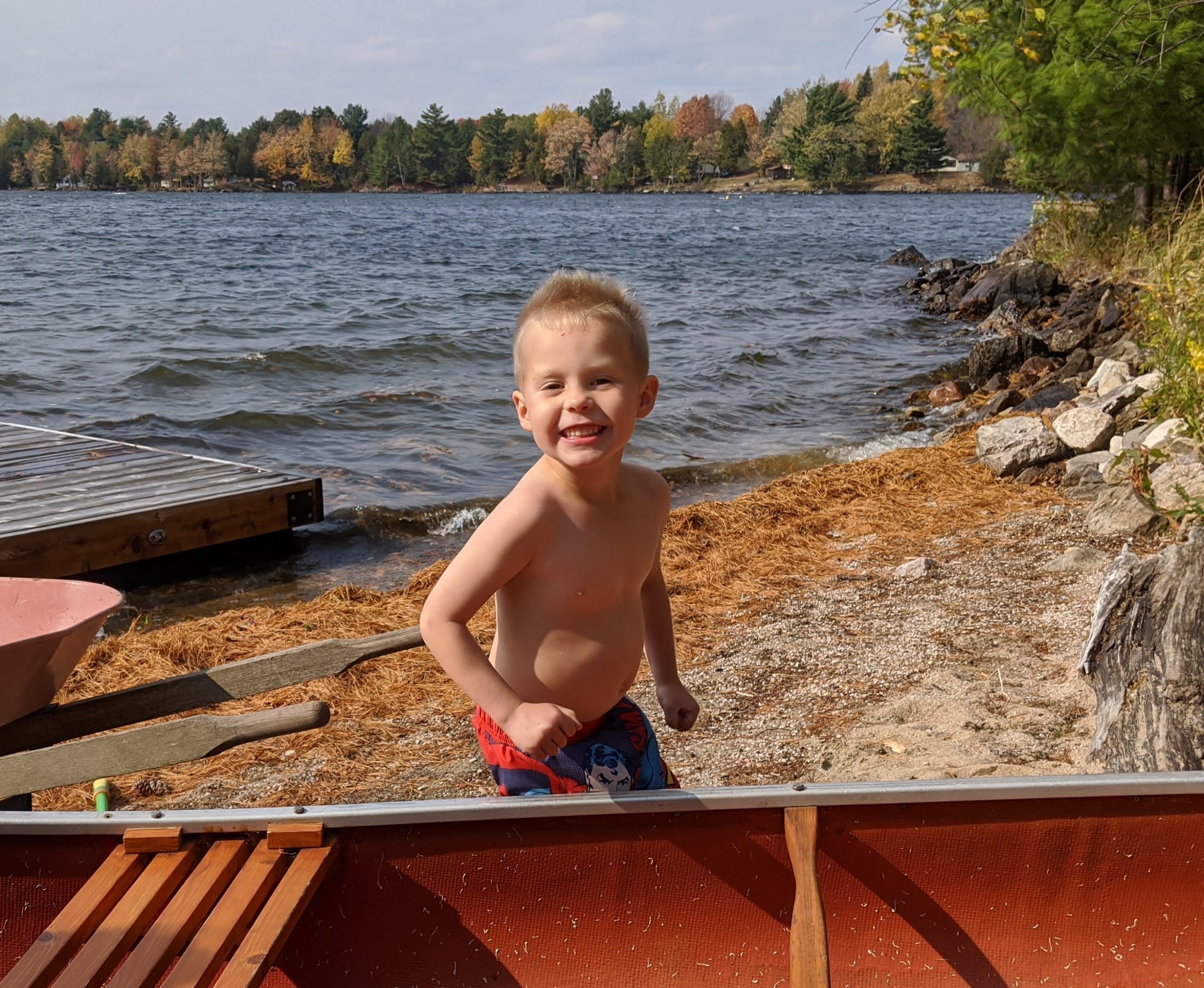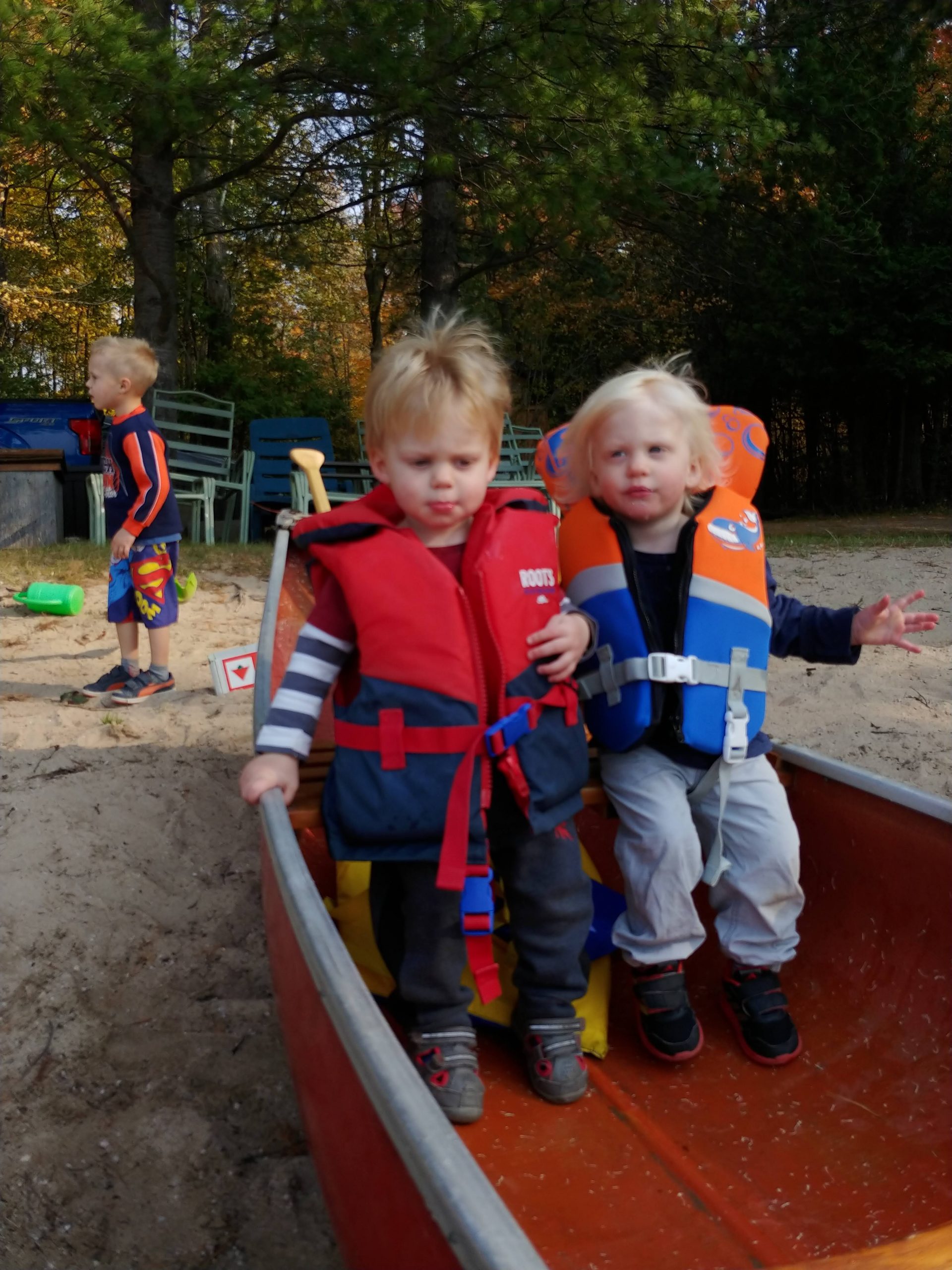 The kids had fun at the cottage again, exploring their tree house and helping to rake the beach. Oma and Opa came to help – and Opa did a lot of the hard work of putting the dock away, although Jon was the only one in water! Even Isaac wouldn’t go in – but he was happy to hang around in his swimsuit.