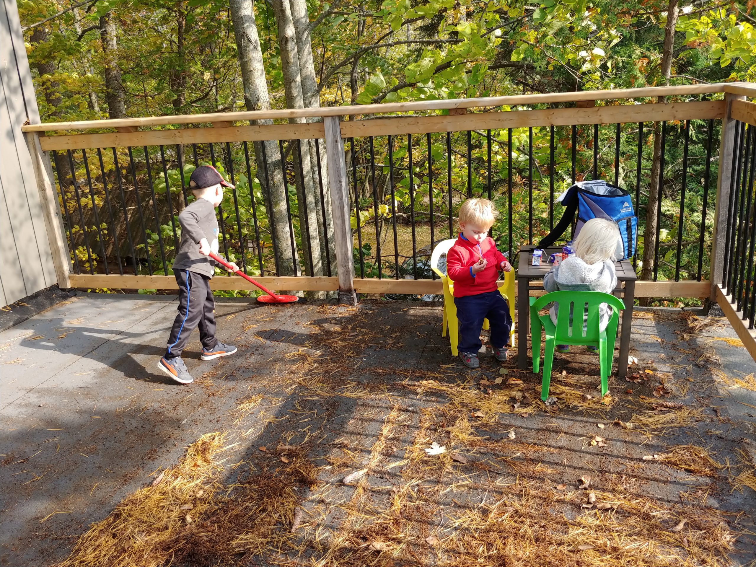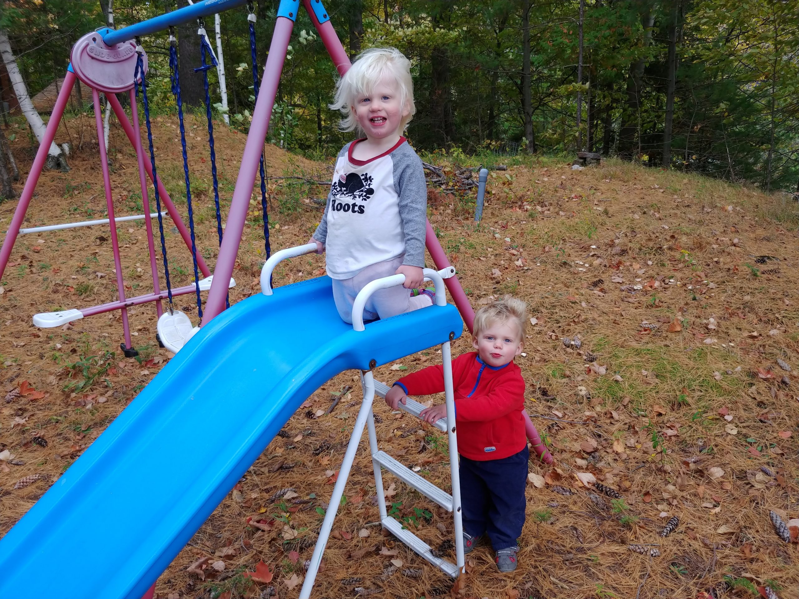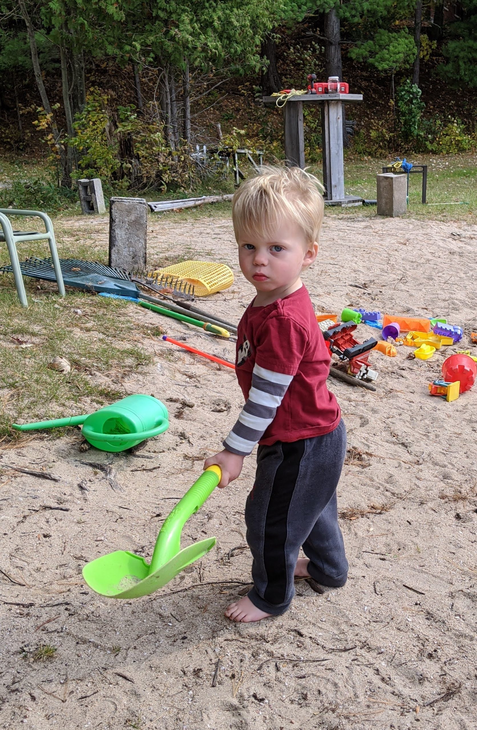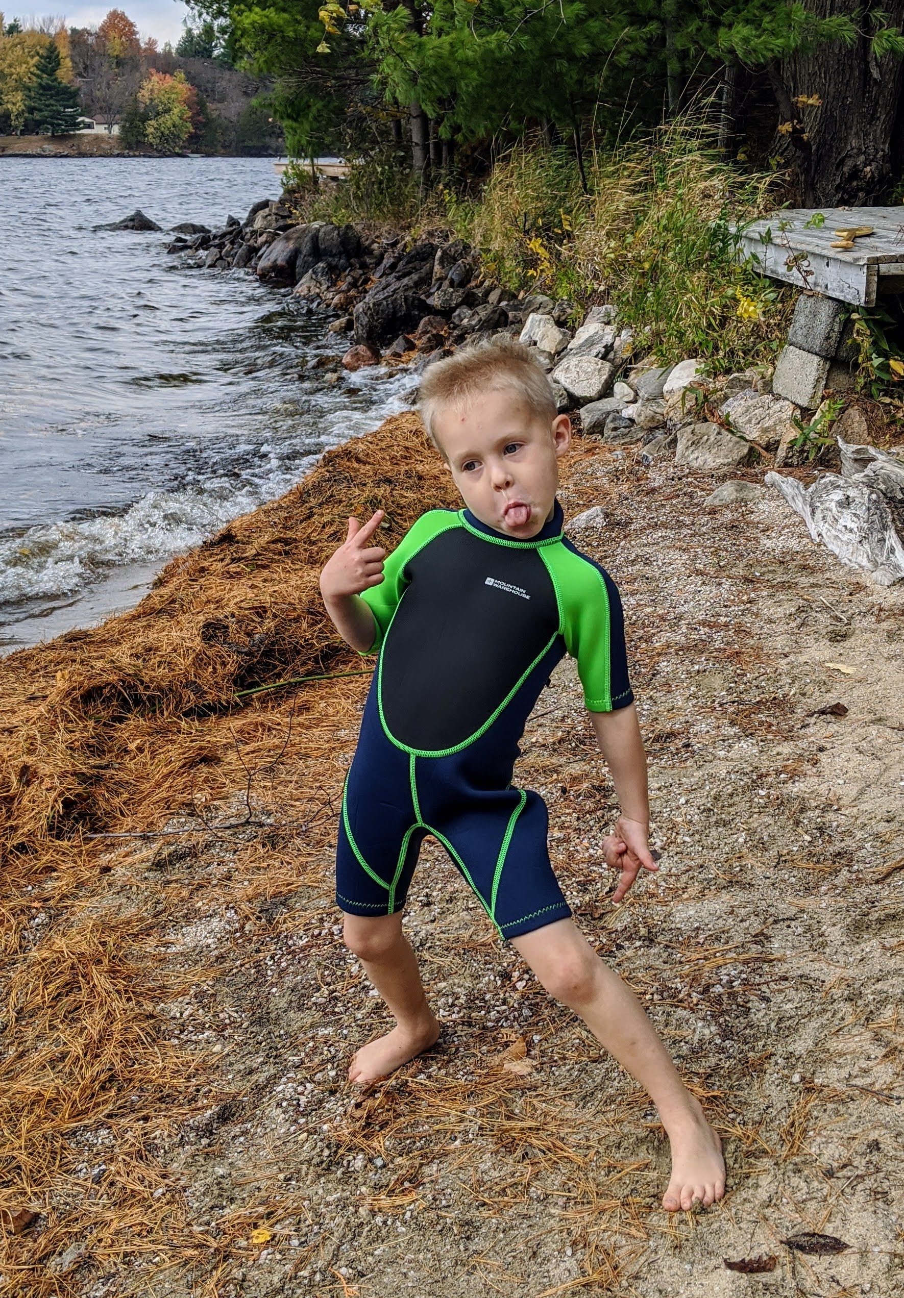 The kids had fun at the cottage again, exploring their tree house and helping to rake the beach. Oma and Opa came to help – and Opa did a lot of the hard work of putting the dock away, although Jon was the only one in water! Even Isaac wouldn’t go in – but he was happy to hang around in his swimsuit.