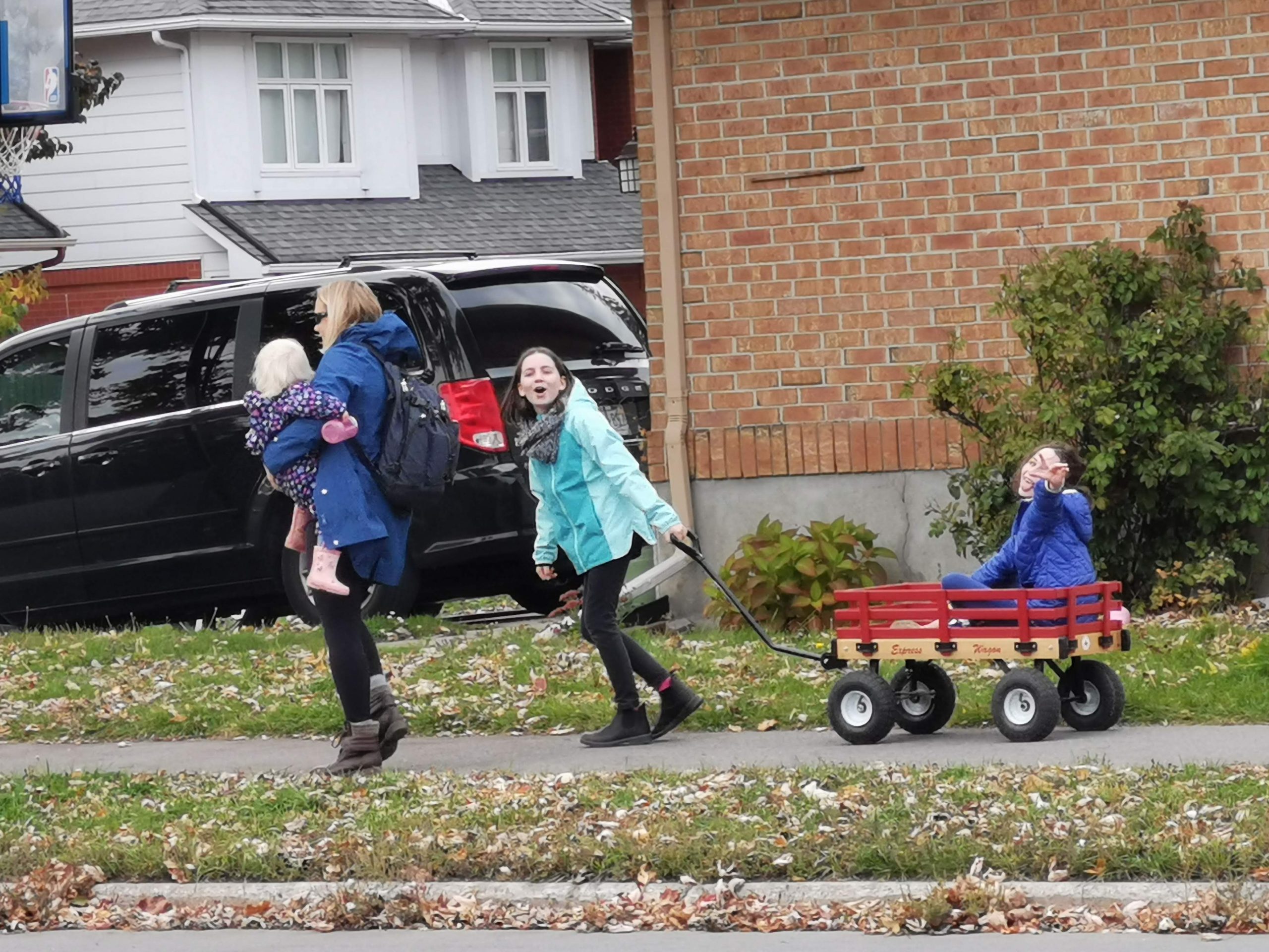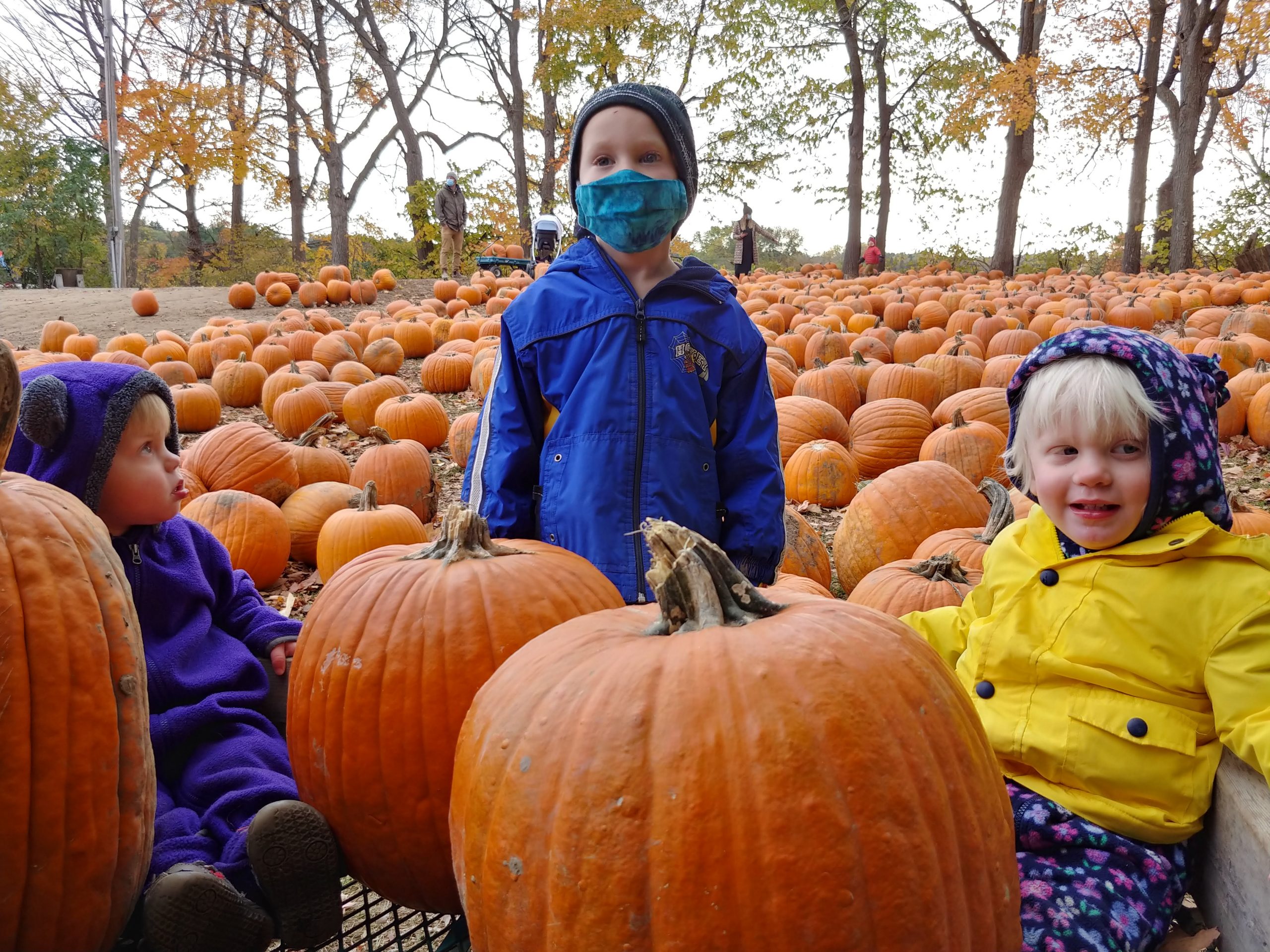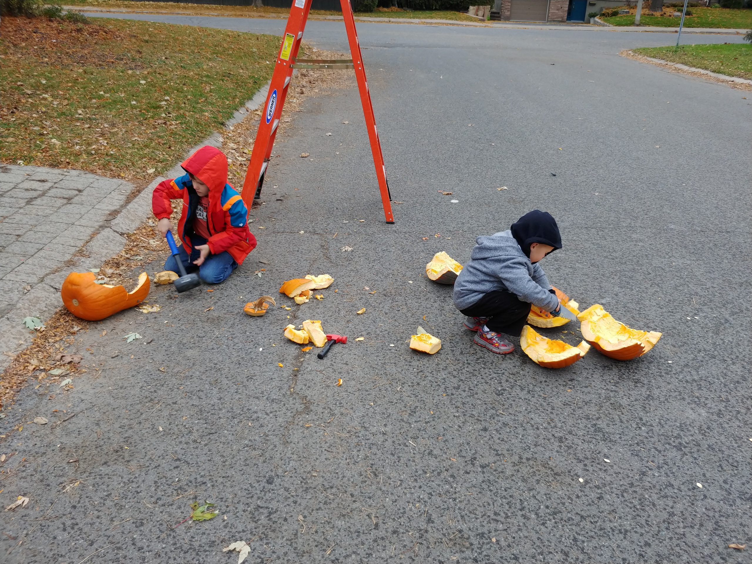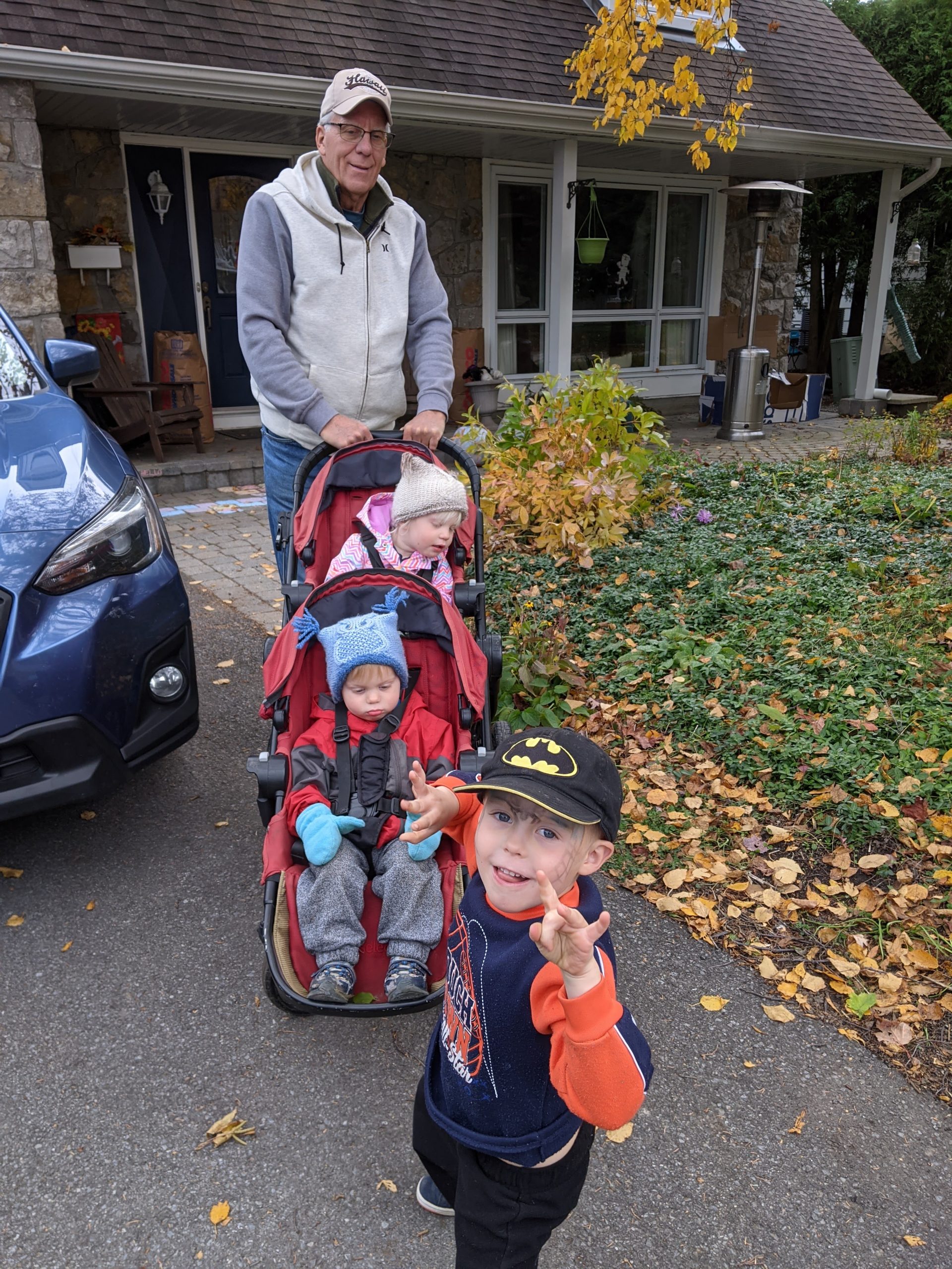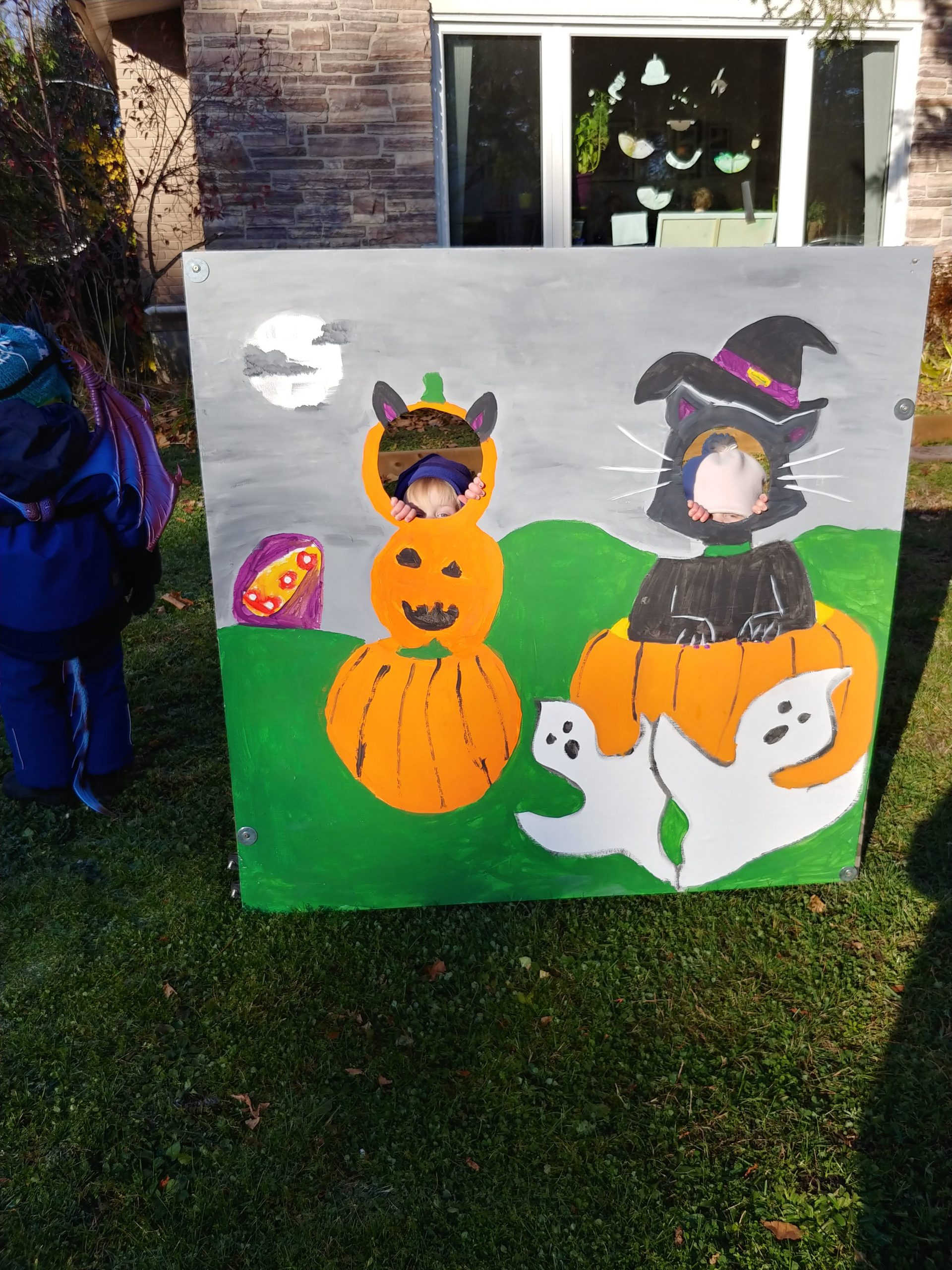 We have such great neighbours! When Halloween Trick or Treating was officially cancelled, we started receiving ghost packages at the door from anonymous friends. “Boo -You’ve been ghosted!!” Of course the kids loved ghosting other kids too, and helped put the individualized packages together and going out in the dark evening to drop them off at people’s front doors. This of course dragged Halloween on for over a week.,, Then our neighbourhood association put together a scavenger hunt from all the yard decorations and planned a walk around the neighbourhood on Halloween as a sort of unorganized costume parade. And of course people started putting candy out at the bottom of their driveway (all wrapped individually again) and it turned into Trick or Treating! We ended up with more candy than normal after a week of ghosting as well… The adults all agreed that the afternoon stroll was the perfect way to celebrate, although very contrary to the intentions of cancelling Halloween, it was still socially distant and a beautiful day for a walk! We even had surprise trick or treaters to our house when Opa and Oma appeared in costume (well Oma anyway!)