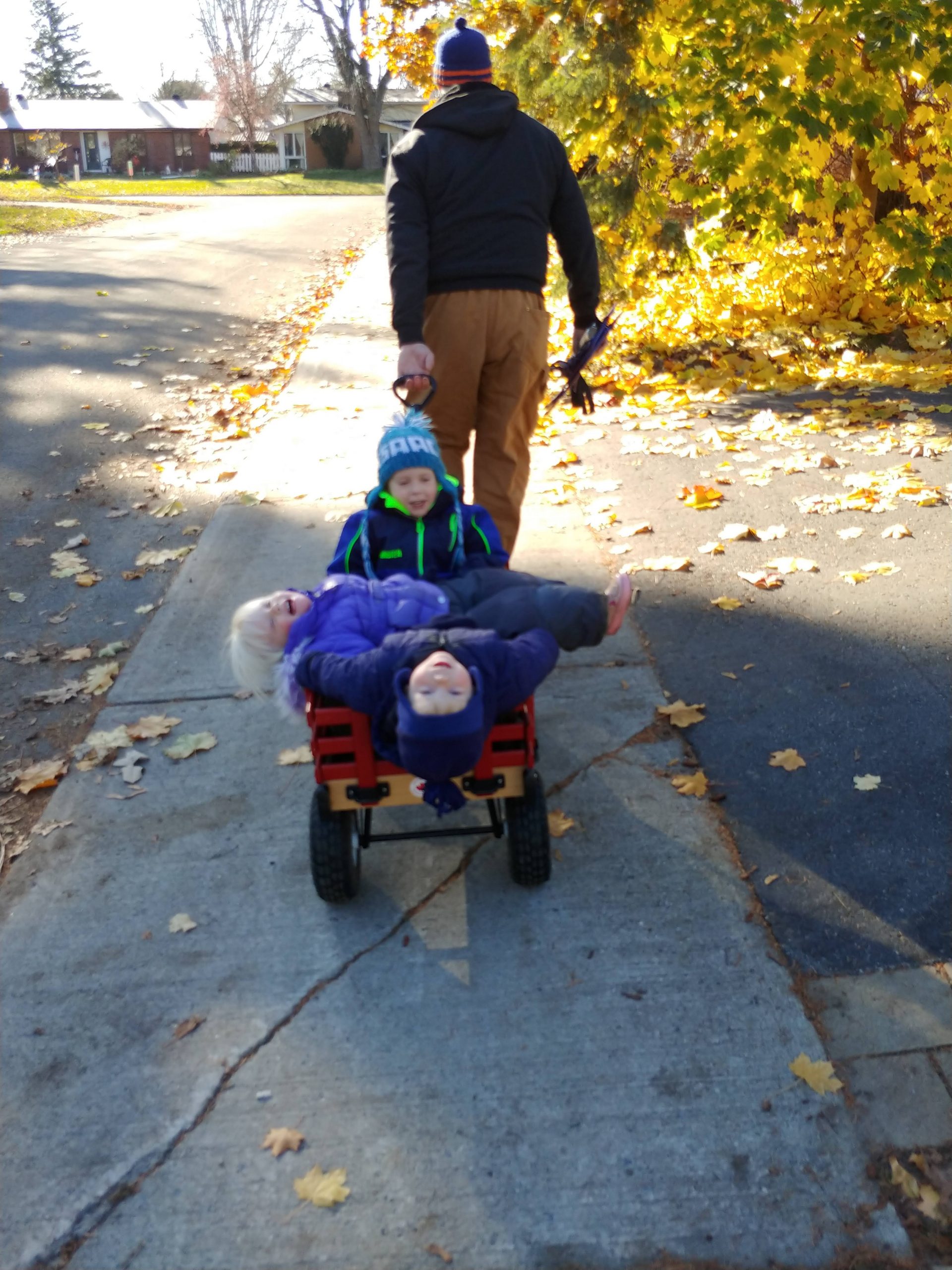 Daycare and school are going well – we’ve now been a month without being sent home for covid testing. The pick up routine is going to become interesting as it gets colder, since the parents have to wait outside in a line to get the kids. Lindy is thankful for the minivan and the ability to get the kids all inside and get in and close the door while trying to wrangle them into their seats.