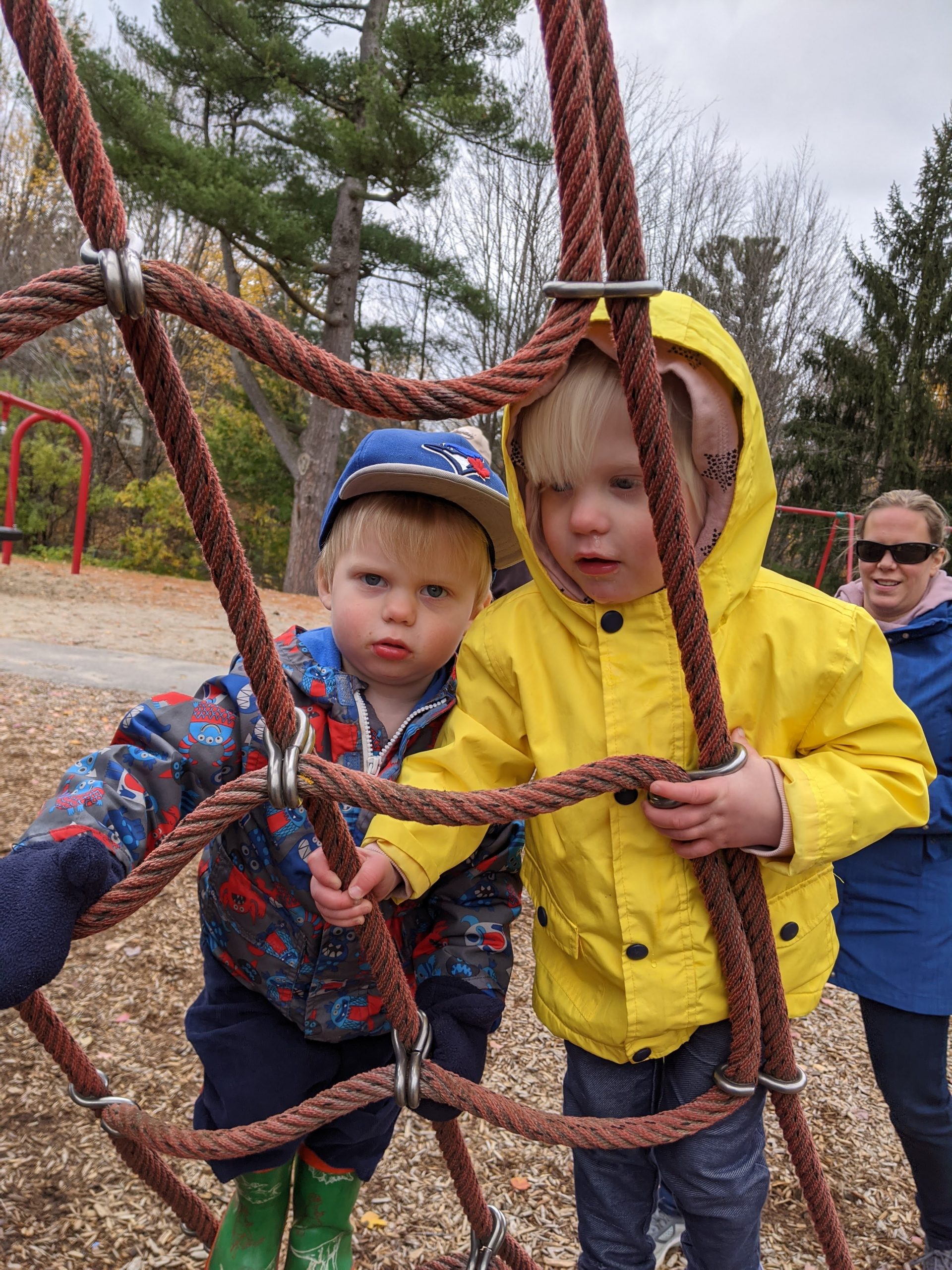 We didn’t get to do the usual Thanksgiving celebration because of the pandemic, so we made due with a makeshift turkey ring and some pumpkin pie. Unfortunately, Barbara had spent a couple weeks in the hospital after a procedure gone wrong – so it wouldn’t have been quite the same anyway regardless of covid. Luckily she was well enough to be able to come home on Thanksgiving Monday – something we are all very thankful for! We did sneak in a park visit with Sam,Charlotte and Isabelle, and met their new dog Winston.