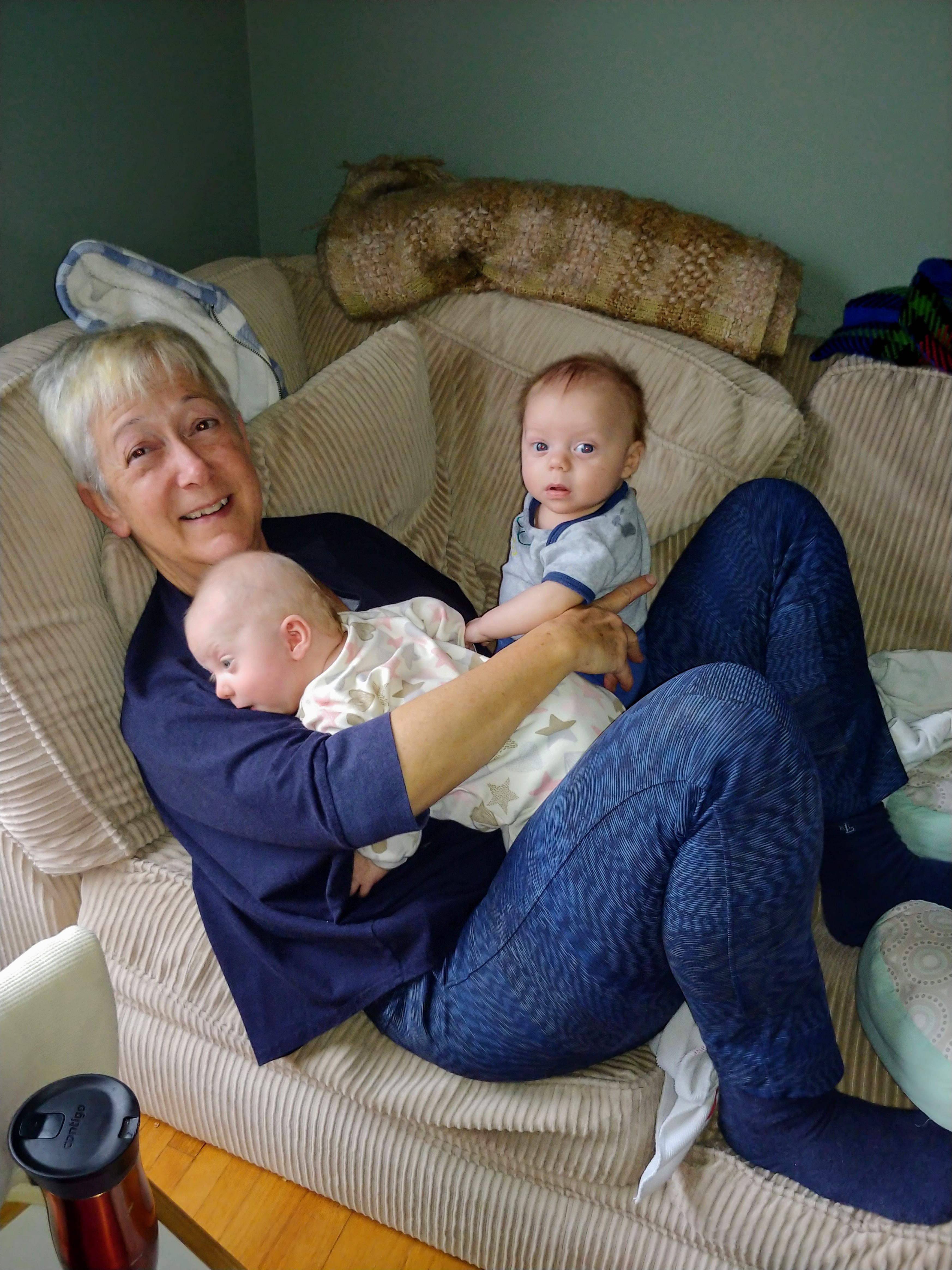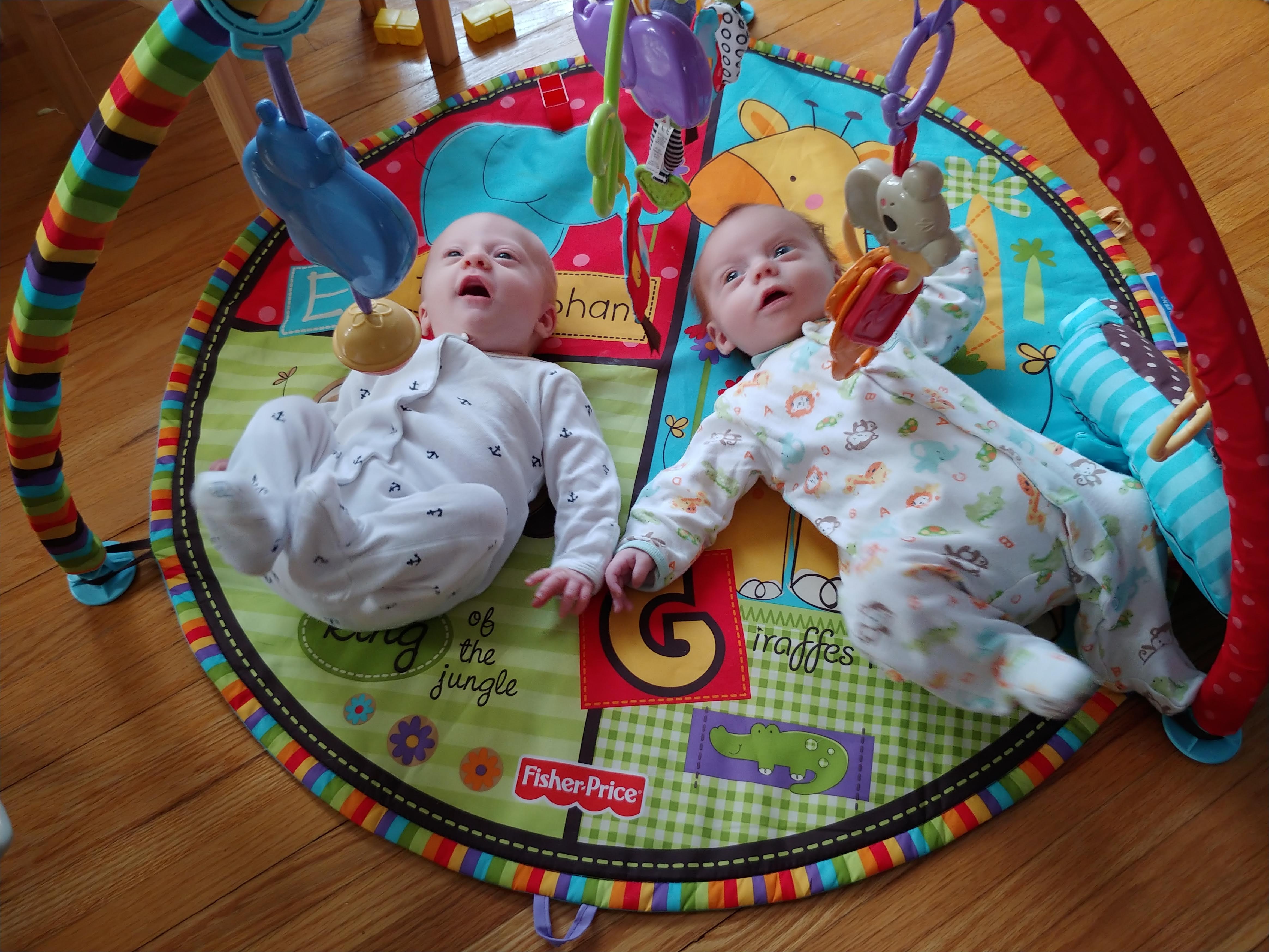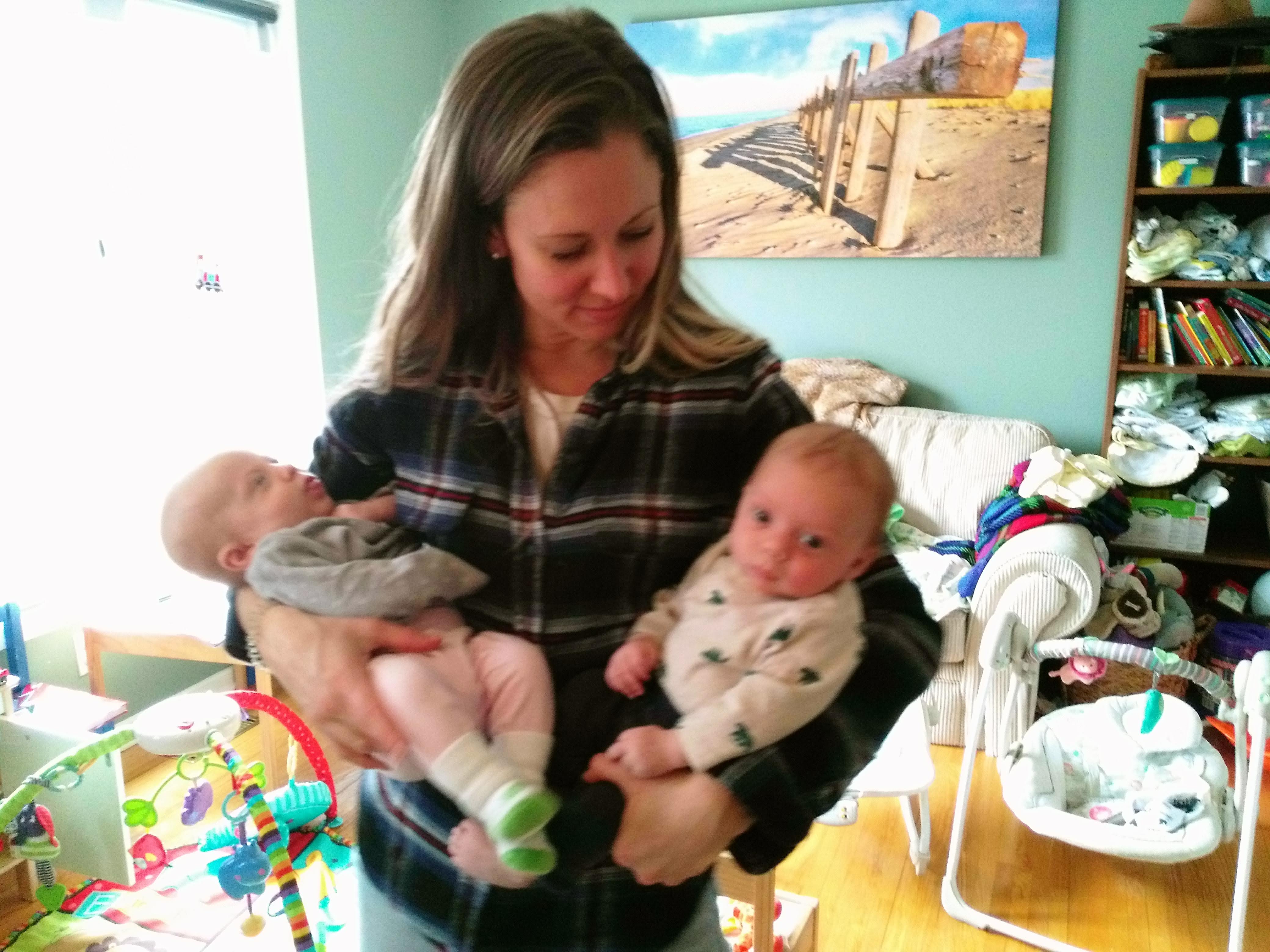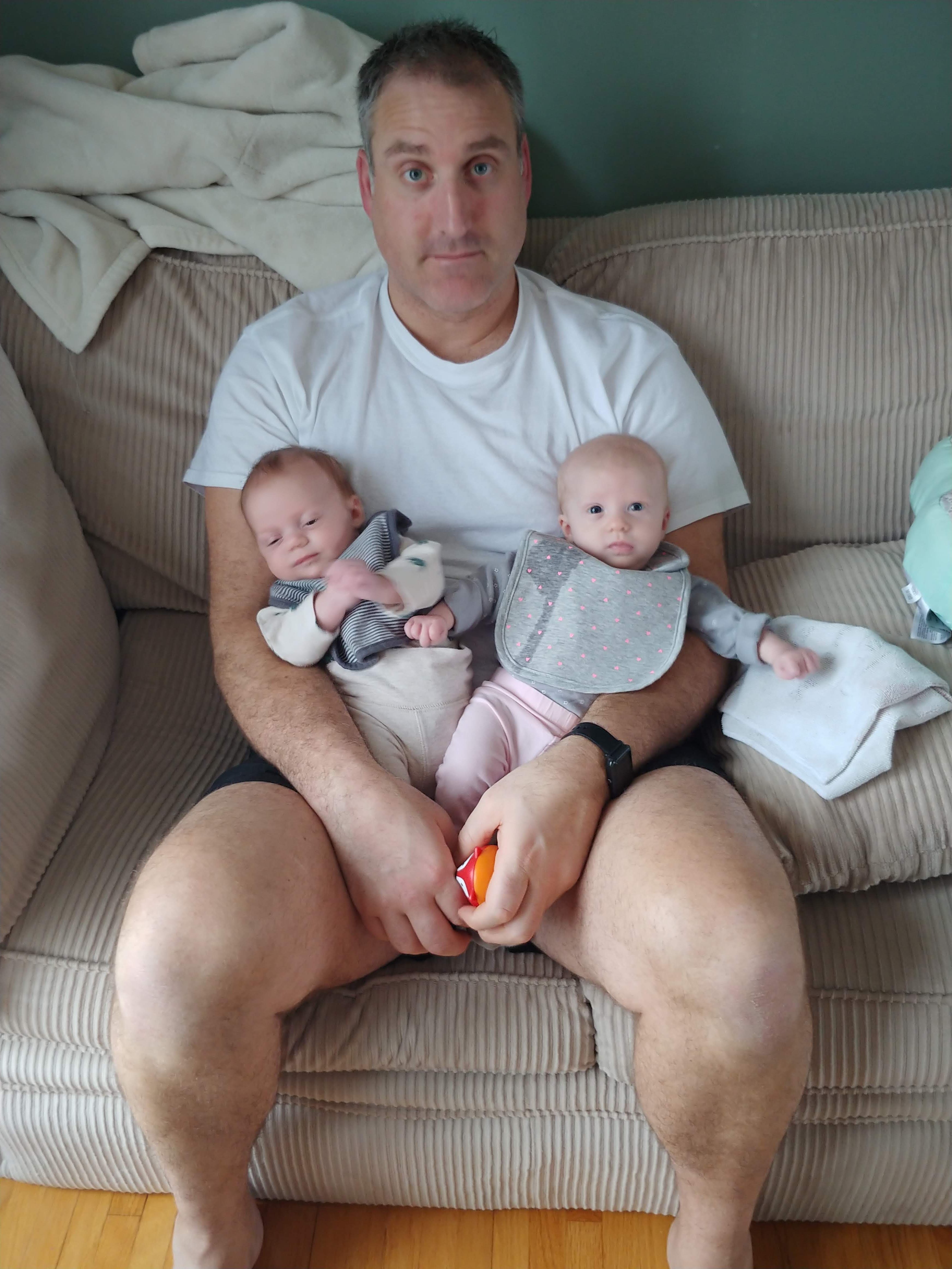 And just when we think we’re getting the hang of it, things change again and we’re scrambling to figure out a new way to do things. Lindy has become more grateful for Jon working from home, and has taken advantage of his presence more in the last week than since the twins were born. How does one person feed one baby while actively trying to calm the other screaming baby (shushing and bouncing baby number 2)…?