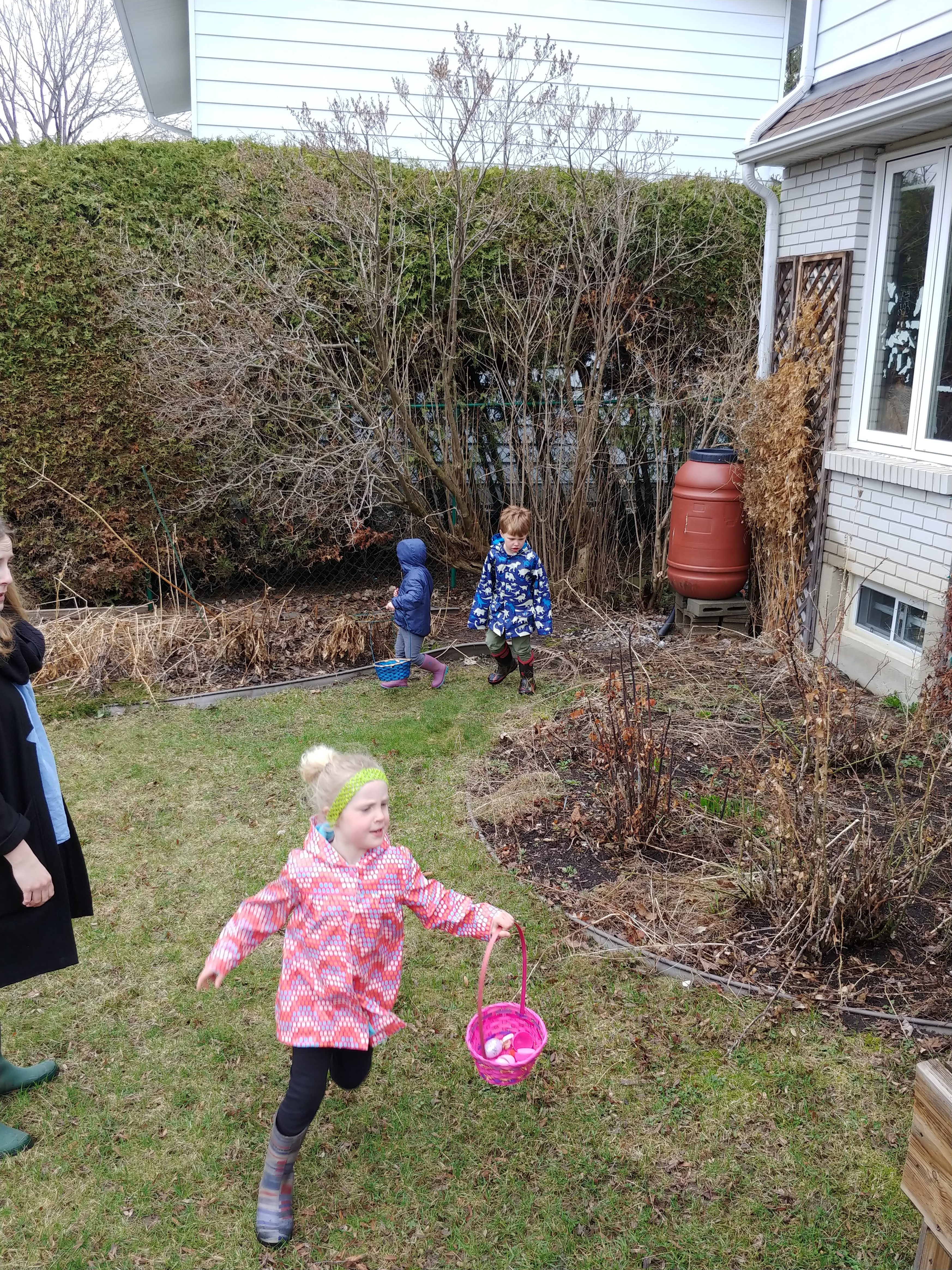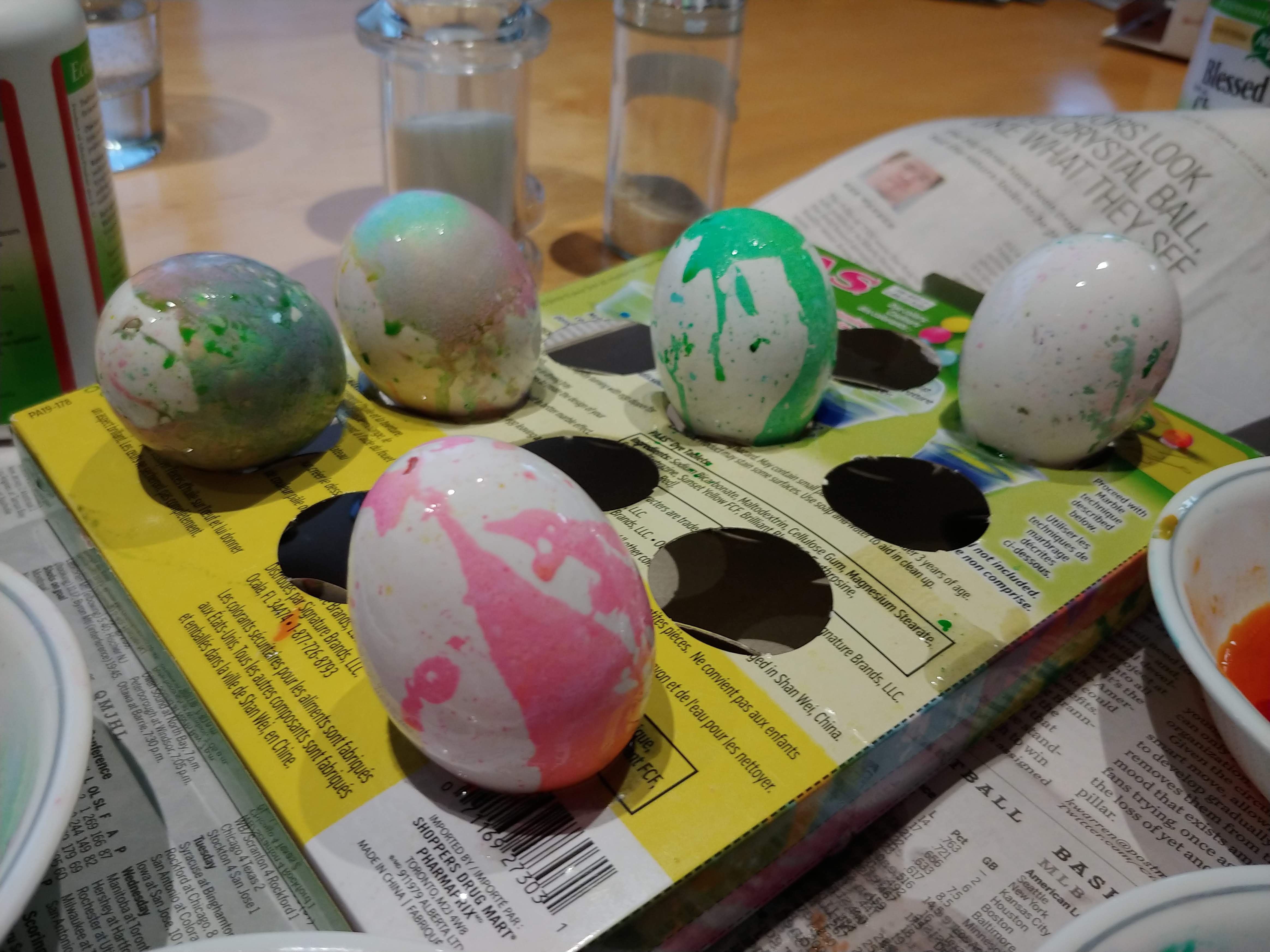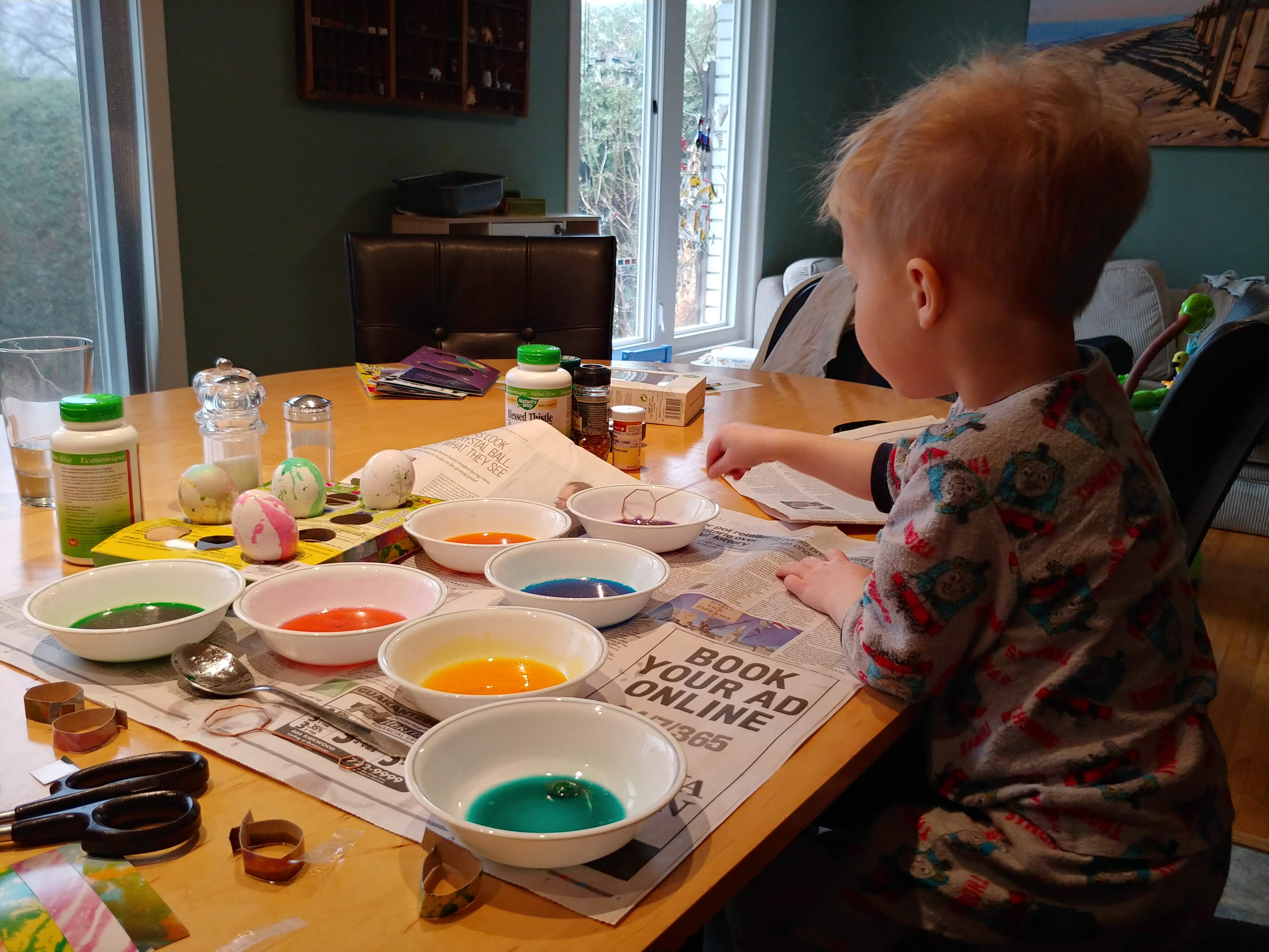 The Easter Bunny was good to the kids, bringing PJs, stickers and chocolate. Isaac even had an outdoor Easter egg hunt with the neighbours! He also had fun decorating Easter eggs. And of course we enjoyed a delicious turkey dinner with the Clark family.