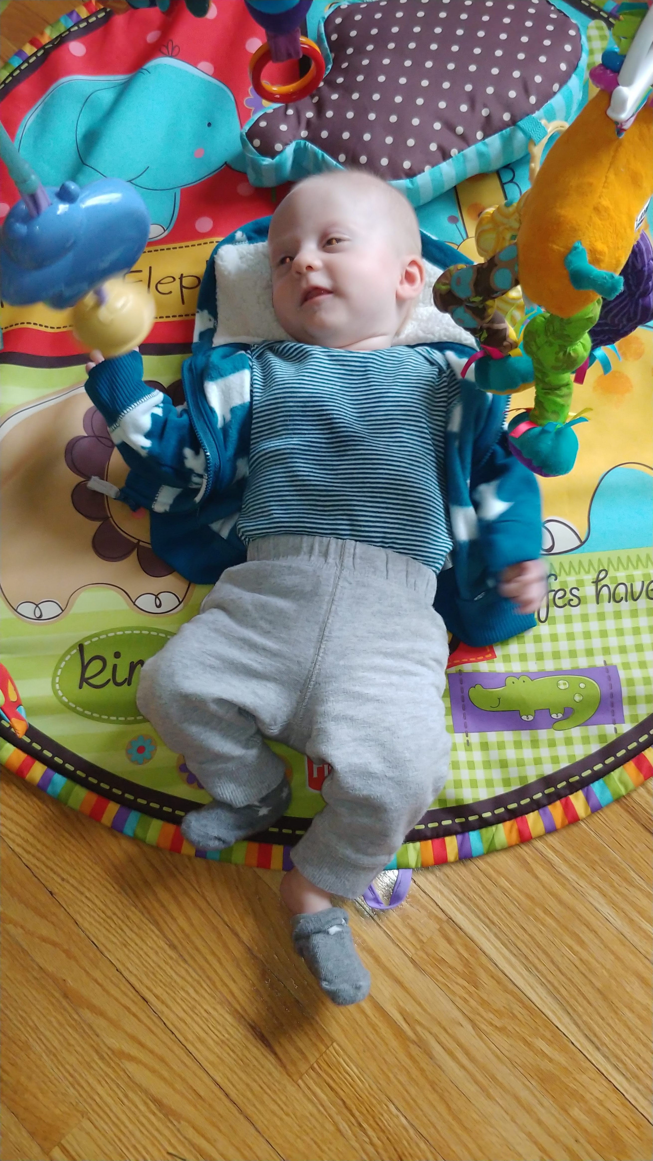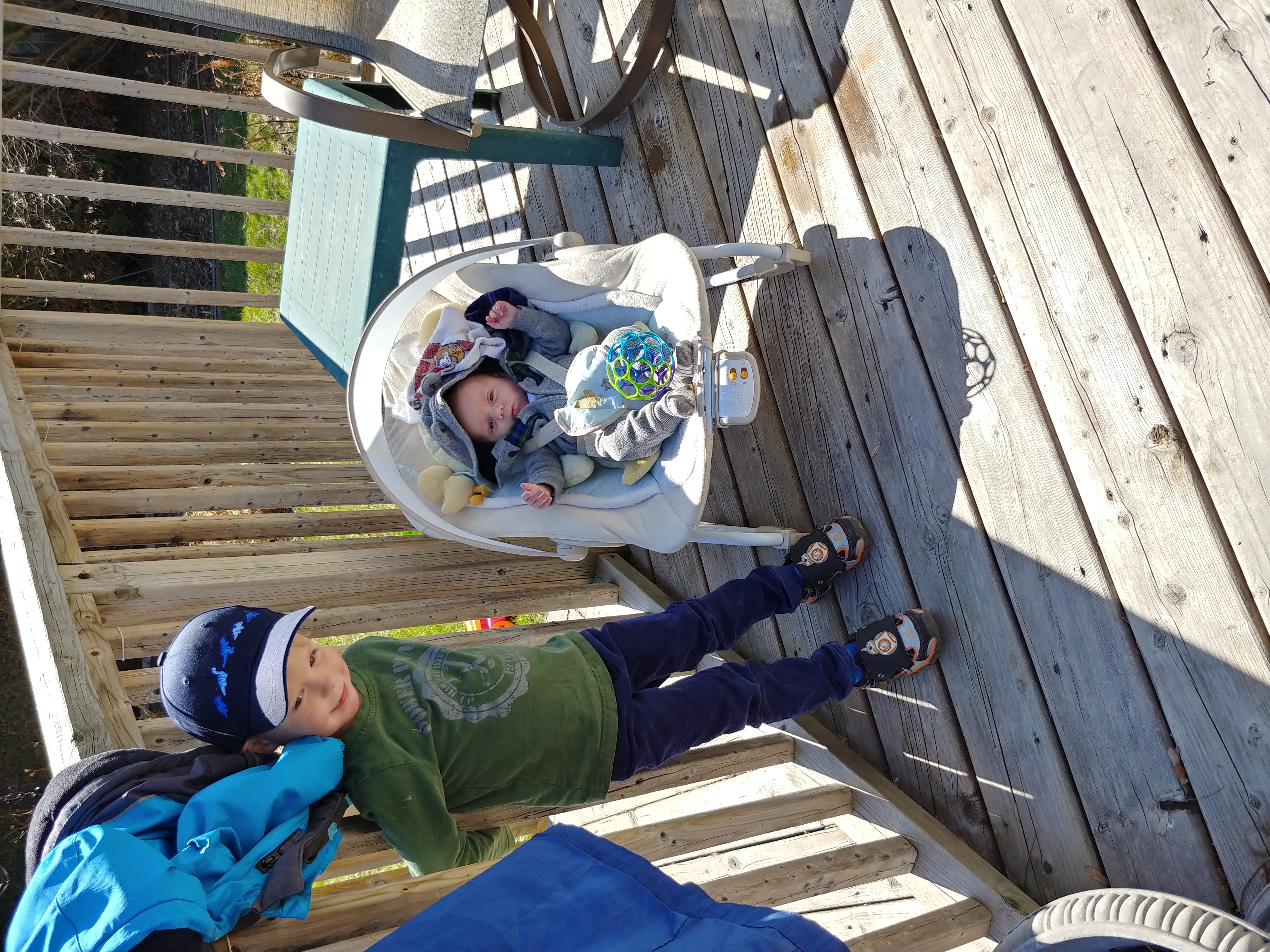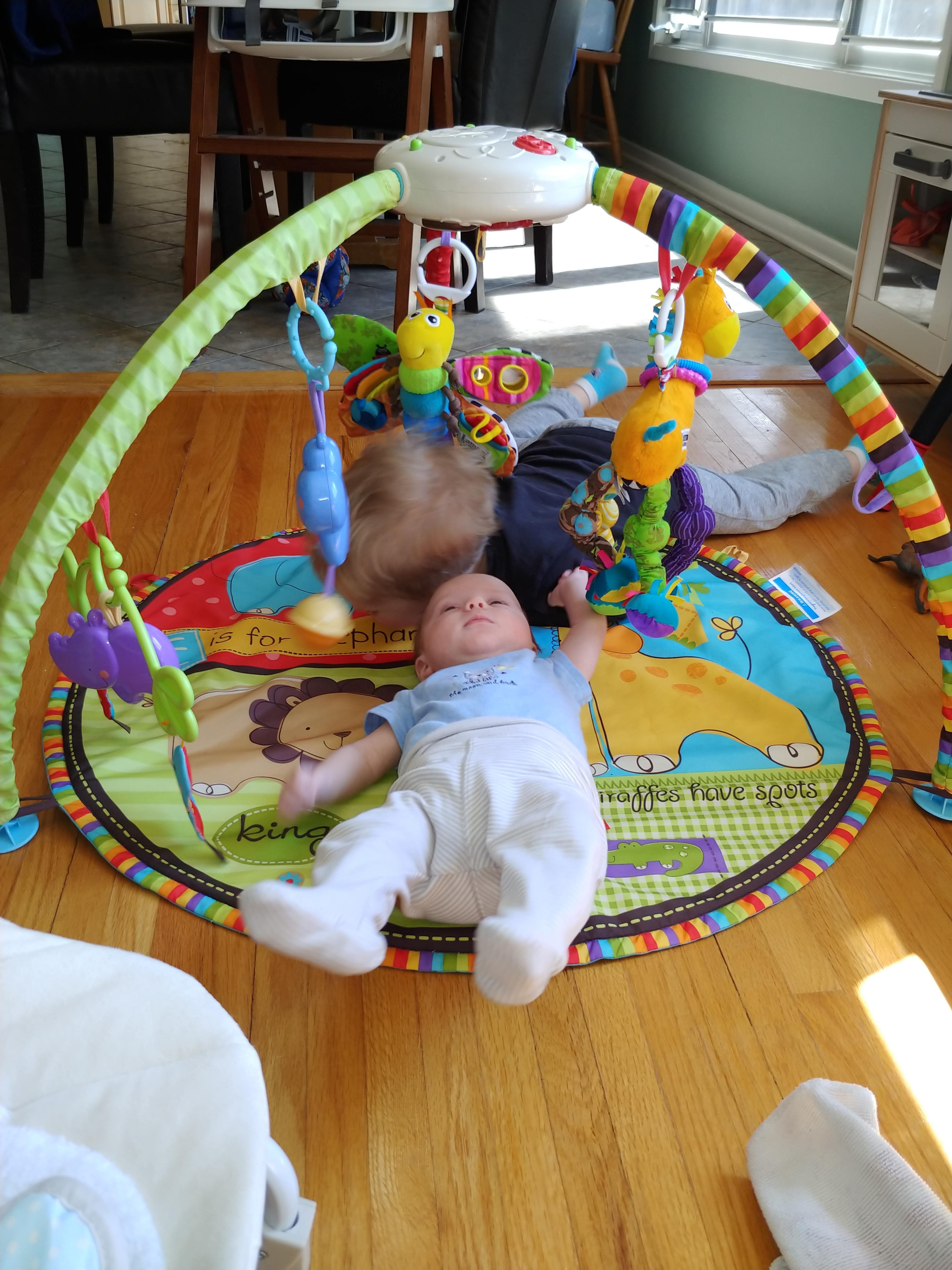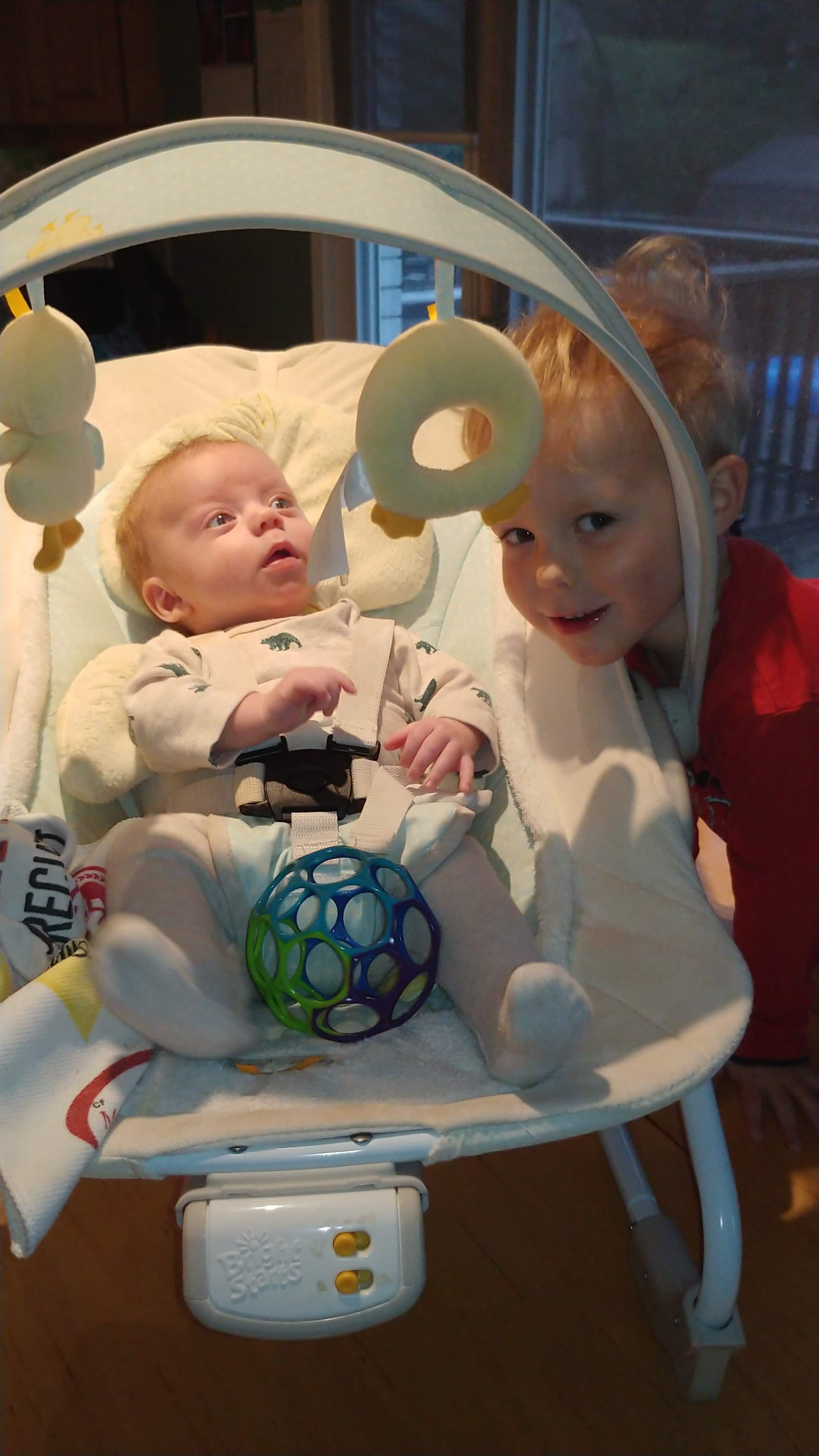 The babies are getting big now, weighing 10 and 11lbs, with Asher turning into quite the chunky monkey! Asher has started grabbing things and is really playful. Cadence is full of smiles. Isaac continues to help out, and wants us all to do everything together.