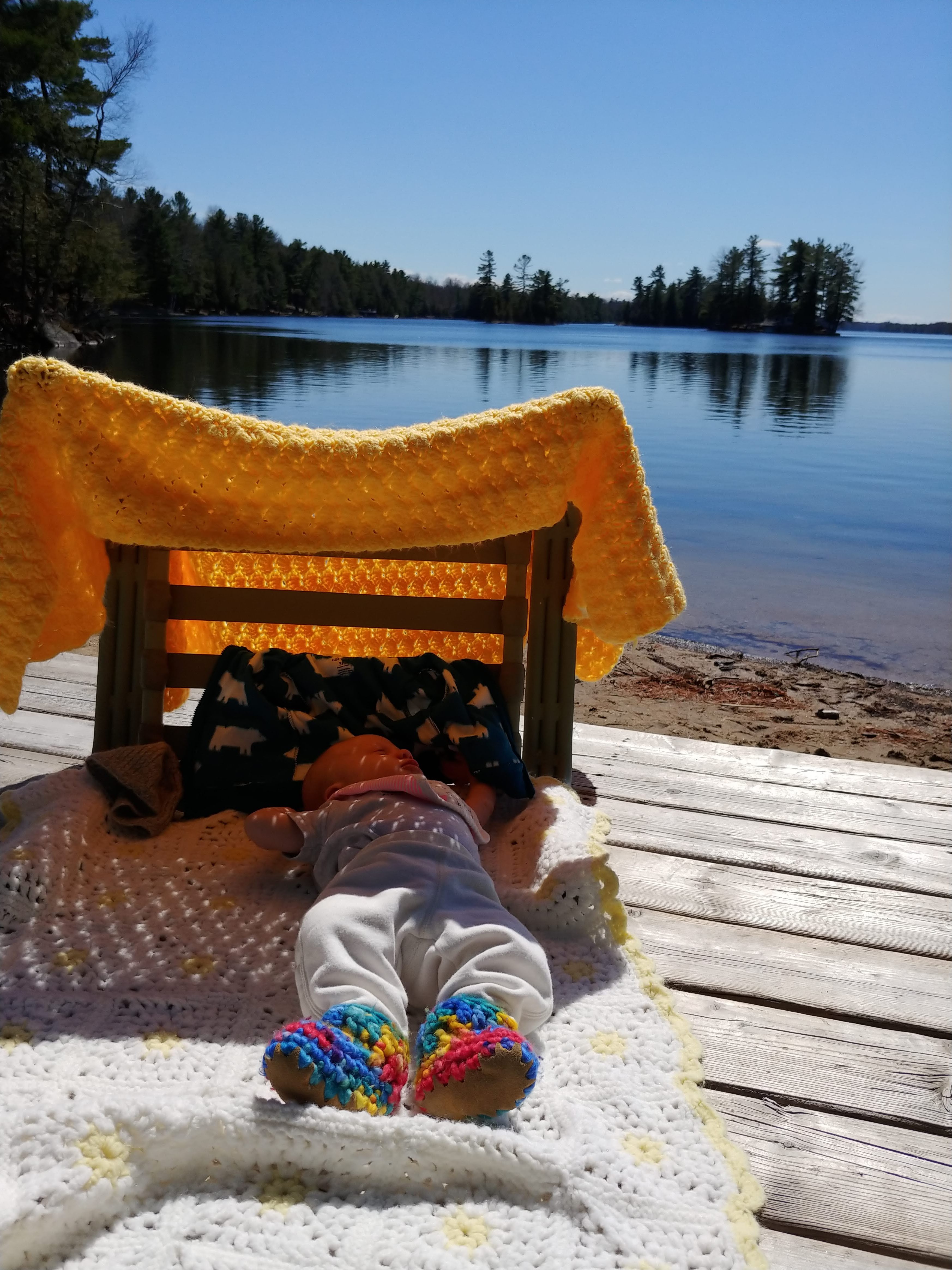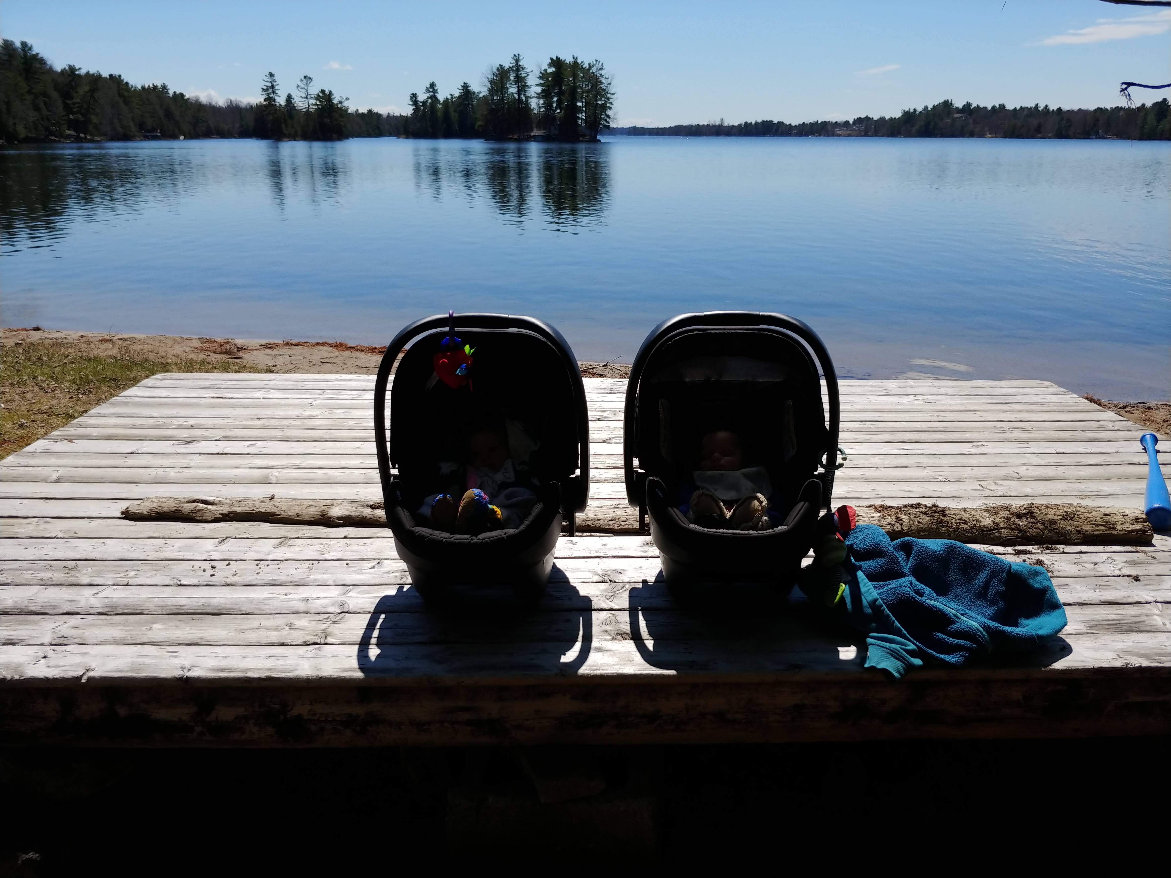 We continue to get lots of help from Grandma and Papa, and sailing friends Glenna and Debbie. While we need to start getting into our own routine, there are definitely days when we wouldn’t survive without their help! Jon was able to get out to help a friend at the cottage show again, and inspired our first cottage visit on Easter weekend.