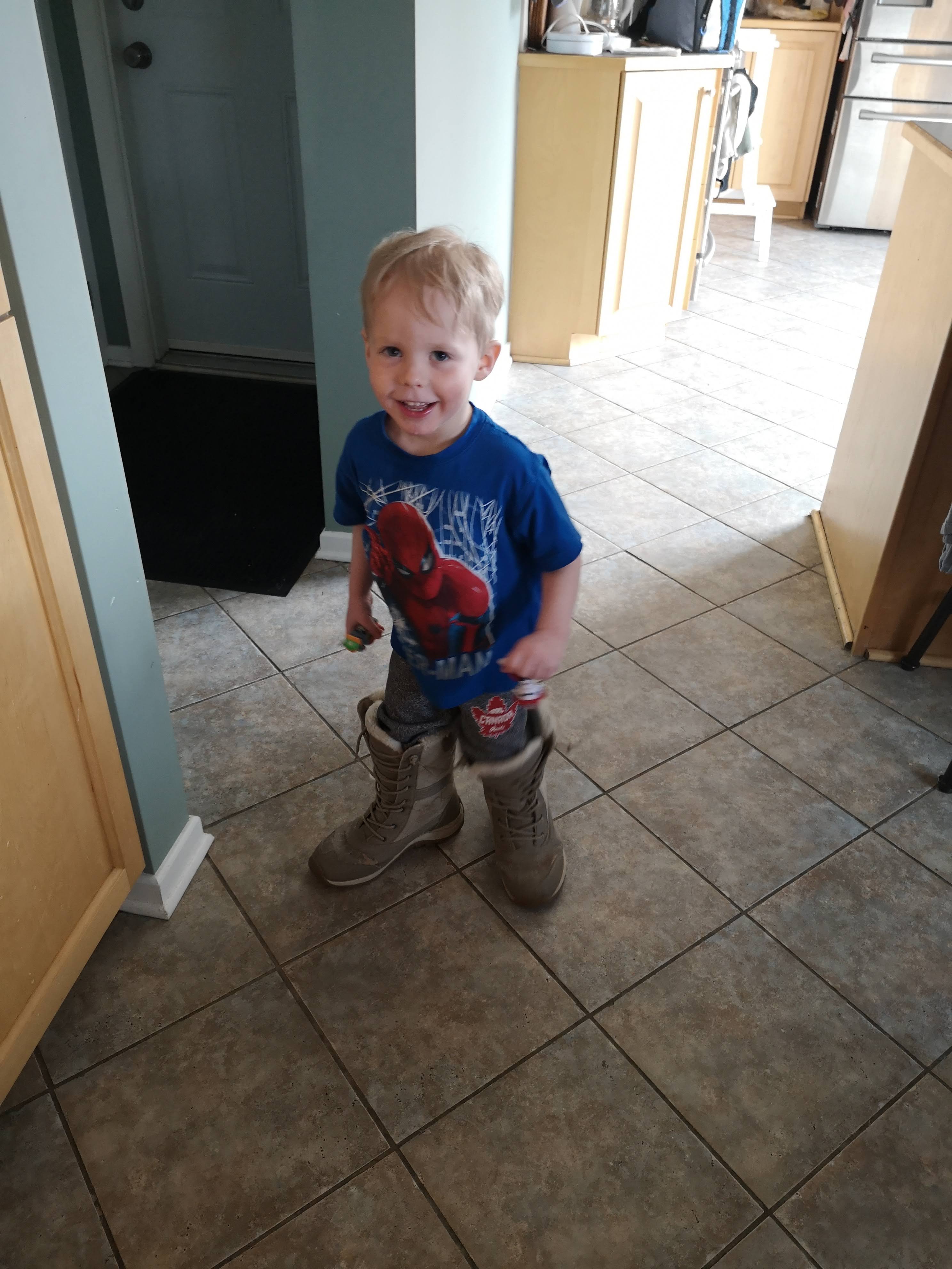 Isaac is really into measurements after reading a dinosaur book that describes their size and what they eat. So now everything is 7 metres tall, or 100lbs. He often asks how big something is, or “how much does that dinosaur eat”? Isaac also wants to know everyone’s name (asks people on the street, or “what’s that boys’ mom’s name?”) His favourite number is five (which is his idea of really big). “Who is five years old? Who else is five years old?” “I want so much, i want 5!” And the latest is that Isaac is “1 huge” or “5 huge”.