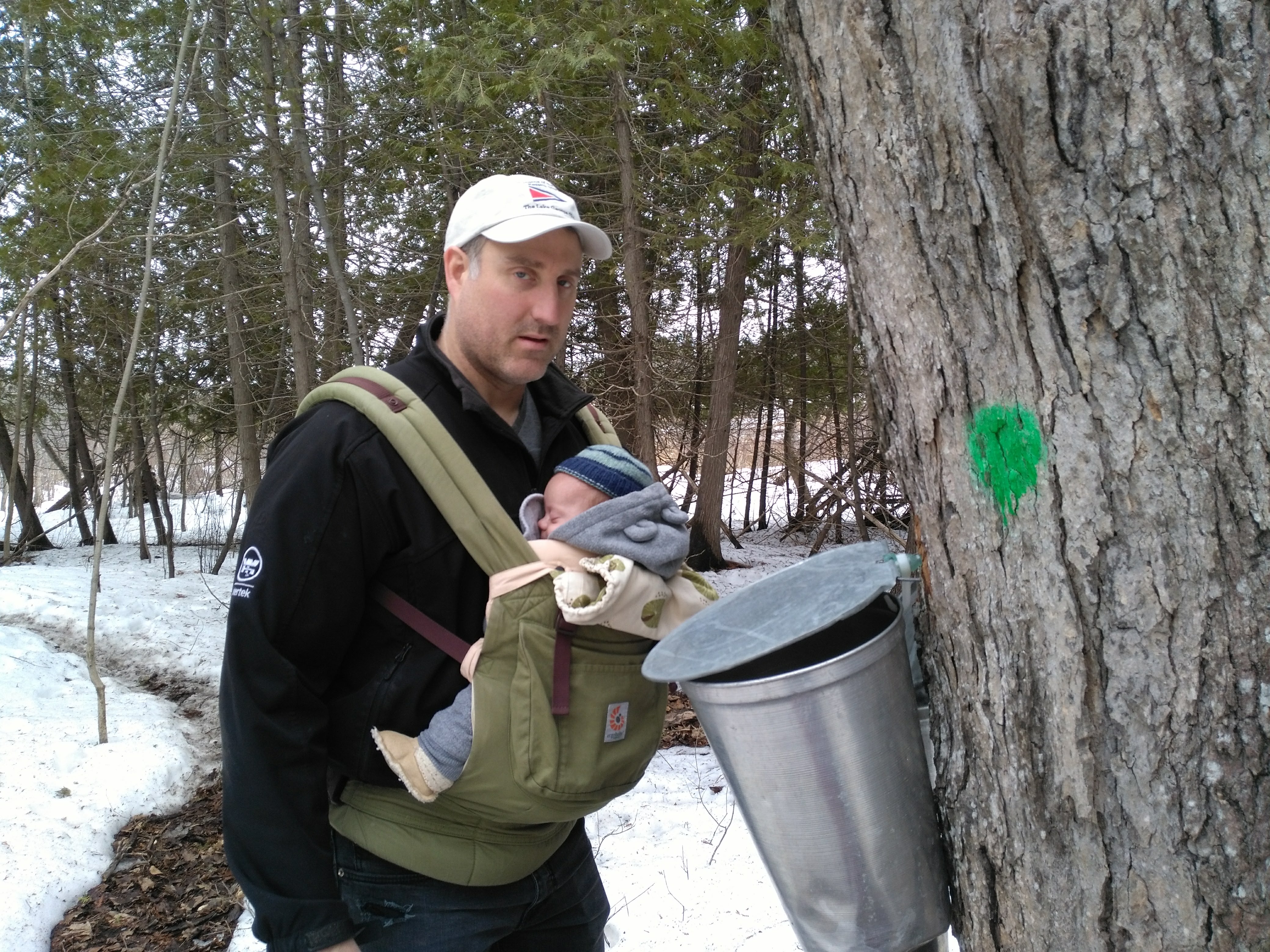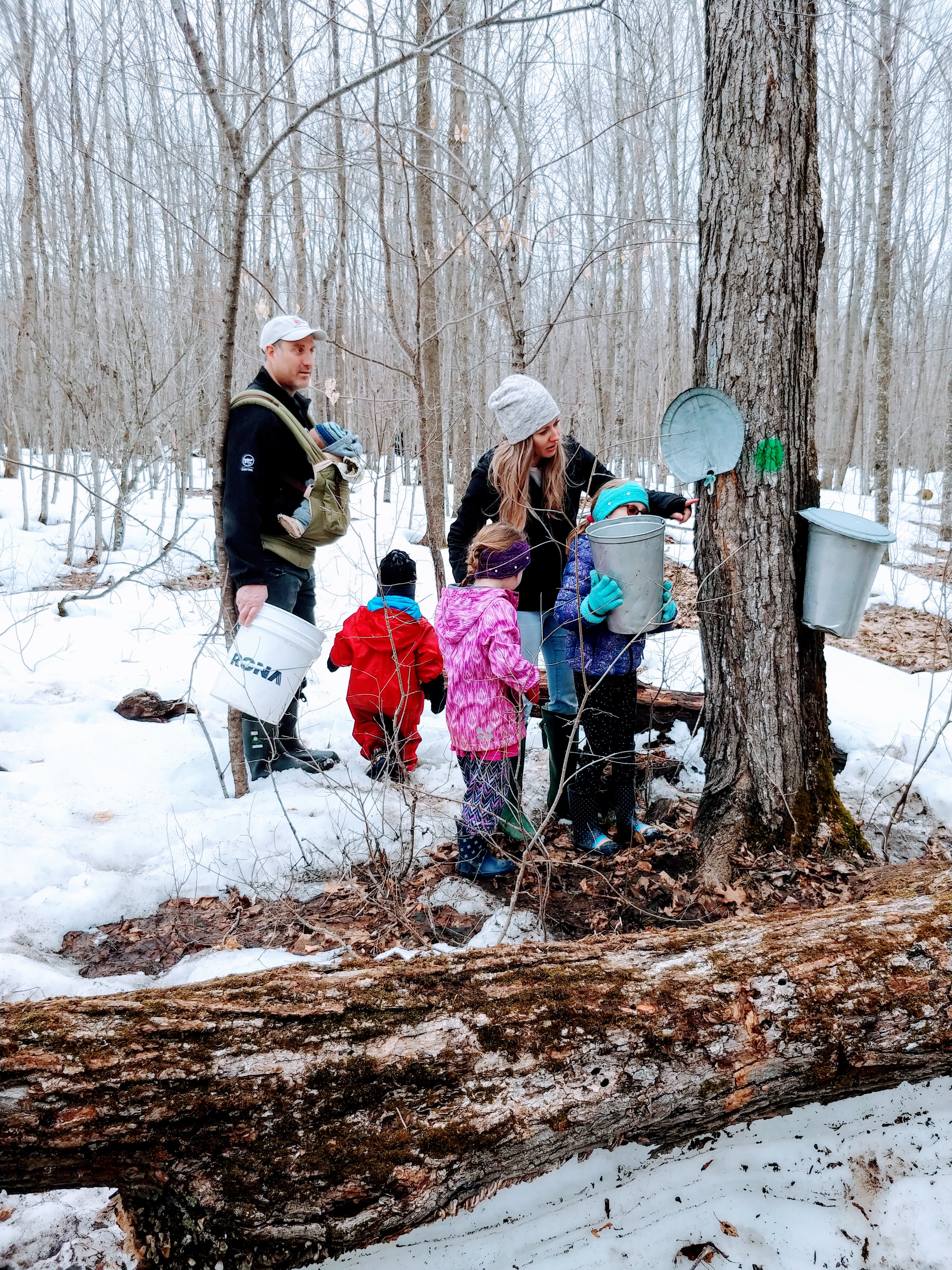 We had a nice visit from Oma and Opa, includng a trip to the sugar bush with Shelley and her girls, and a family dinner with Greg and Charlene and the Czeds to celebrate Lindy’s birthday. The reality of a birthday party with twins means bouncing/shushing babies during dinner, and nursing while blowing out the cake candles. But fun none the less. Lindy also got a dinner out with friends which was much appreciated!