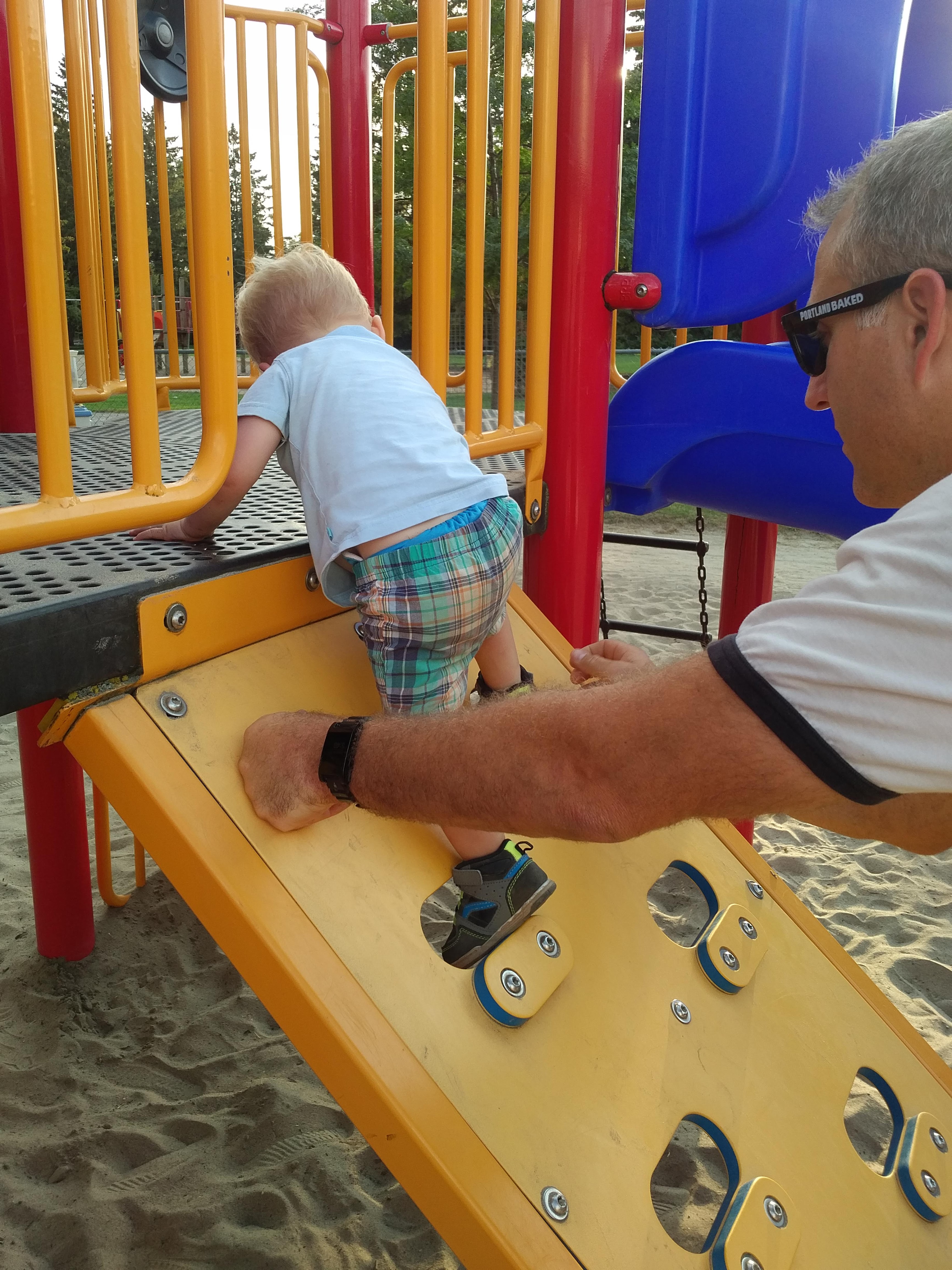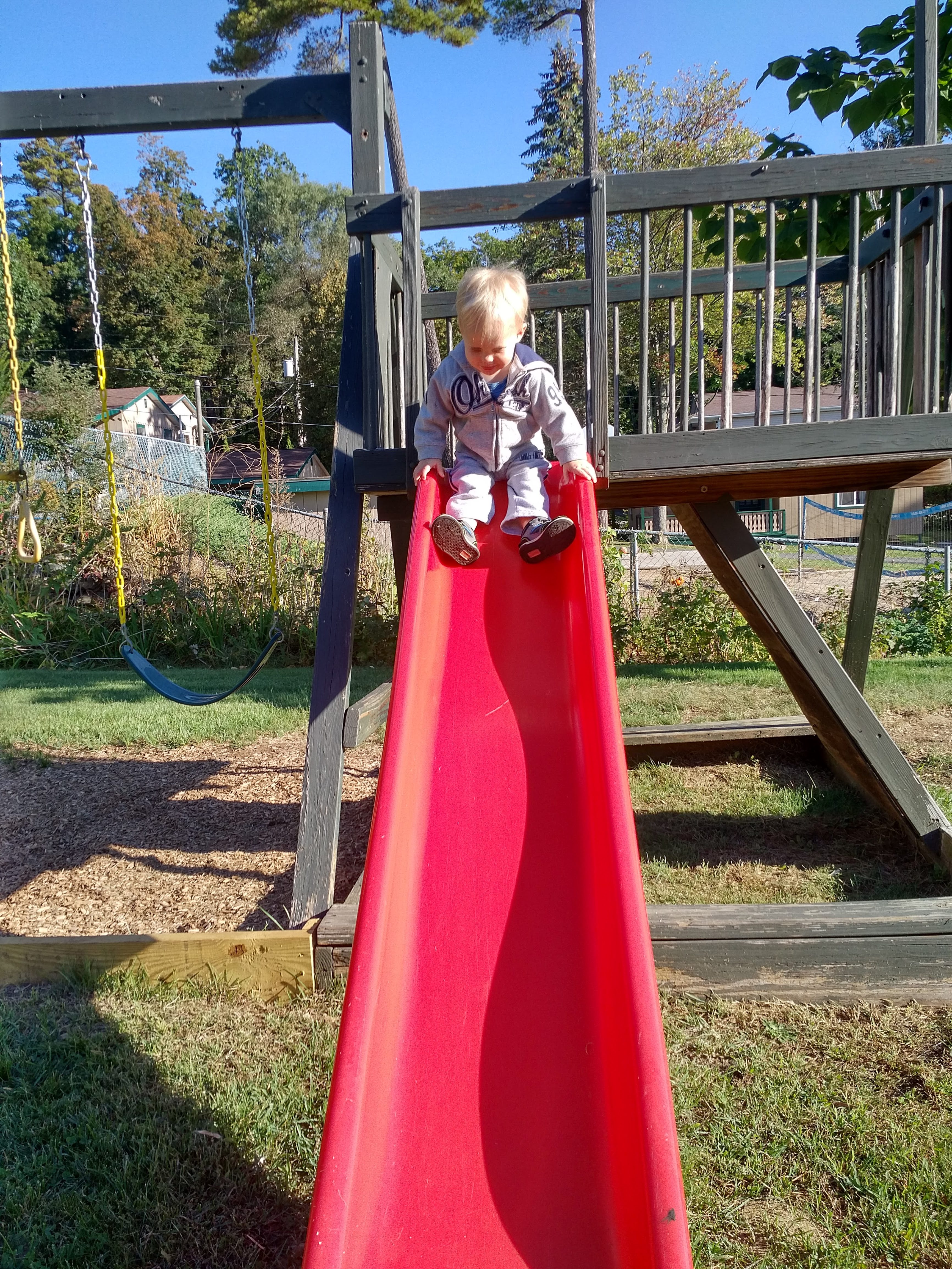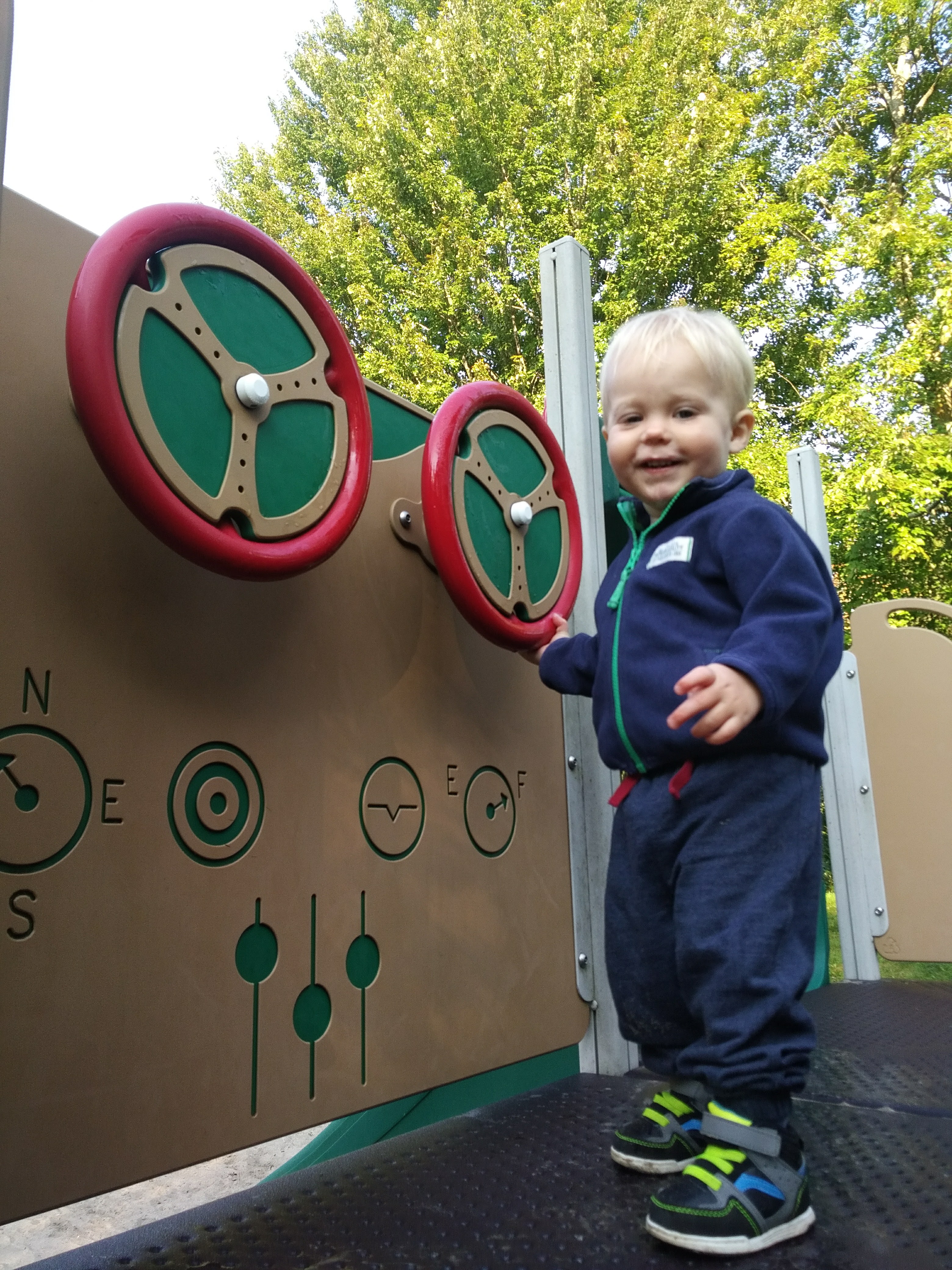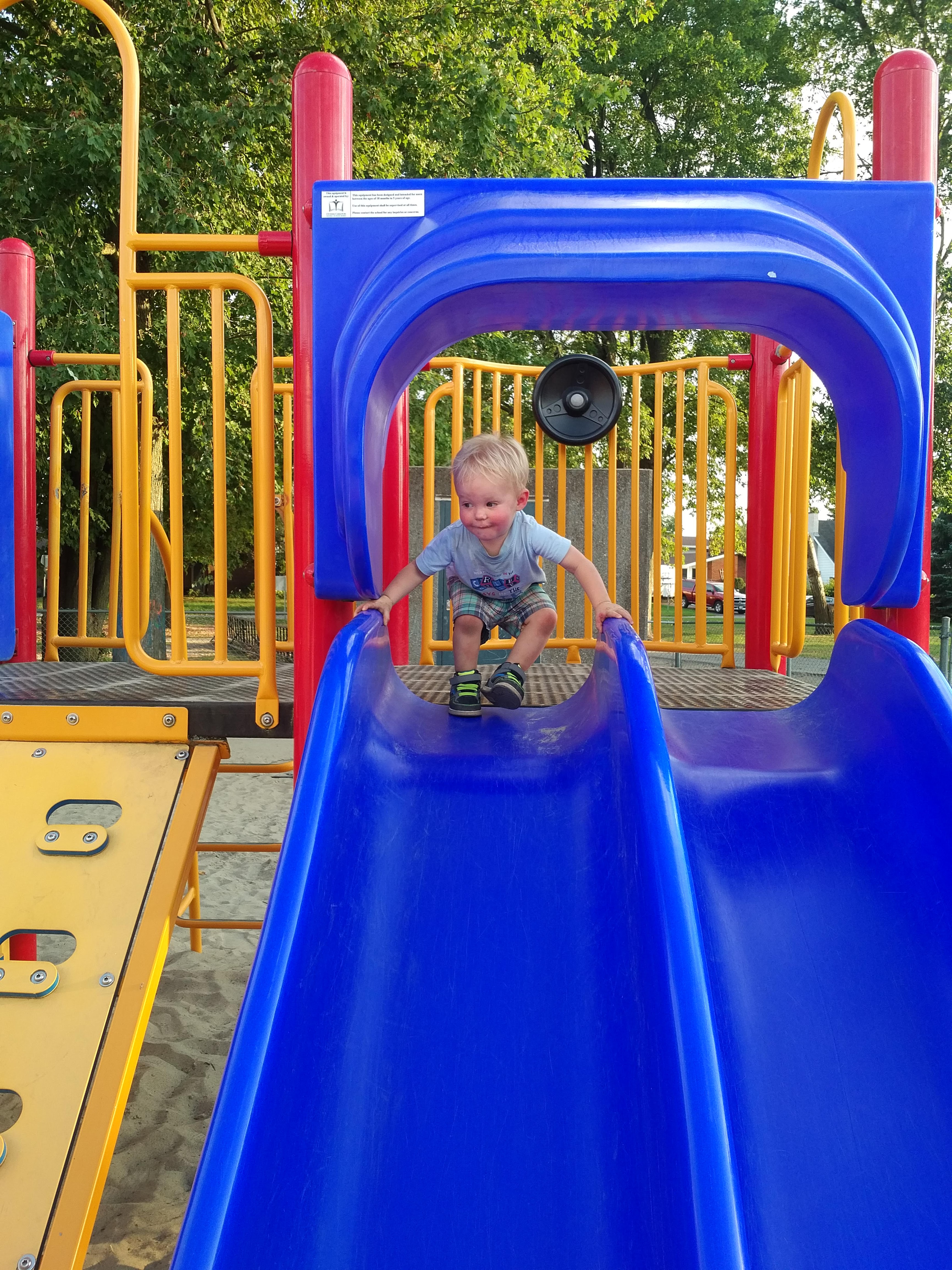 Isaac is constantly talking and continually adds more words to his vocabulary, stringing some together and starting to really make sense. He knows a few colours and numbers. His climbing skills are bringing on new challenges, but make trips to the park more interesting. Did I mention that we go to the park? ALL THE TIME. Luckily there are a few to choose from nearby…and we managed to find some to stop at on our travels.
