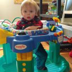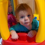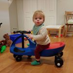 The year mark has brought many changes with the babies, as they are turning into little toddlers. Already in sight are the toddlers’ strong opinions and likely tantrums! Cadence and Asher both walk as their main form of transportation now, but are luckily still in slow motion, though they do tend to go in opposite directions. As their personalities develop, we continue to see more differences between all three kids. Cadence is focused on fine motor skills, trying to eat with utensils, do puzzles, and waving whenever we say hi. Asher has learned to push his ride-on toys up to other furniture to climb up higher, and is constantly surprising us with his escape routes and newest conquests. He never uses the door to get into his new car, and climbs over it instead. Asher plays pretty well independently, while Cadence spends more time pointing to everything over head and wanting to be held up to see. She will sit for long periods to turn pages in books, and will bring us book after book to be read to her. They both hate when doors or gates are closed and they are left behind. They can’t be left out of sight for even a minute, with the latest example when Lindy turned around to find Asher in the bathroom sink! Unfortunately the fighting has started already too – but it is mainly Cadence who keeps walking up to Asher and bonking him on the head or pushing him out of the way!