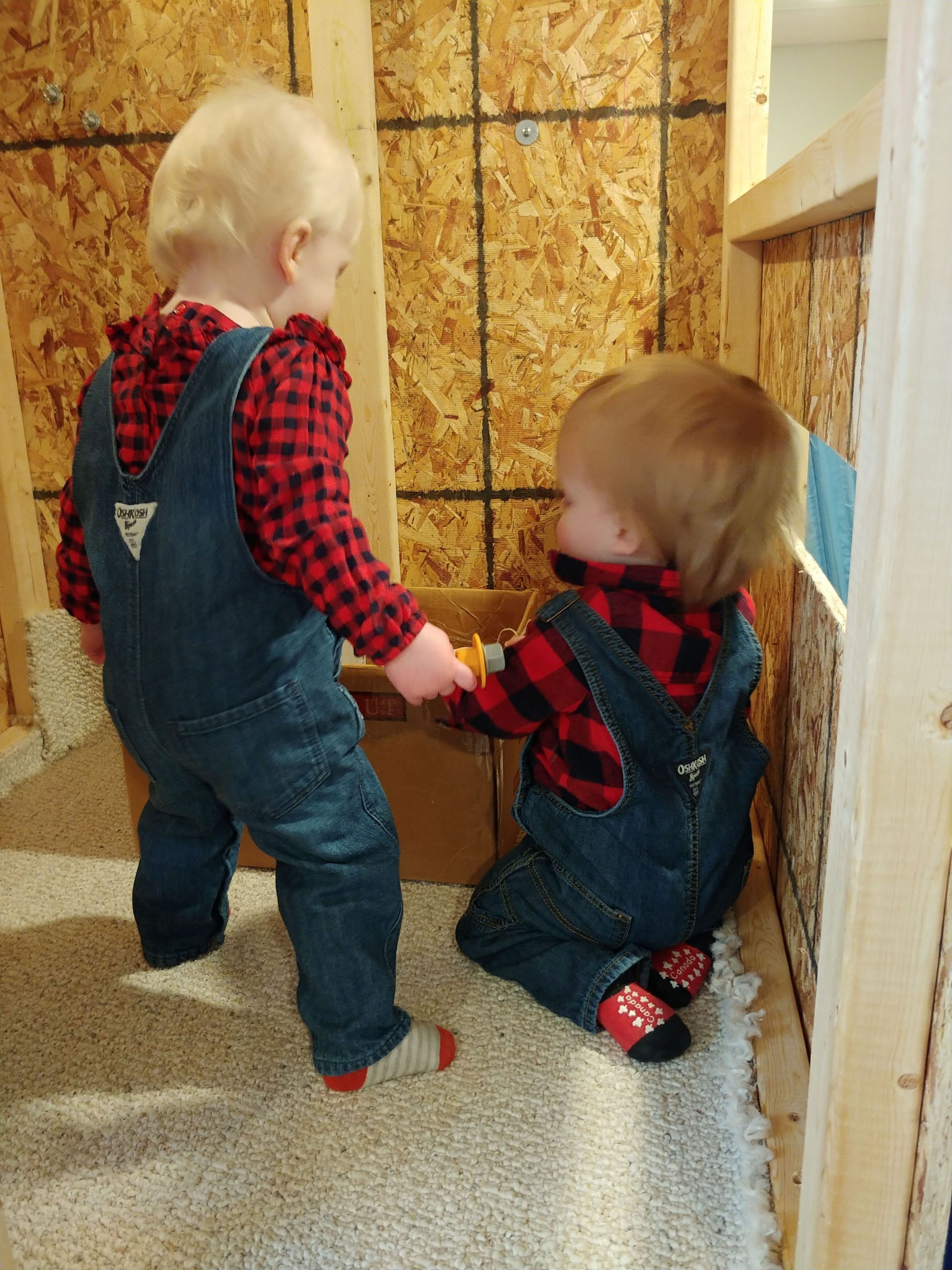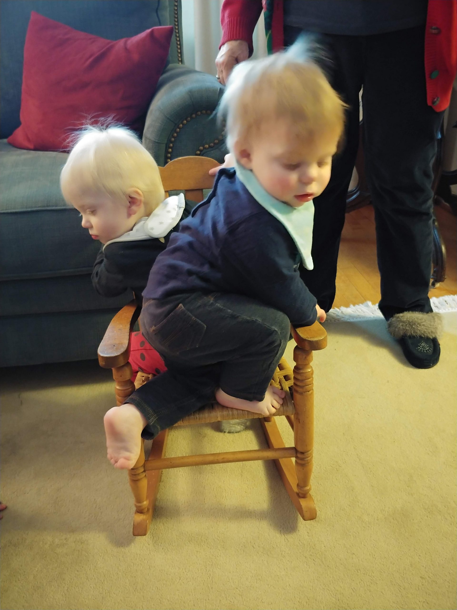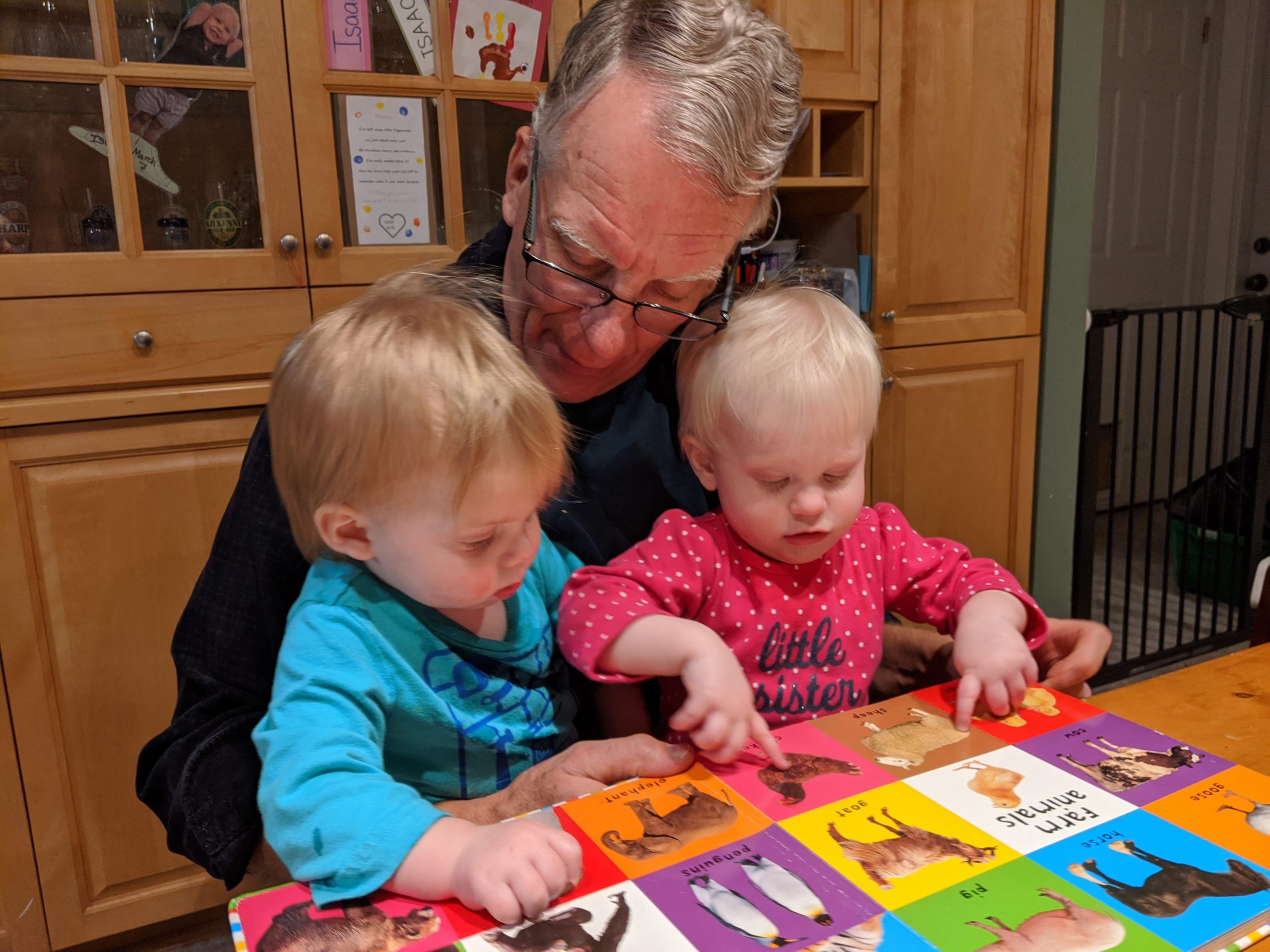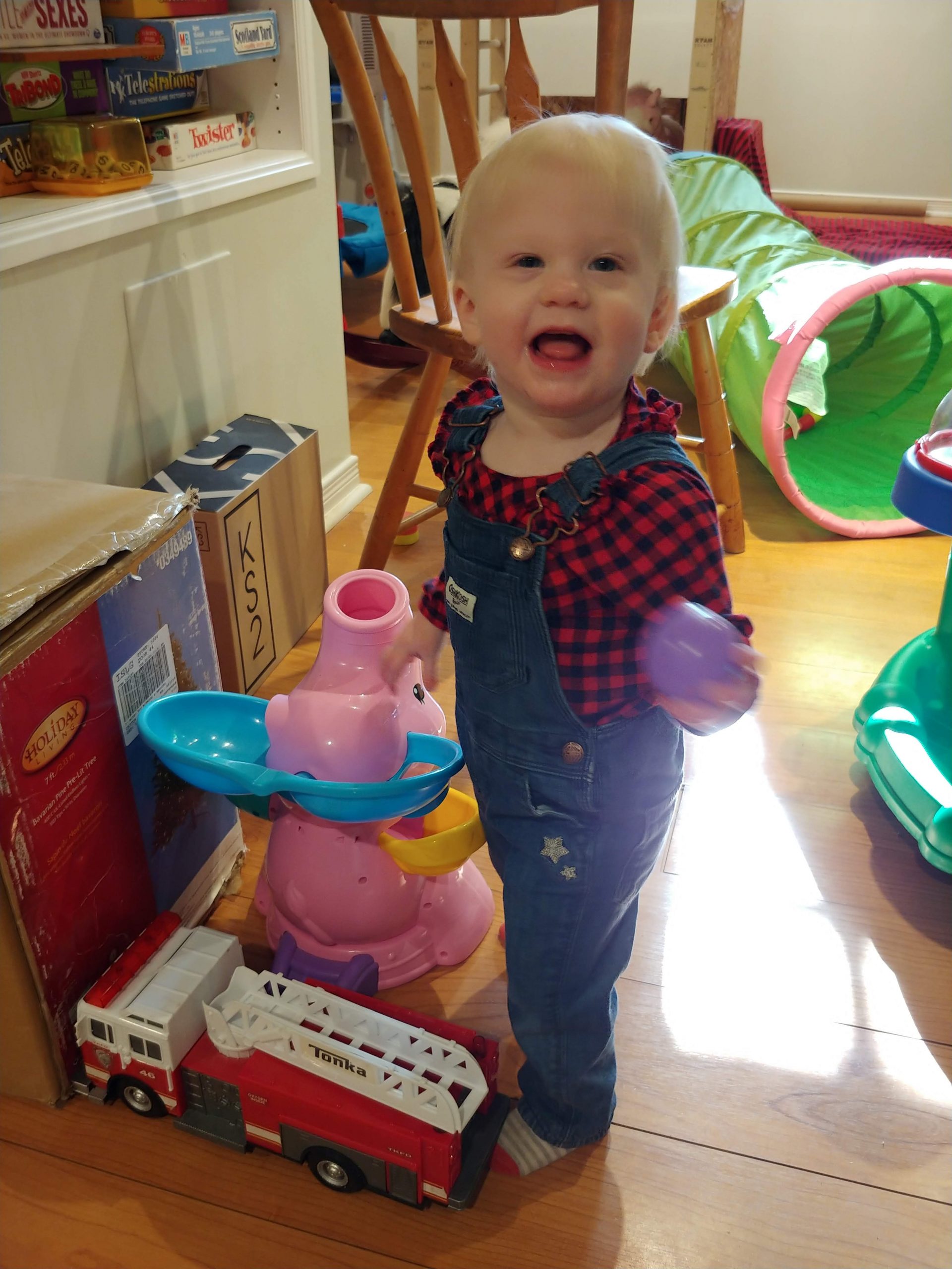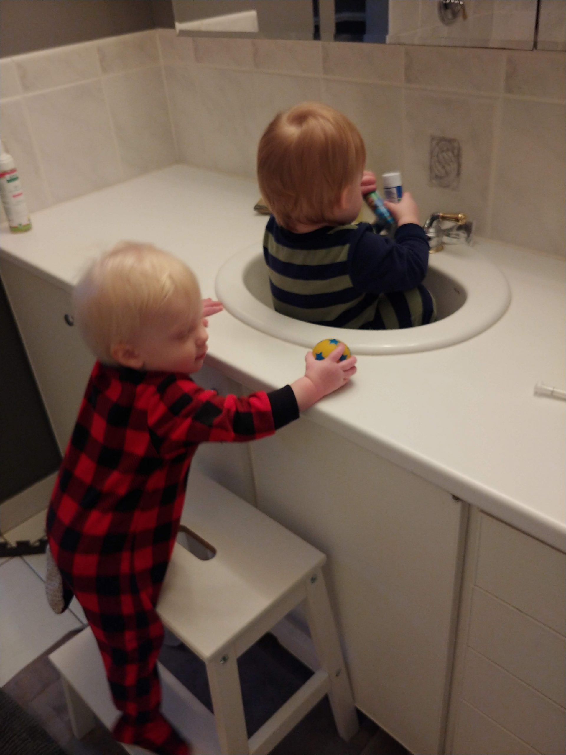 The year mark has brought many changes with the babies, as they are turning into little toddlers. Already in sight are the toddlers’ strong opinions and likely tantrums! Cadence and Asher both walk as their main form of transportation now, but are luckily still in slow motion, though they do tend to go in opposite directions. As their personalities develop, we continue to see more differences between all three kids. Cadence is focused on fine motor skills, trying to eat with utensils, do puzzles, and waving whenever we say hi. Asher has learned to push his ride-on toys up to other furniture to climb up higher, and is constantly surprising us with his escape routes and newest conquests. He never uses the door to get into his new car, and climbs over it instead. Asher plays pretty well independently, while Cadence spends more time pointing to everything over head and wanting to be held up to see. She will sit for long periods to turn pages in books, and will bring us book after book to be read to her. They both hate when doors or gates are closed and they are left behind. They can’t be left out of sight for even a minute, with the latest example when Lindy turned around to find Asher in the bathroom sink! Unfortunately the fighting has started already too – but it is mainly Cadence who keeps walking up to Asher and bonking him on the head or pushing him out of the way!