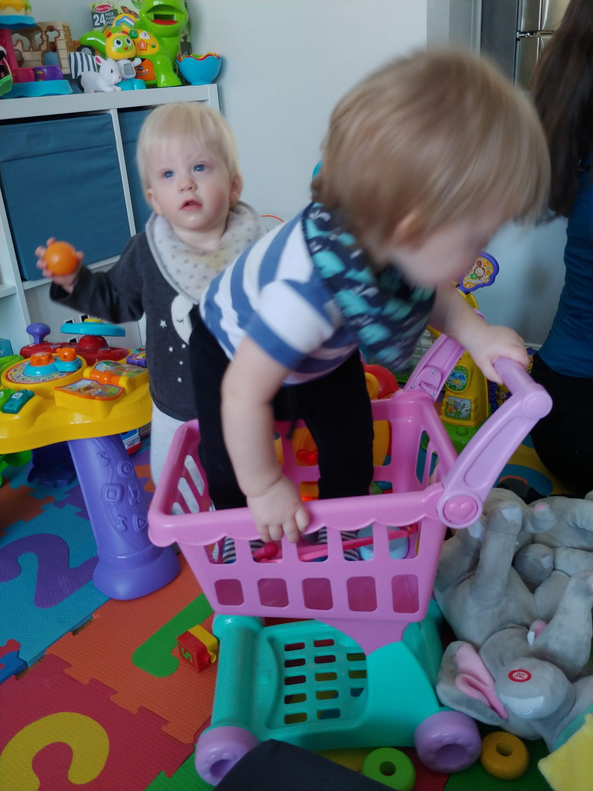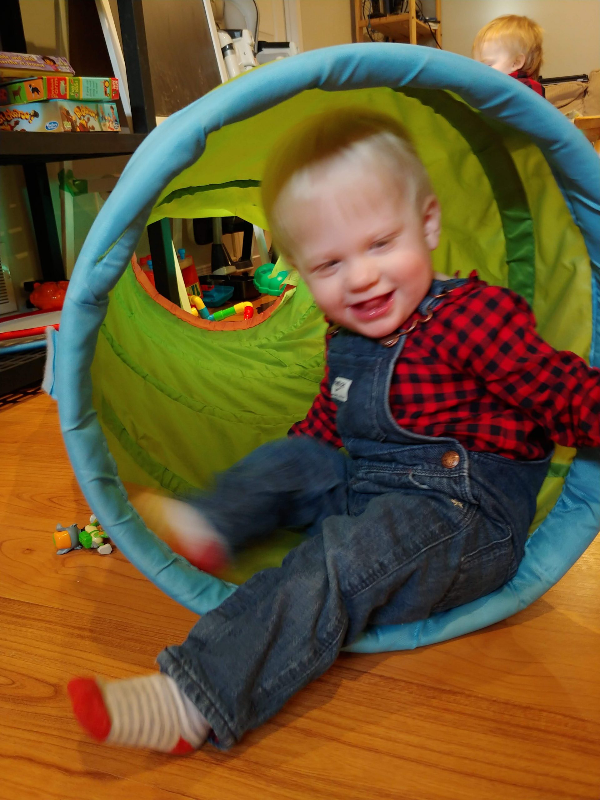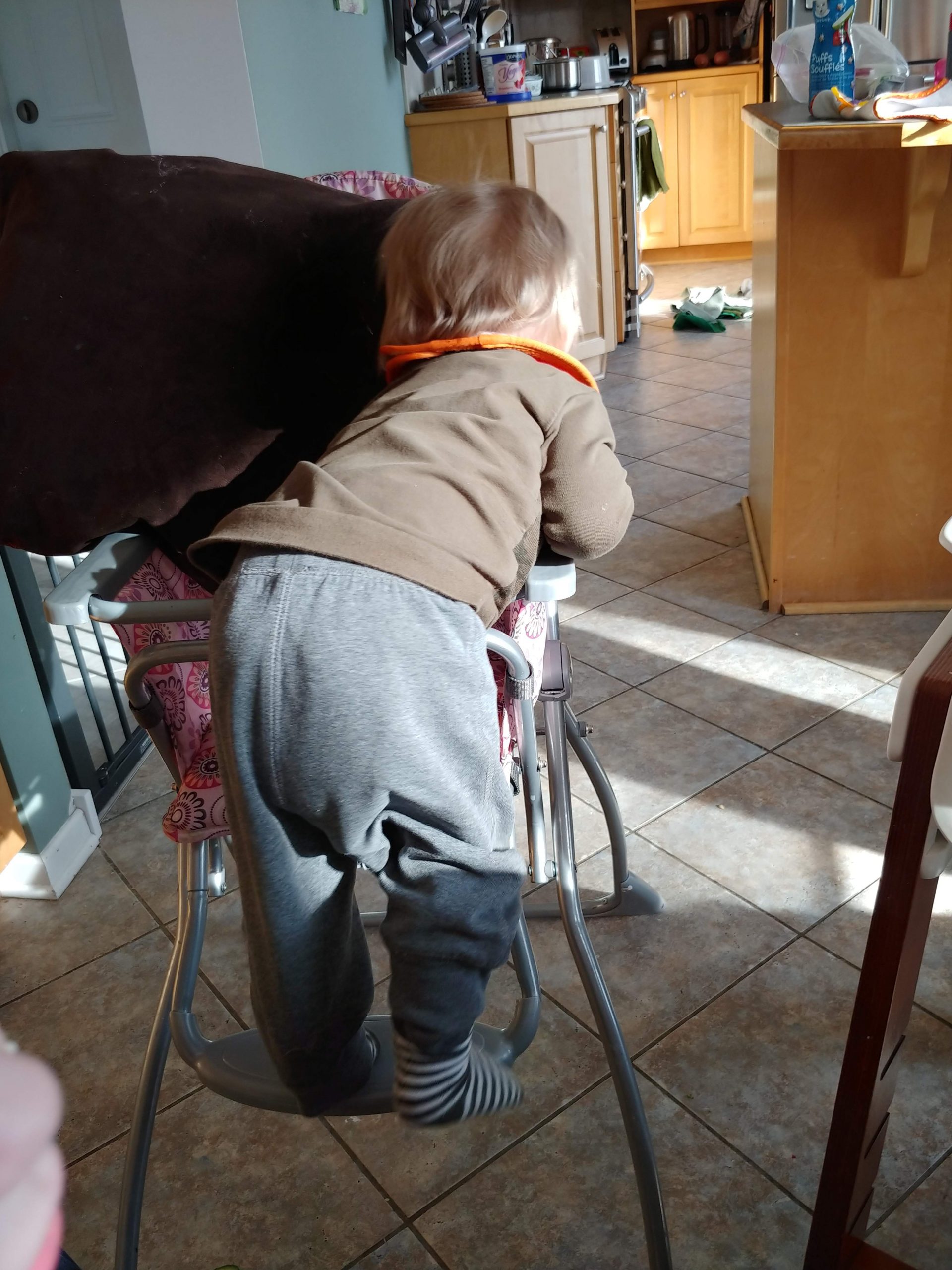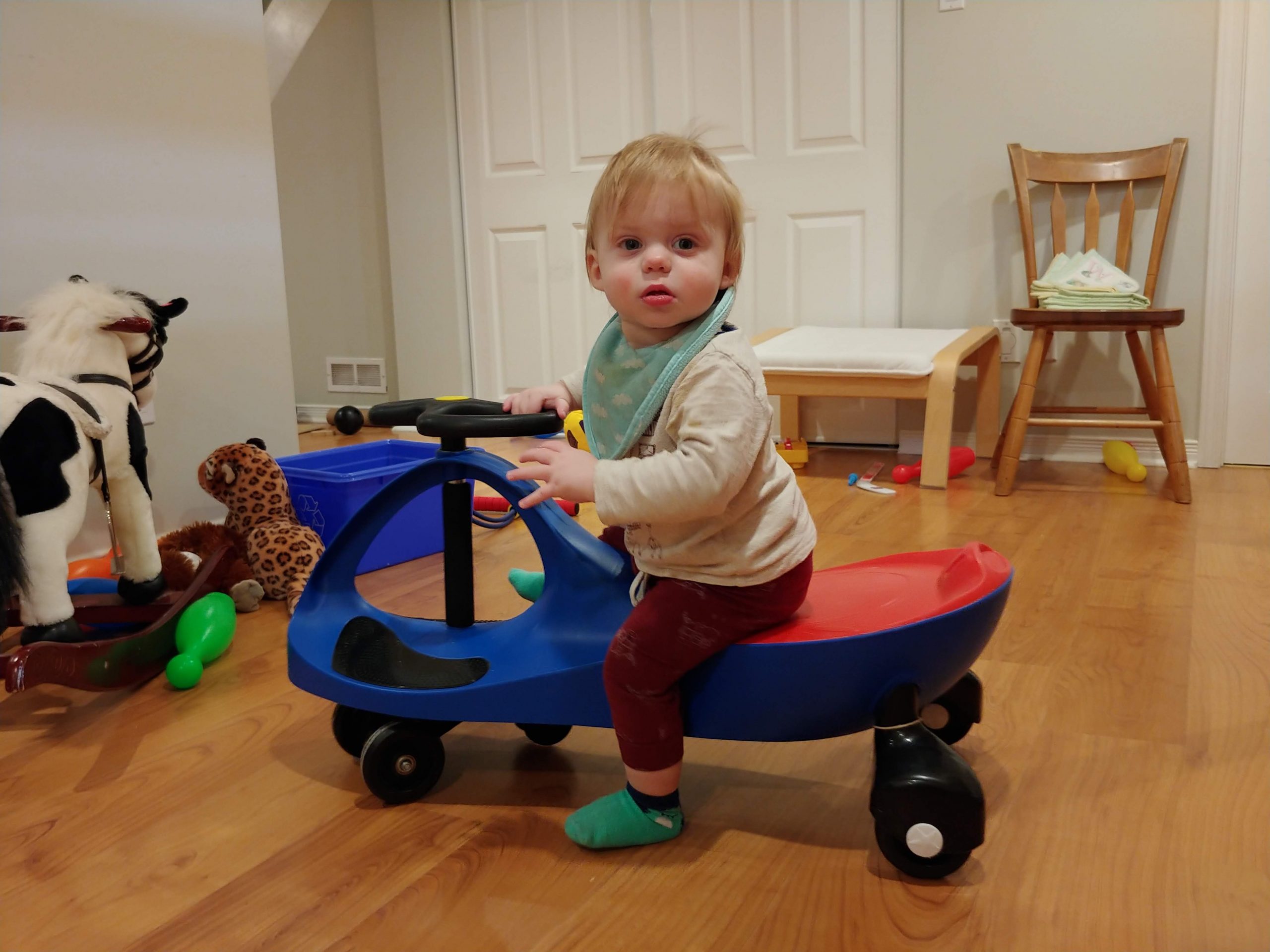 The year mark has brought many changes with the babies, as they are turning into little toddlers. Already in sight are the toddlers’ strong opinions and likely tantrums! Cadence and Asher both walk as their main form of transportation now, but are luckily still in slow motion, though they do tend to go in opposite directions. As their personalities develop, we continue to see more differences between all three kids. Cadence is focused on fine motor skills, trying to eat with utensils, do puzzles, and waving whenever we say hi. Asher has learned to push his ride-on toys up to other furniture to climb up higher, and is constantly surprising us with his escape routes and newest conquests. He never uses the door to get into his new car, and climbs over it instead. Asher plays pretty well independently, while Cadence spends more time pointing to everything over head and wanting to be held up to see. She will sit for long periods to turn pages in books, and will bring us book after book to be read to her. They both hate when doors or gates are closed and they are left behind. They can’t be left out of sight for even a minute, with the latest example when Lindy turned around to find Asher in the bathroom sink! Unfortunately the fighting has started already too – but it is mainly Cadence who keeps walking up to Asher and bonking him on the head or pushing him out of the way!