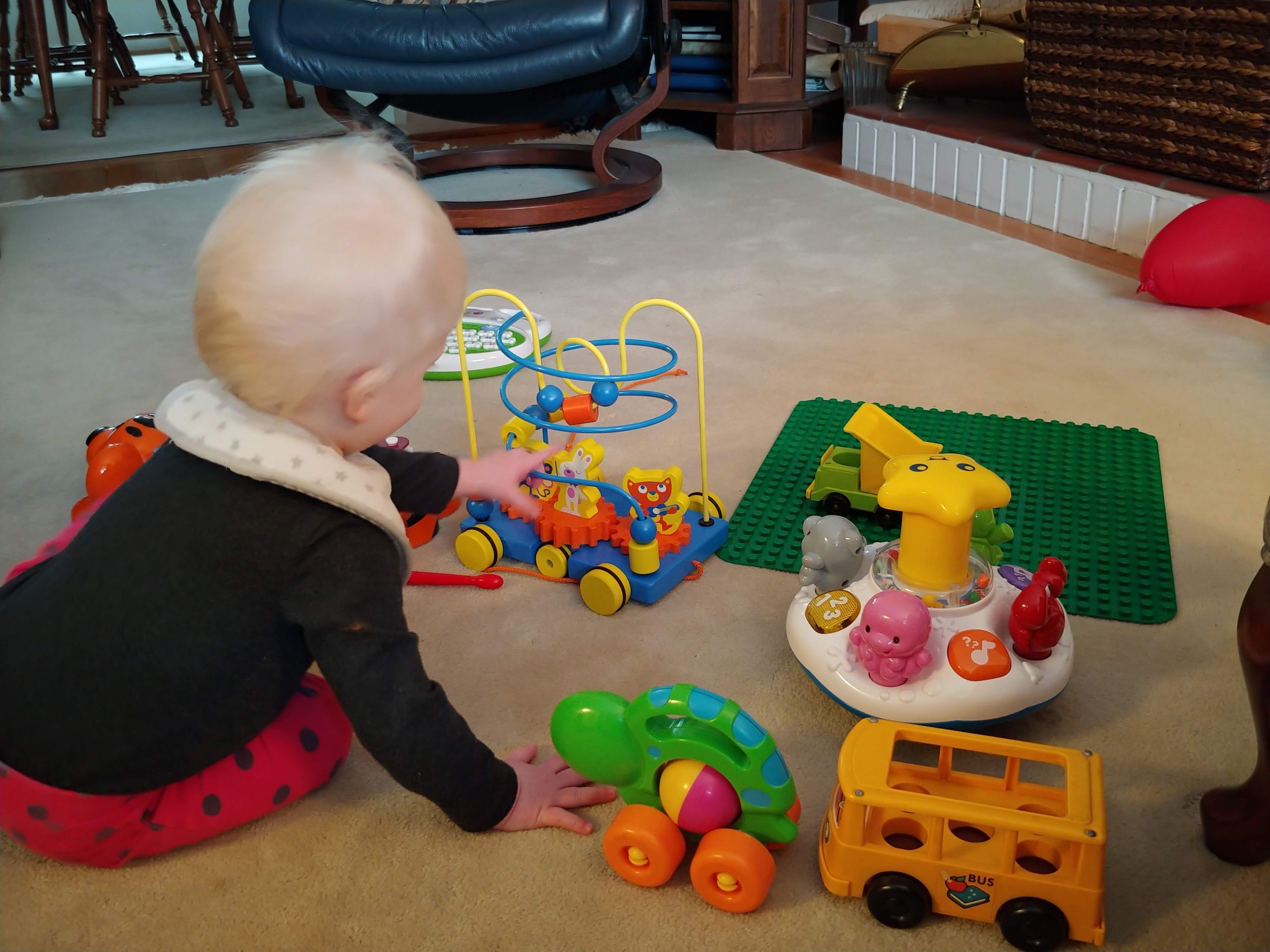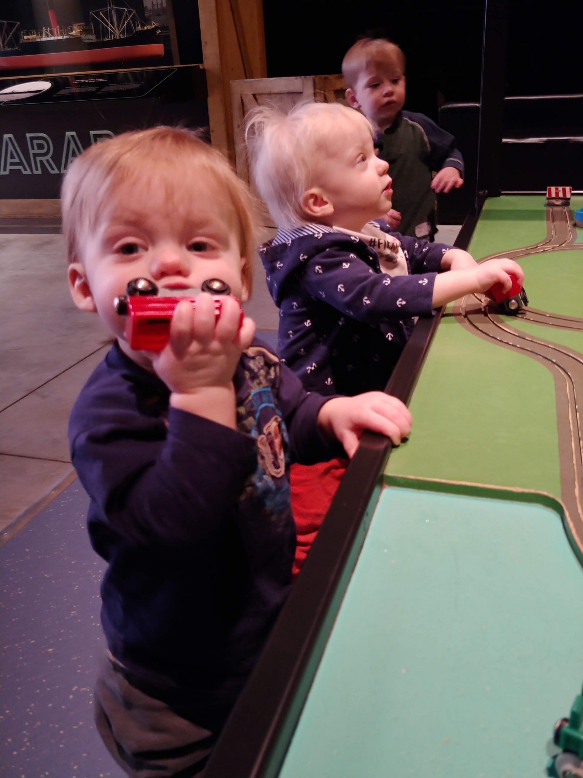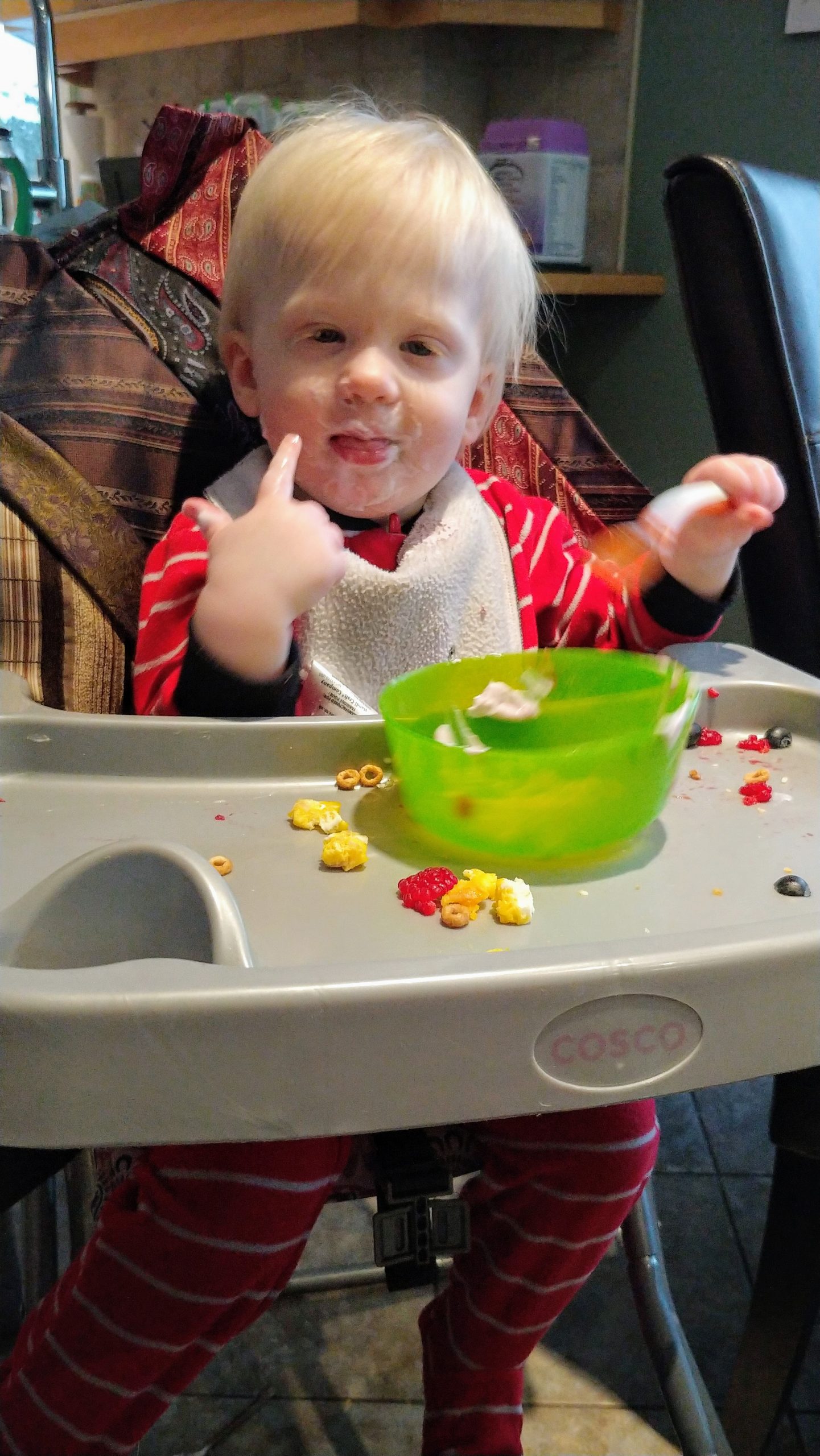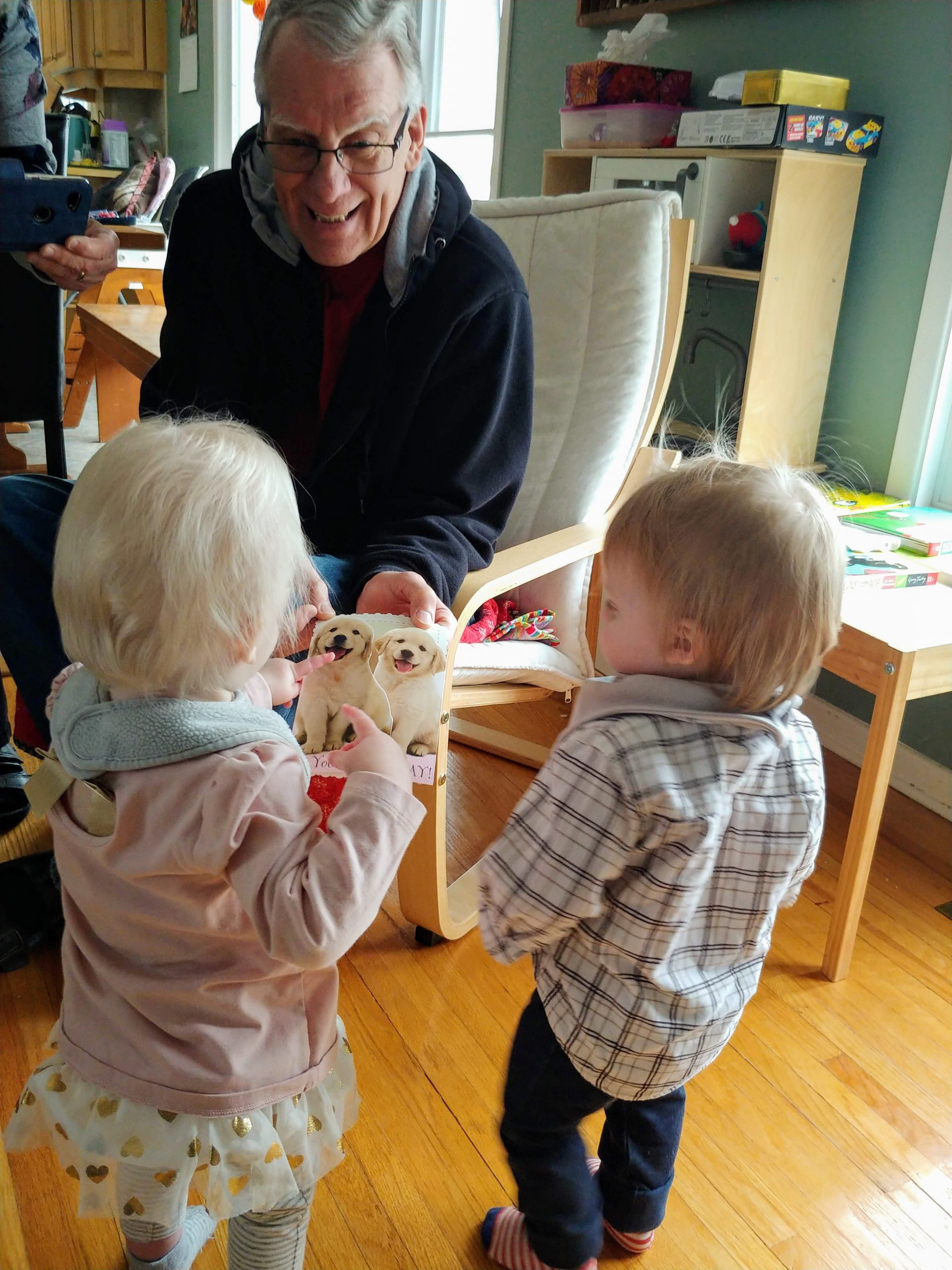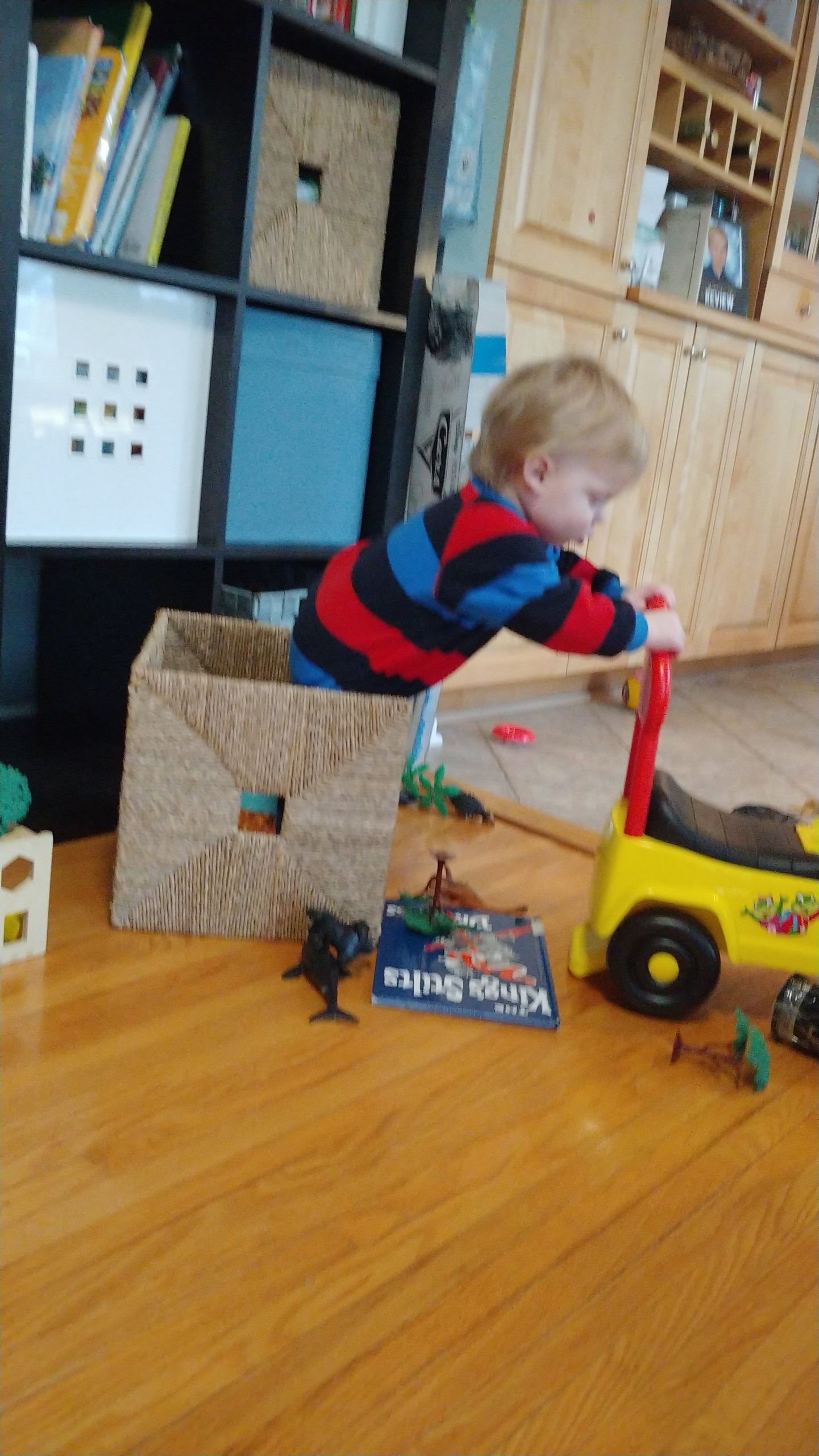 The year mark has brought many changes with the babies, as they are turning into little toddlers. Already in sight are the toddlers’ strong opinions and likely tantrums! Cadence and Asher both walk as their main form of transportation now, but are luckily still in slow motion, though they do tend to go in opposite directions. As their personalities develop, we continue to see more differences between all three kids. Cadence is focused on fine motor skills, trying to eat with utensils, do puzzles, and waving whenever we say hi. Asher has learned to push his ride-on toys up to other furniture to climb up higher, and is constantly surprising us with his escape routes and newest conquests. He never uses the door to get into his new car, and climbs over it instead. Asher plays pretty well independently, while Cadence spends more time pointing to everything over head and wanting to be held up to see. She will sit for long periods to turn pages in books, and will bring us book after book to be read to her. They both hate when doors or gates are closed and they are left behind. They can’t be left out of sight for even a minute, with the latest example when Lindy turned around to find Asher in the bathroom sink! Unfortunately the fighting has started already too – but it is mainly Cadence who keeps walking up to Asher and bonking him on the head or pushing him out of the way!