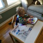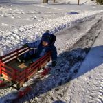 So there aren’t as many photos in this post as usual…due to censorship. Now that Isaac is potty training, it is almost impossible to get him to put pants on. The few times that we were able to get him dressed and out of the house, we went tobogganing, tried skiing and skating. Isaac also really enjoys rebuilding the melting snowmen left behind in the schoolyard – or building his own tiny snowmen.