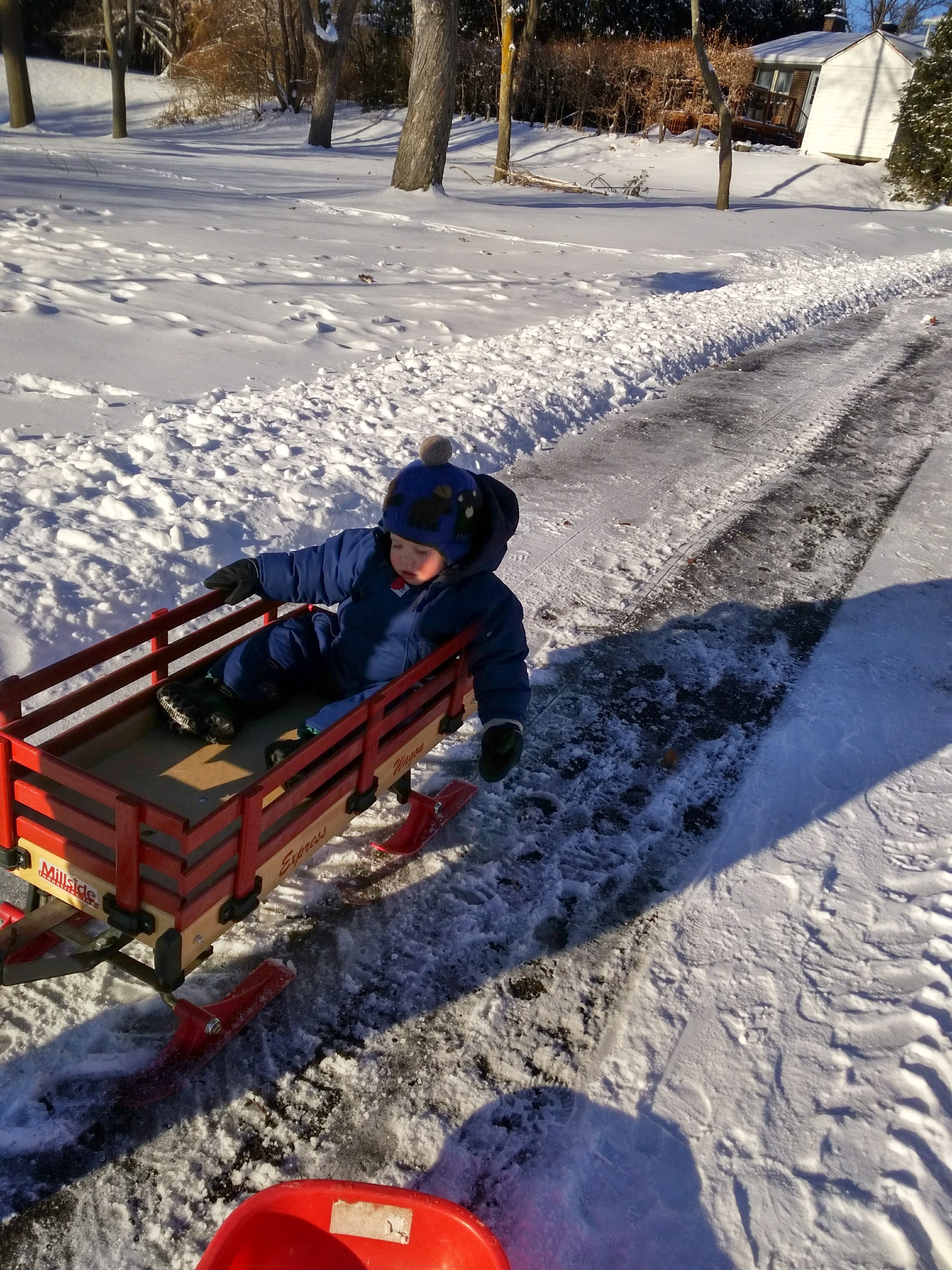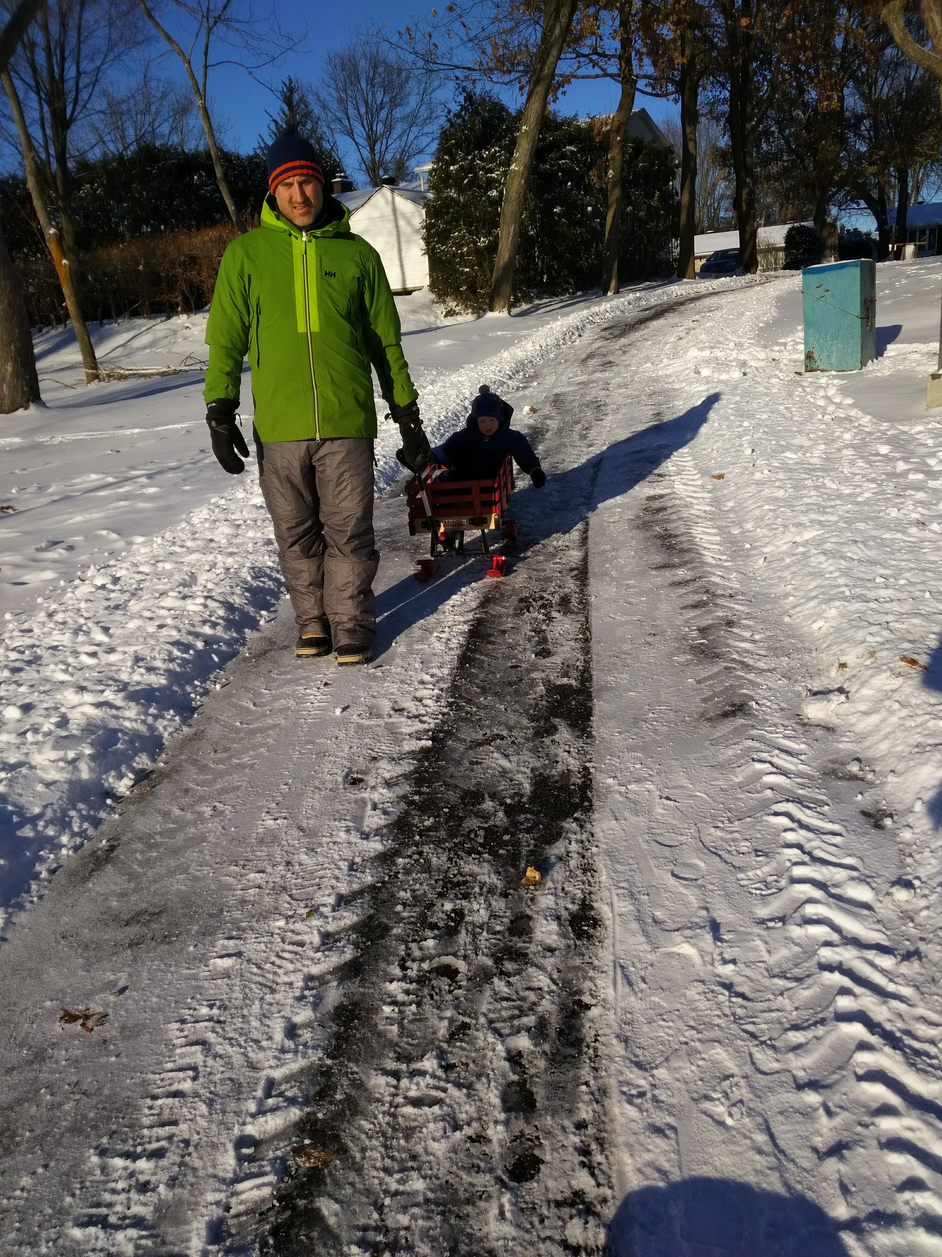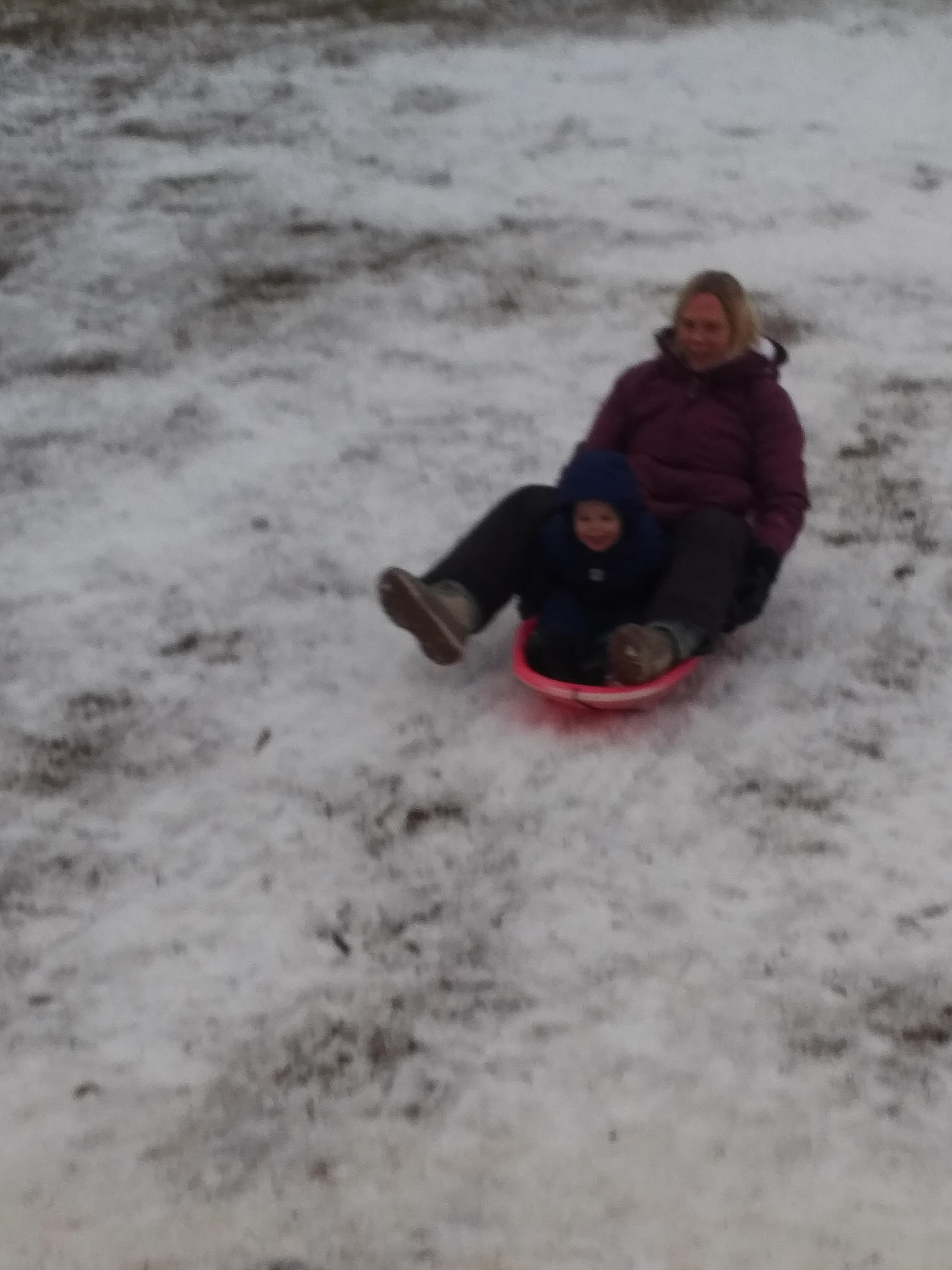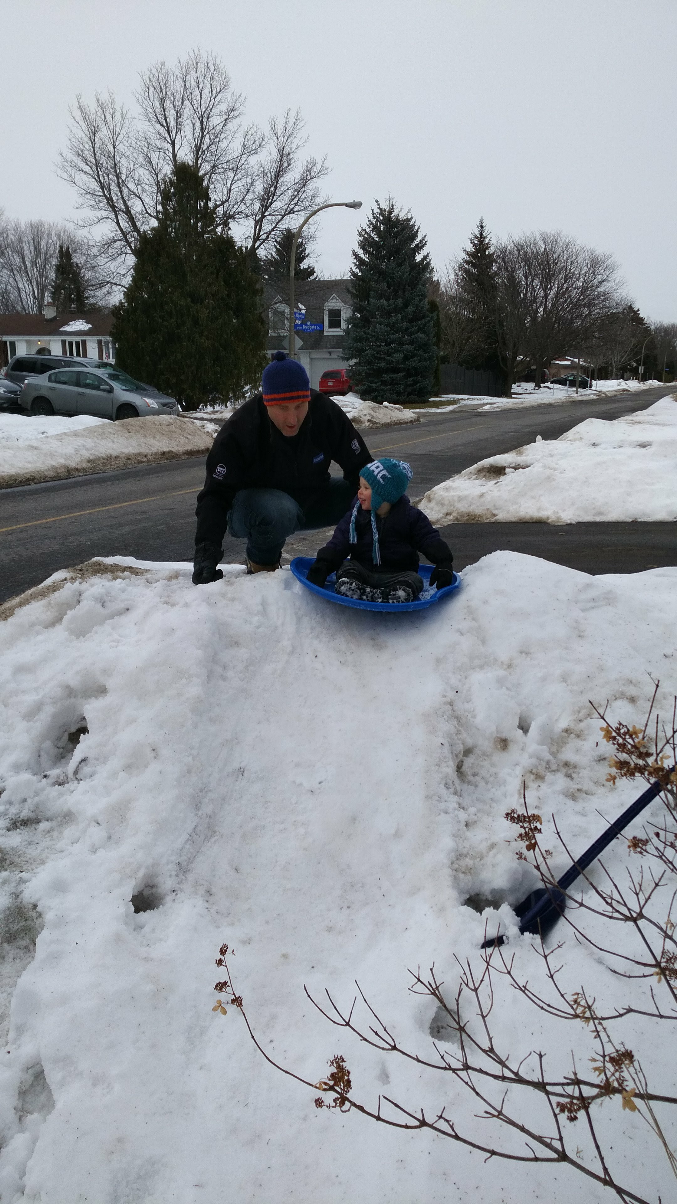 So there aren’t as many photos in this post as usual…due to censorship. Now that Isaac is potty training, it is almost impossible to get him to put pants on. The few times that we were able to get him dressed and out of the house, we went tobogganing, tried skiing and skating. Isaac also really enjoys rebuilding the melting snowmen left behind in the schoolyard – or building his own tiny snowmen.