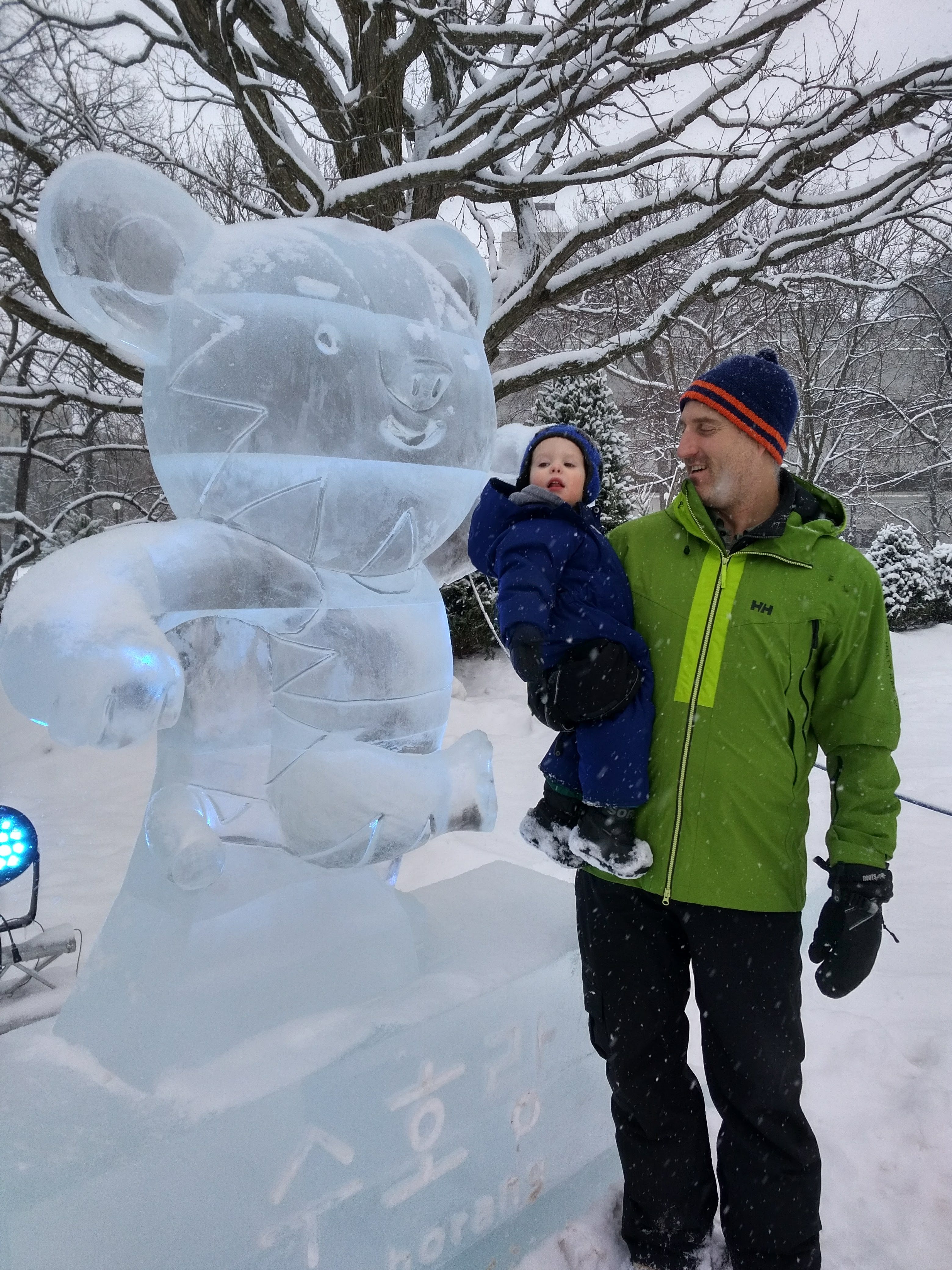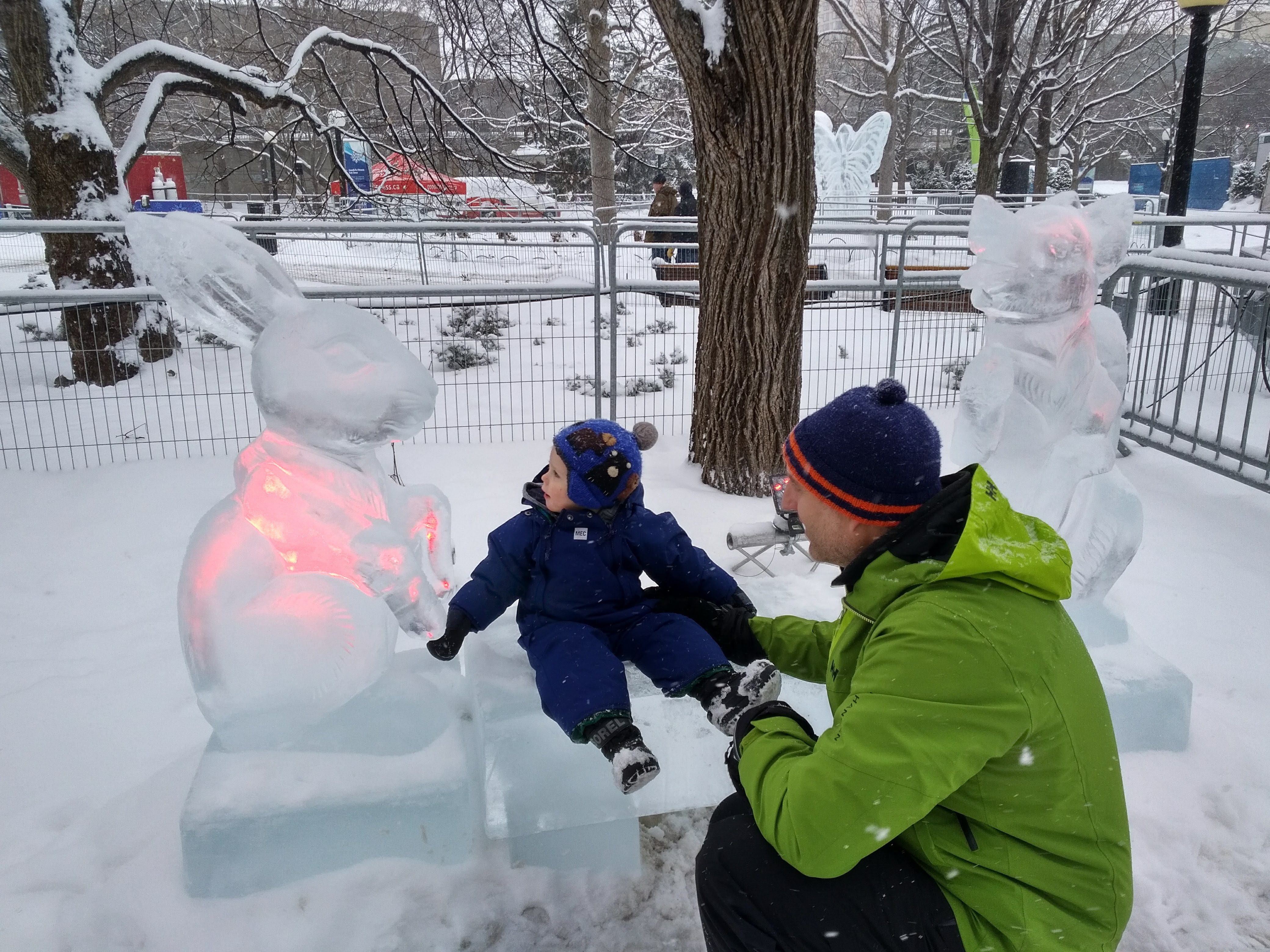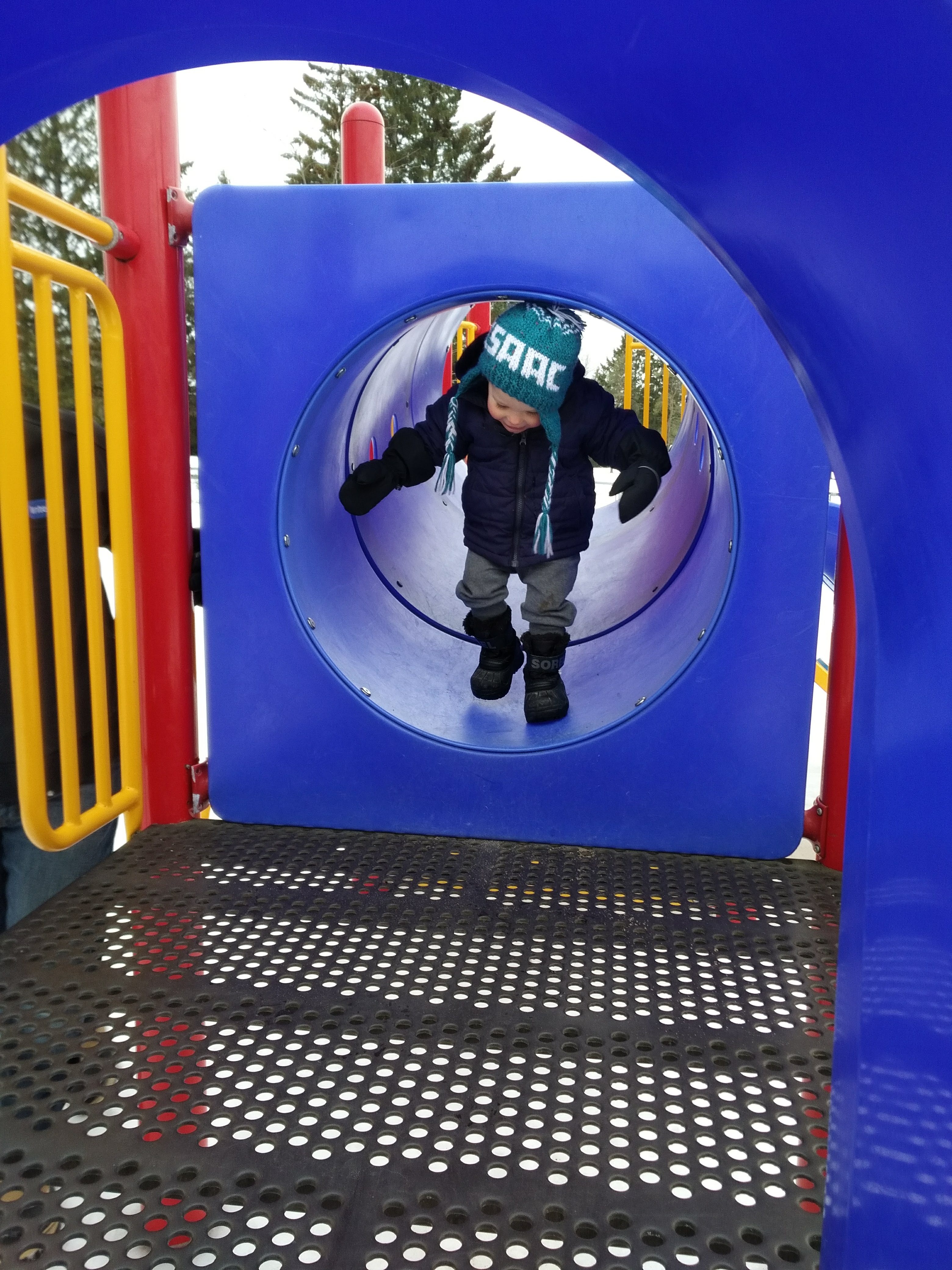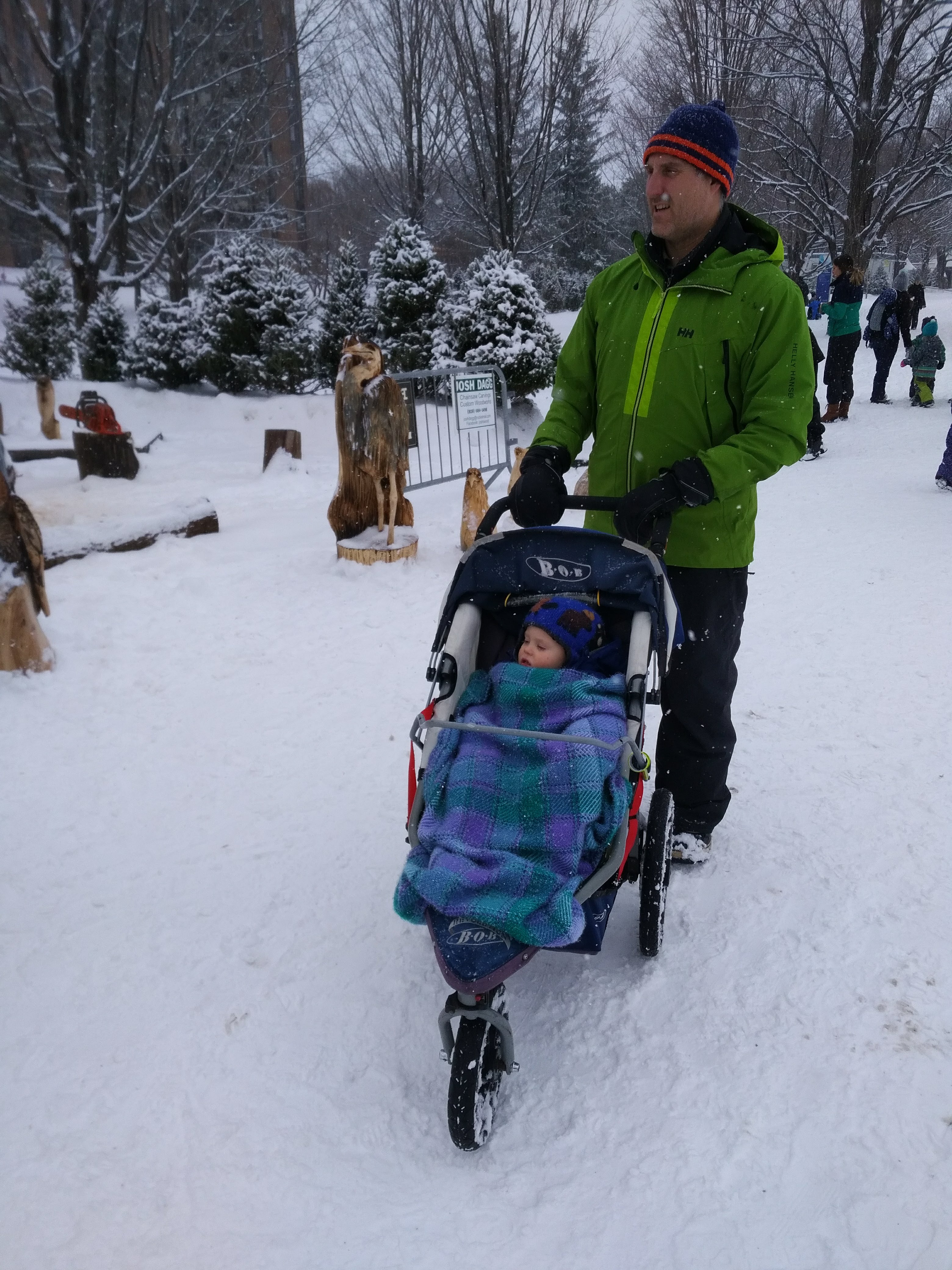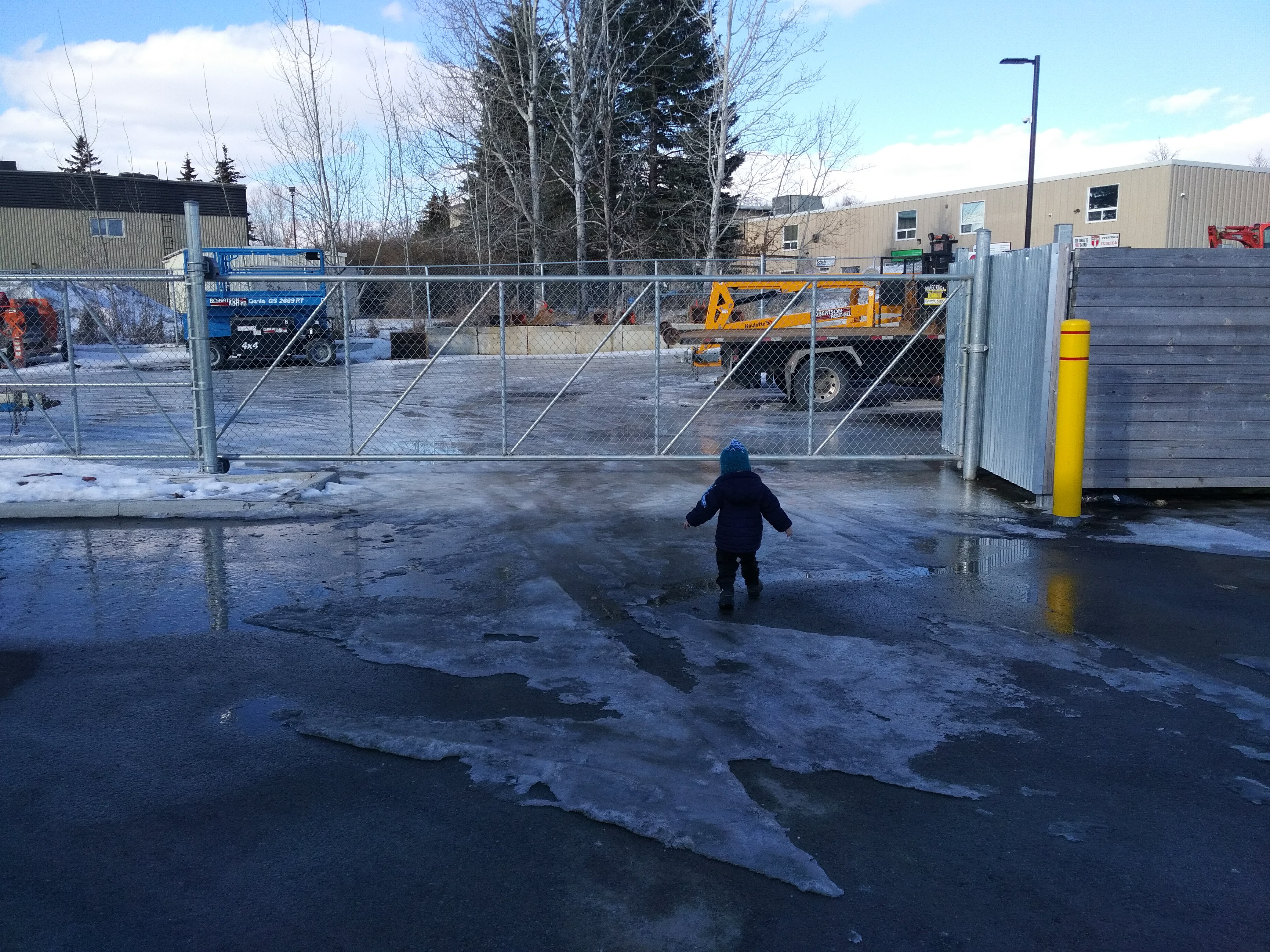 So there aren’t as many photos in this post as usual…due to censorship. Now that Isaac is potty training, it is almost impossible to get him to put pants on. The few times that we were able to get him dressed and out of the house, we went tobogganing, tried skiing and skating. Isaac also really enjoys rebuilding the melting snowmen left behind in the schoolyard – or building his own tiny snowmen.