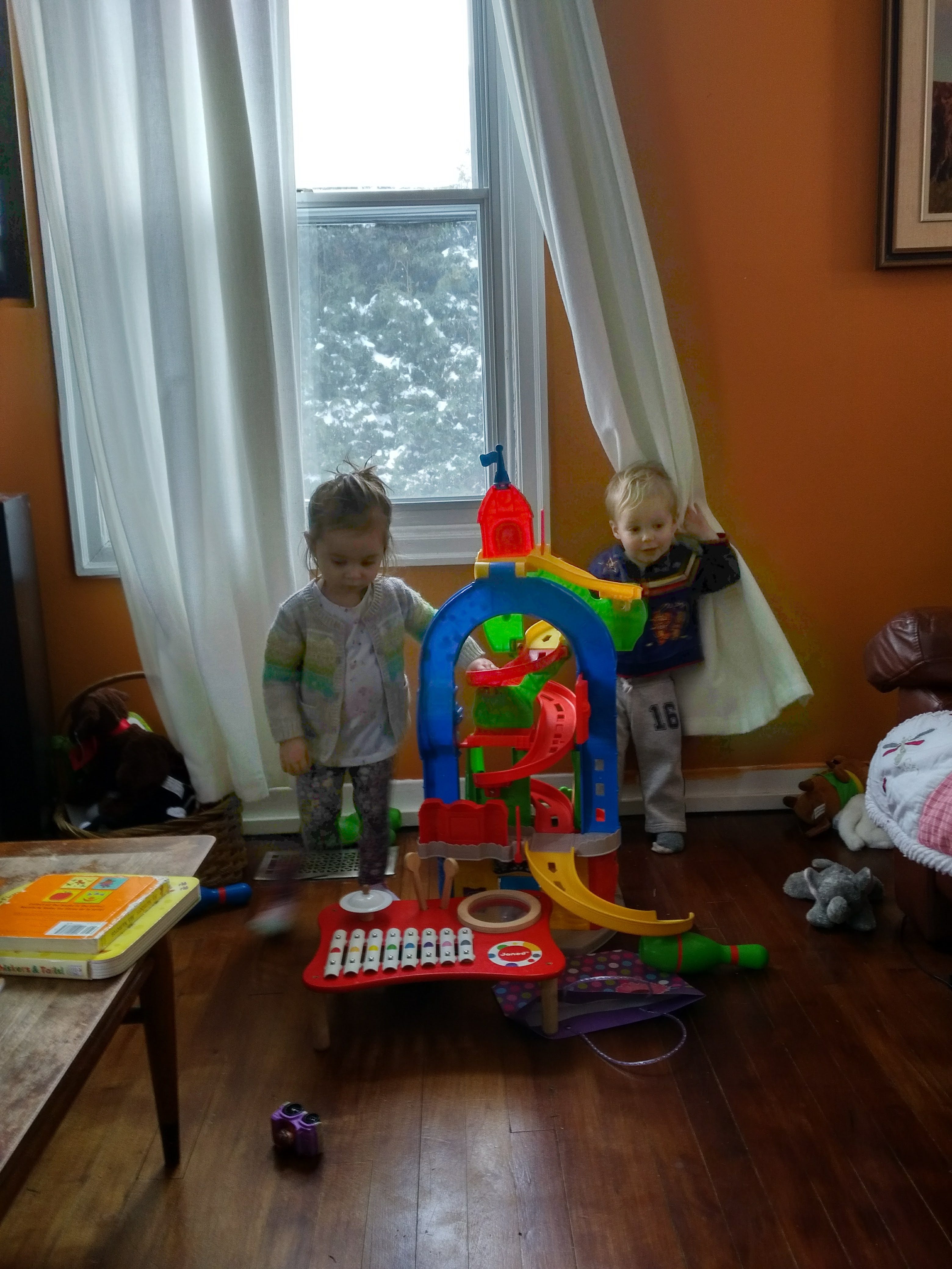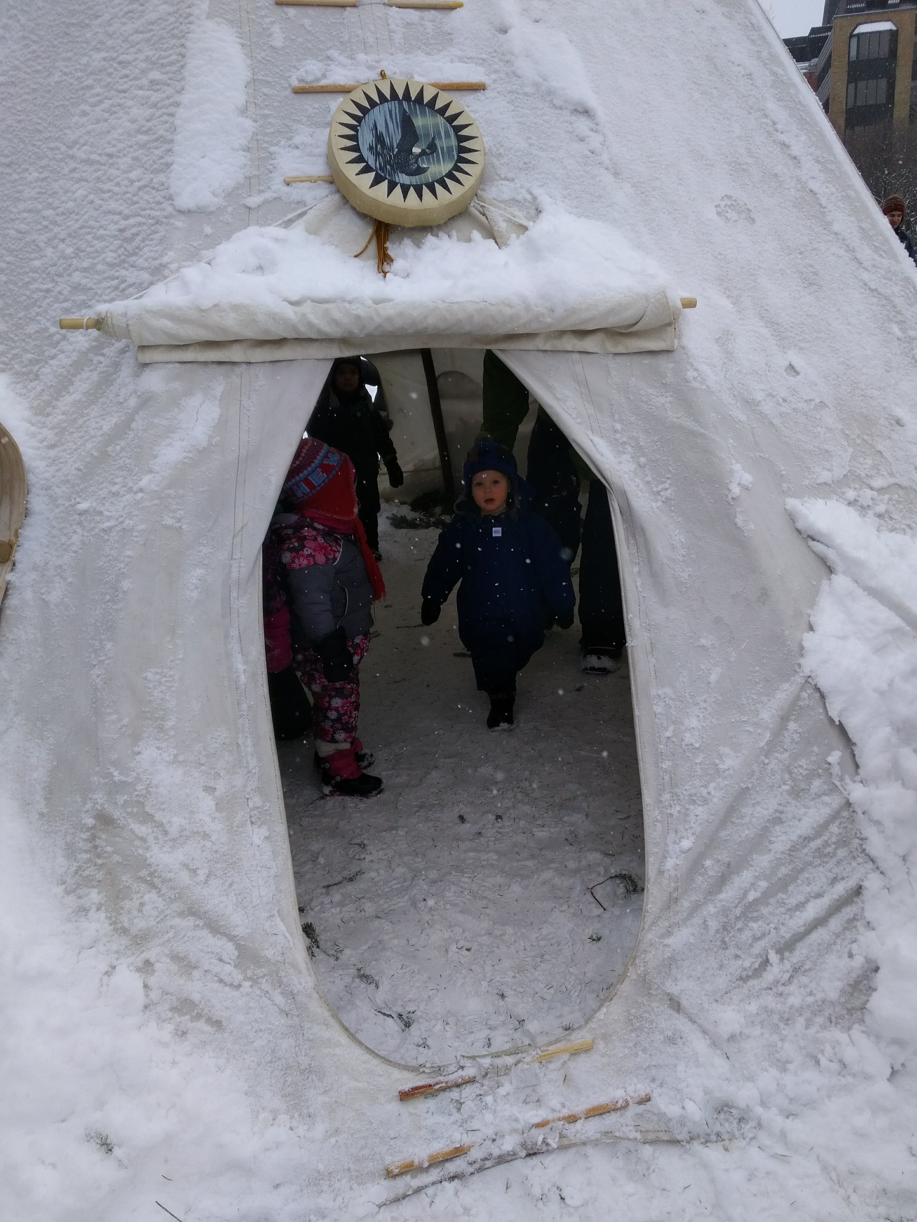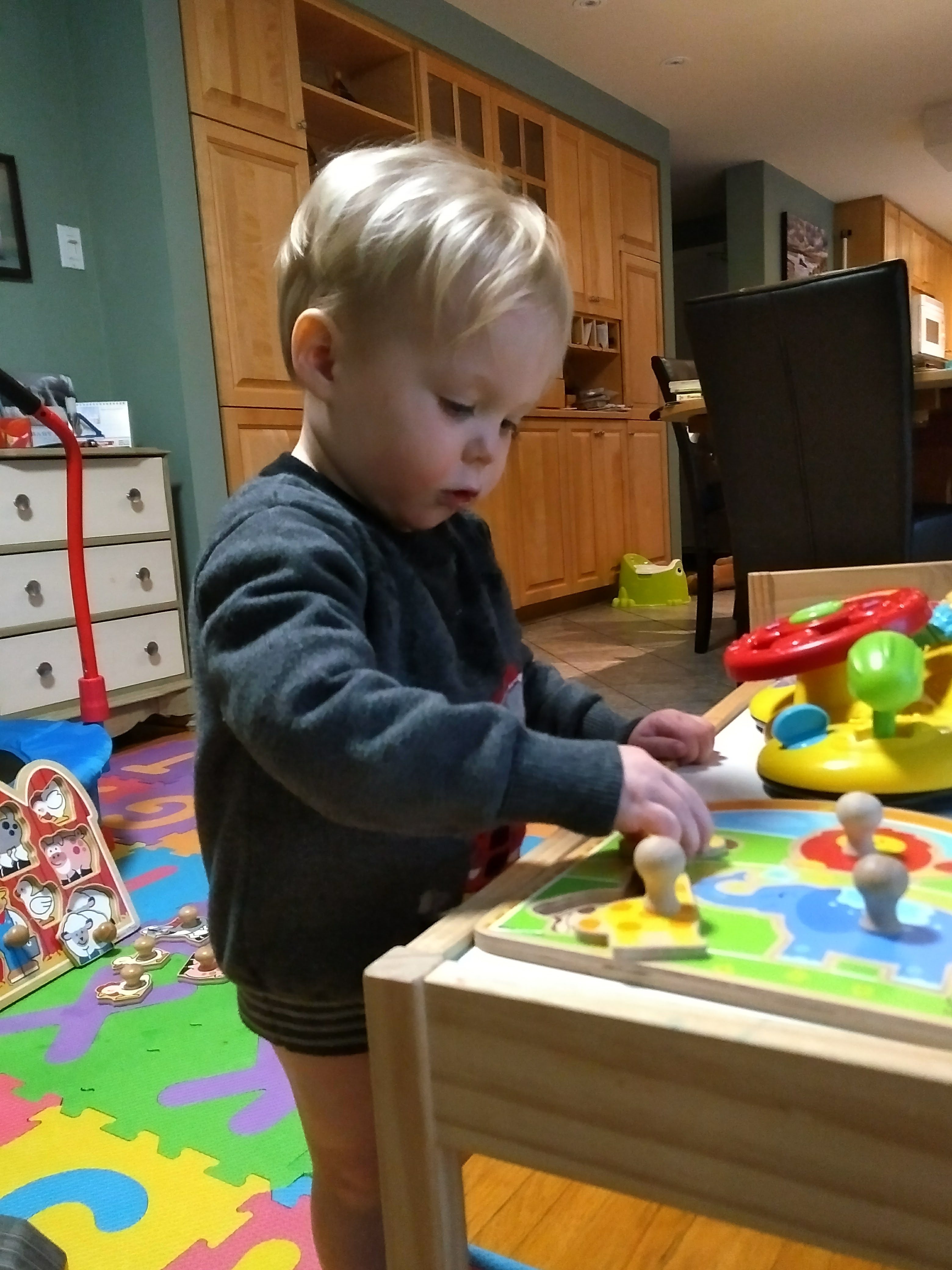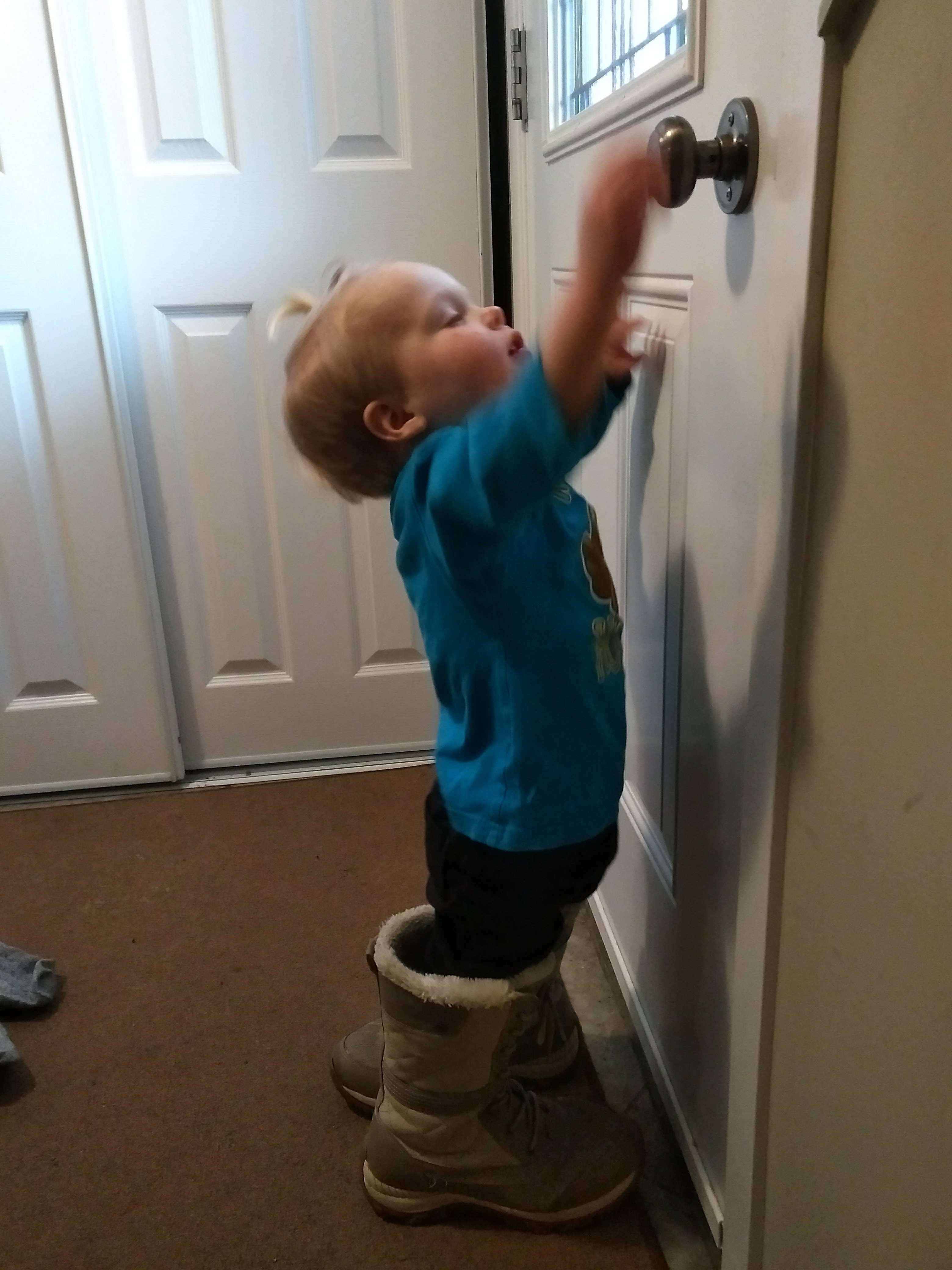 So there aren’t as many photos in this post as usual…due to censorship. Now that Isaac is potty training, it is almost impossible to get him to put pants on. The few times that we were able to get him dressed and out of the house, we went tobogganing, tried skiing and skating. Isaac also really enjoys rebuilding the melting snowmen left behind in the schoolyard – or building his own tiny snowmen.