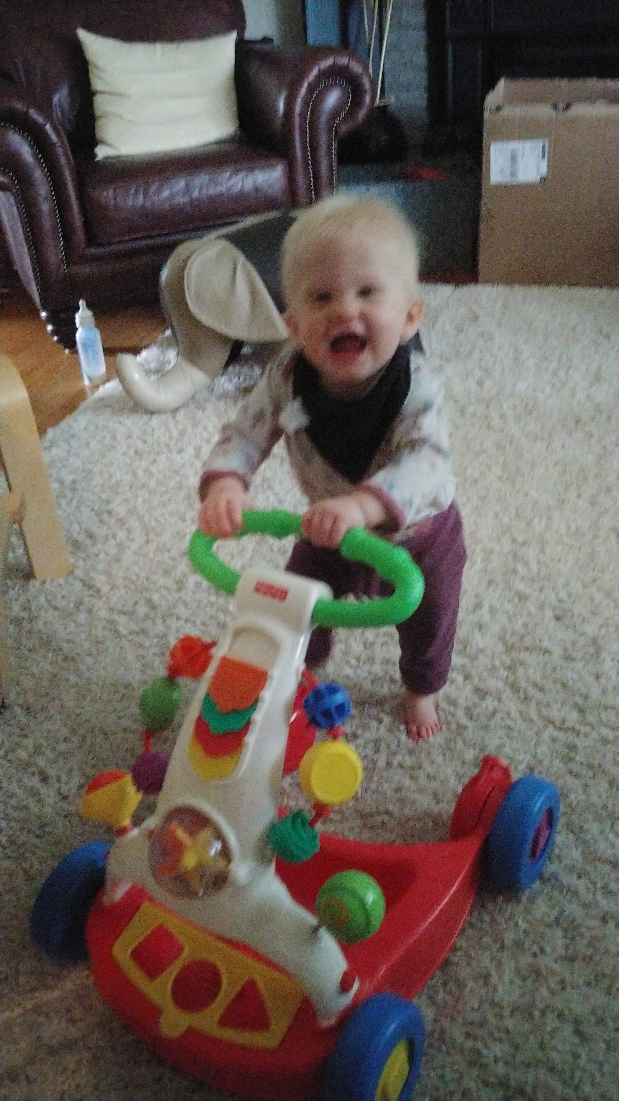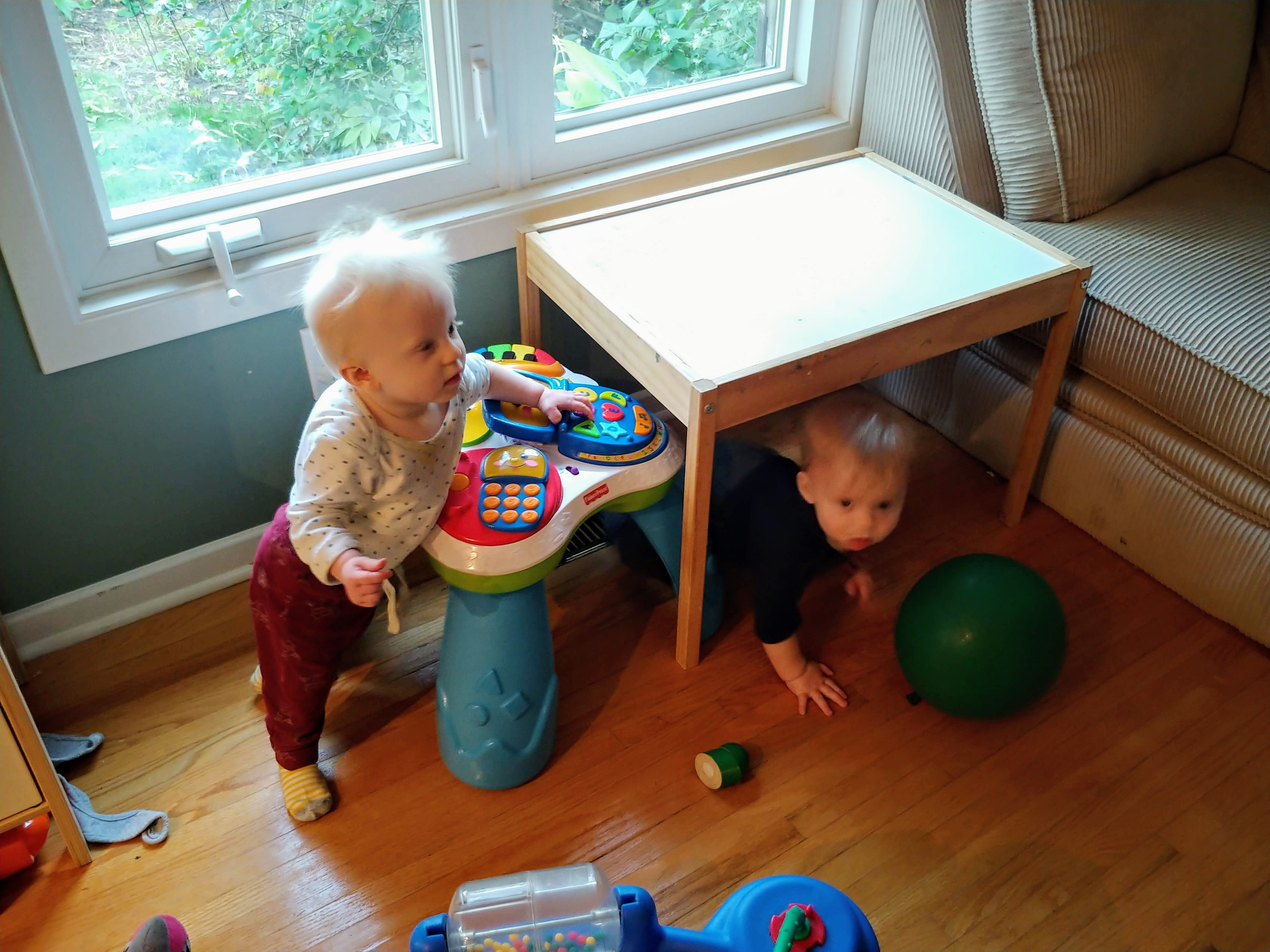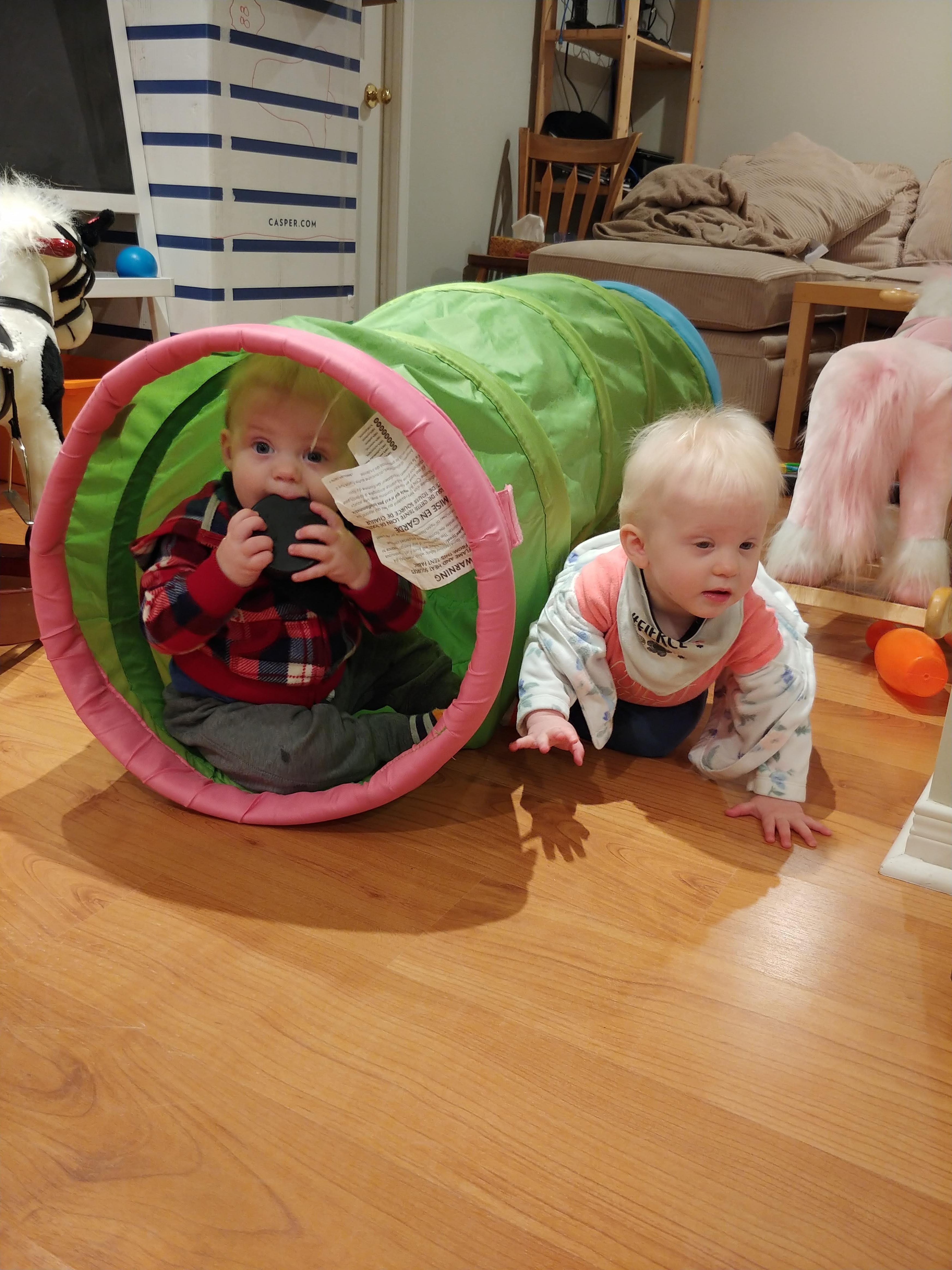 The babies have been having fun, and are scarily close to walking… They love to crawl through and under things and are continuously getting stuck in odd situations. They’ve switched to two naps which has been an adjustment, but their naps are now more reliable than not, and often a much needed nap for Lindy too. Teething continues but Asher now has a tooth! Cadence is quite the chatter box. We might be getting somewhere with their sleep (knock on wood), as Asher has slept through the night twice now, though not in a row…of course the other two were still up several times. Cadence has been slowly weaning off nursing, but still wakes in the night and sometimes early in the morning – and she used to be the good sleeper!