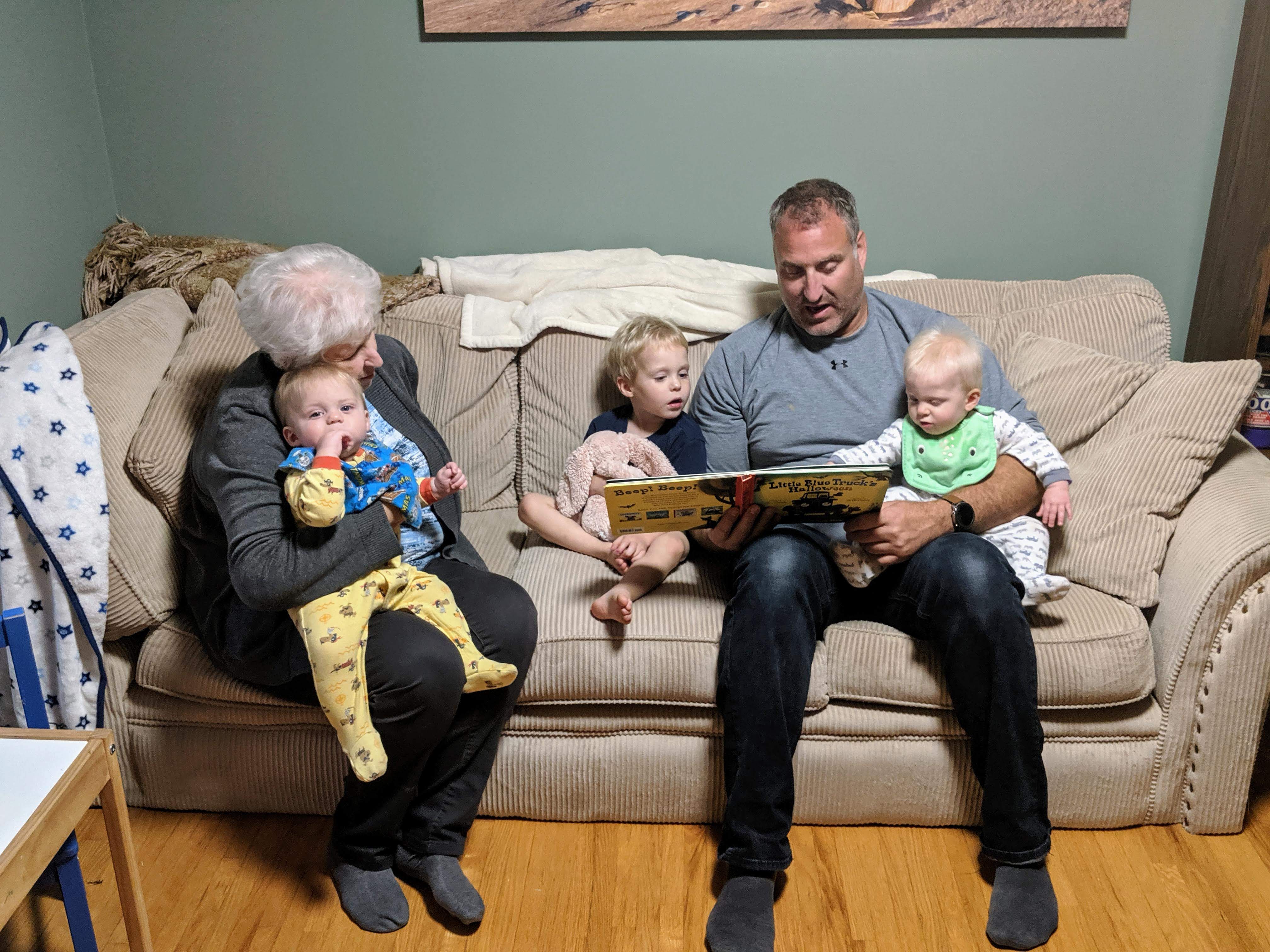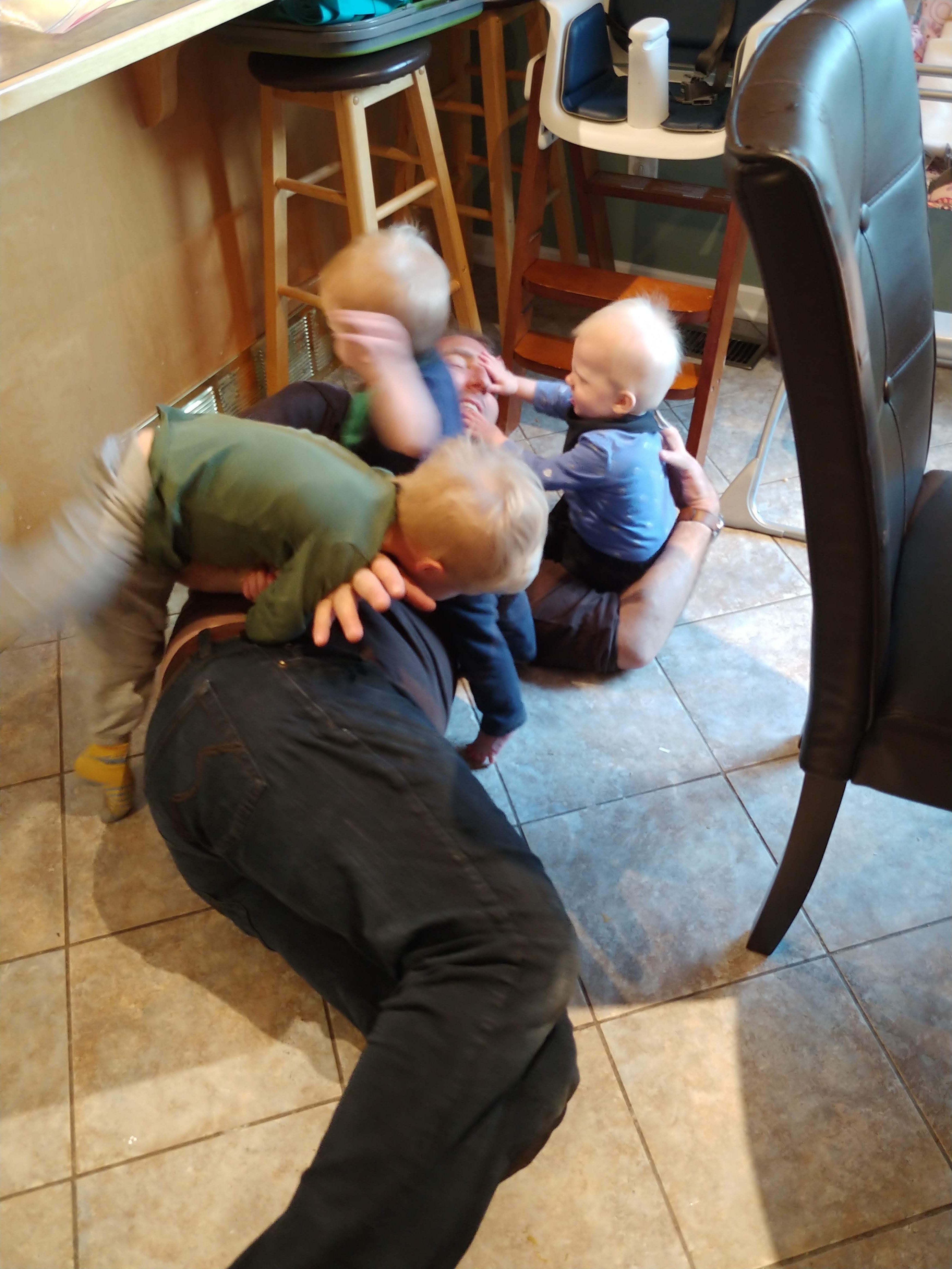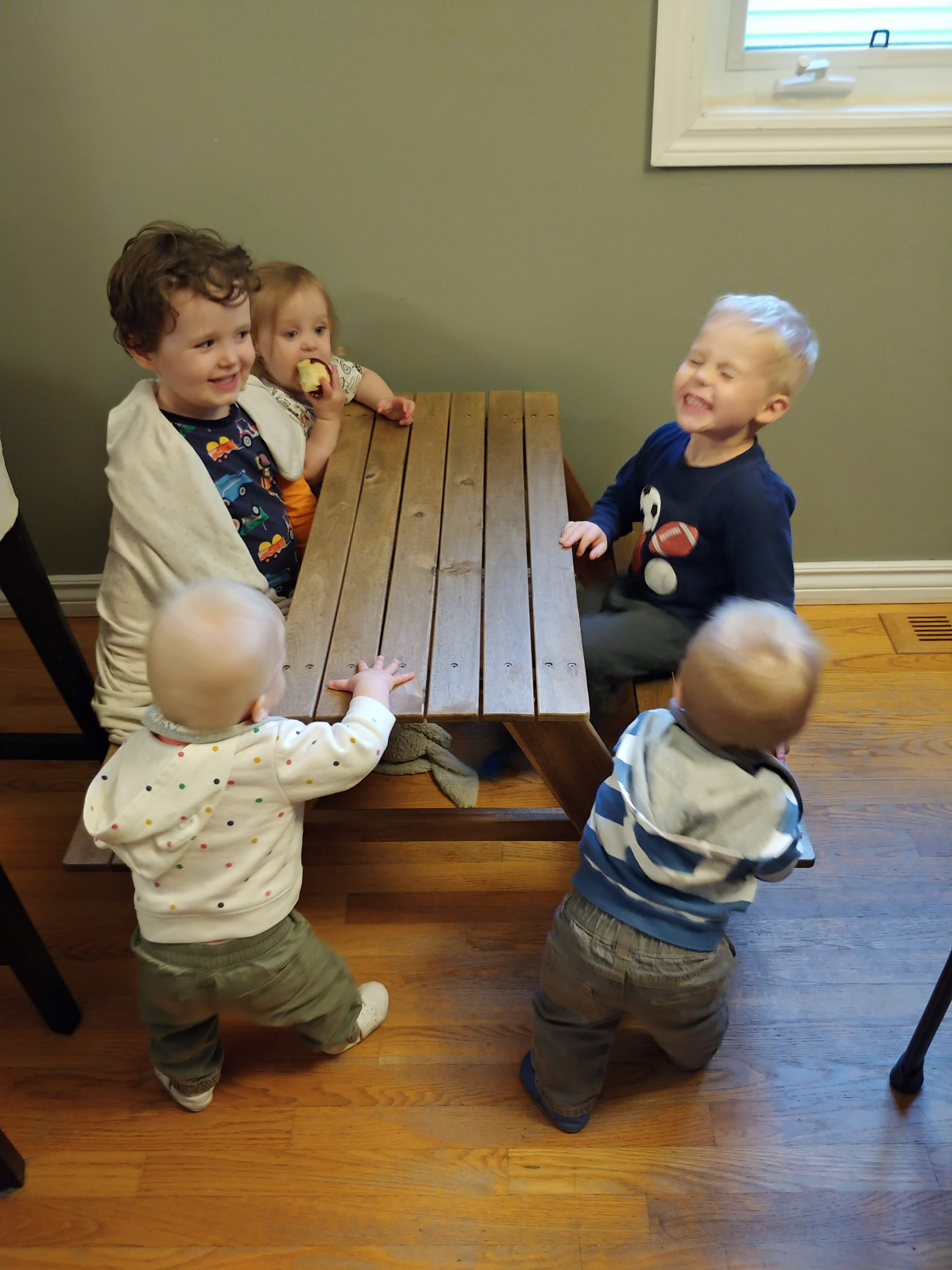 The babies have been having fun, and are scarily close to walking… They love to crawl through and under things and are continuously getting stuck in odd situations. They’ve switched to two naps which has been an adjustment, but their naps are now more reliable than not, and often a much needed nap for Lindy too. Teething continues but Asher now has a tooth! Cadence is quite the chatter box. We might be getting somewhere with their sleep (knock on wood), as Asher has slept through the night twice now, though not in a row…of course the other two were still up several times. Cadence has been slowly weaning off nursing, but still wakes in the night and sometimes early in the morning – and she used to be the good sleeper!