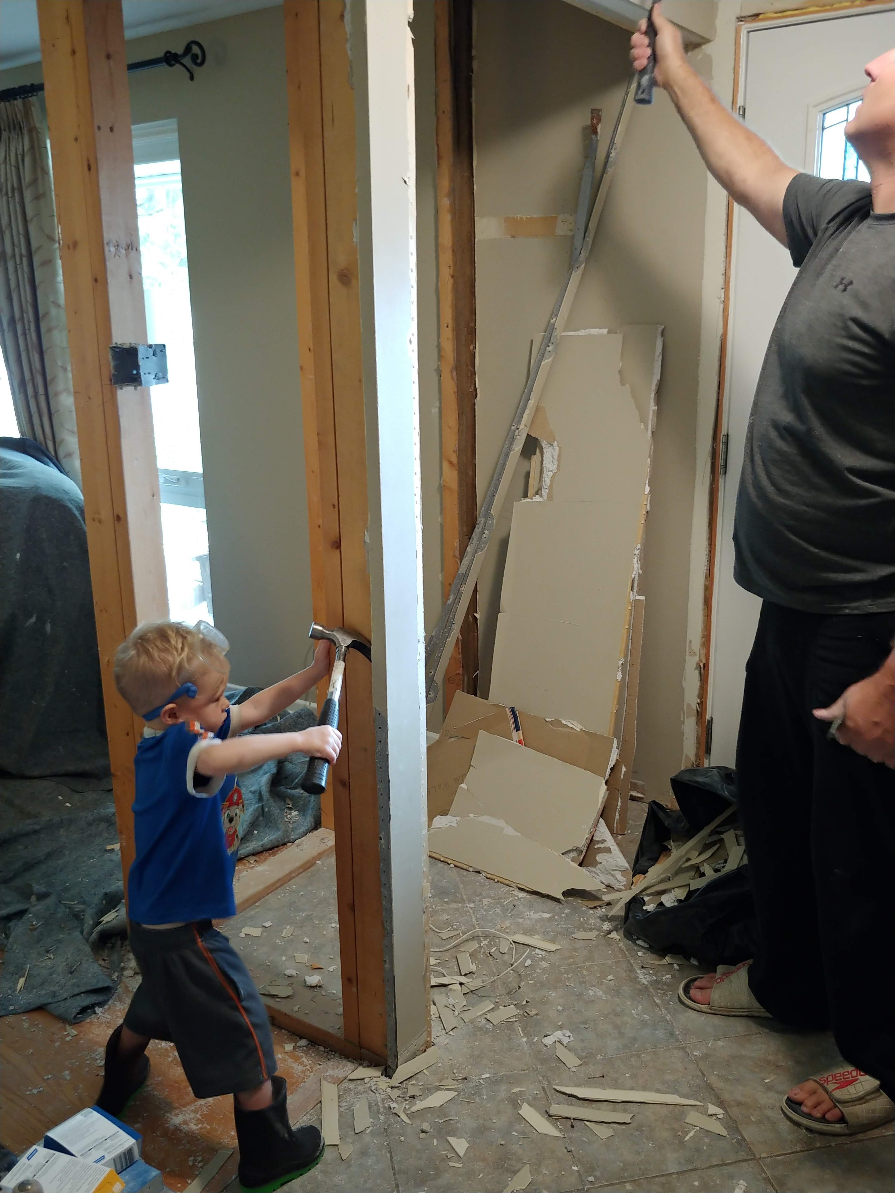 Unfortunately we’ve been stuck in survival mode for a few weeks now. A combination of sleepless nights, renovations, and the kids having colds, has exhausted us all. Although Isaac has been extremely intent on helping daddy with the front hall project that is now completely underway (turning our house a bit upside down!) Isaac and daddy have been working hard!