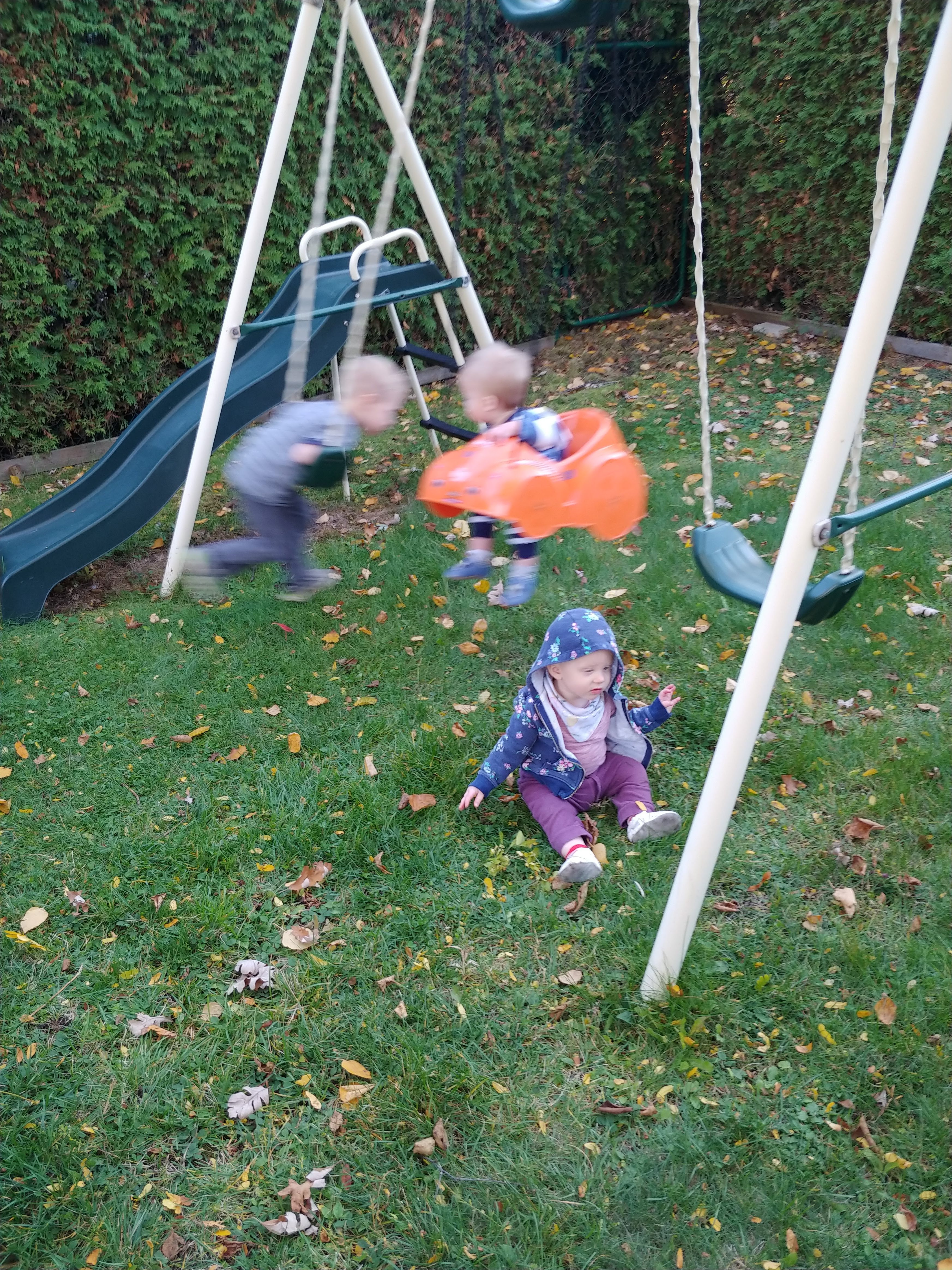 Jon enjoyed his getaway at the end of September, and his sailing team came in 2nd! He was able to get a few more hours of sleep in a row and a bit of relief from the daily grind. The weekend was much harder for Lindy et al. even with an abundance of help! Christine was desperately needed overnight, when at one point all three kids were screaming/crying at once. The only thing that calmed Isaac down that night was wondering what colour Christine’s car is…? Isaac enjoyed having her around in the morning too. Papa took Isaac to the museum for an entire day which helped tremendously, and Grandma and Aunt Brenda watched the babies while Lindy hit up the Twice as Nice sale and scored snowsuits and shoes and clothes for a great deal! Then we had a very nice day with Oma and Opa, and Aunt Joanne and Uncle Frank who were visiting. All was successful, minus the few hours Aunt Joanne spent in the hospital after surviving an Asher attack –> he scratched her cornea!! Jon arrived home around the same time Aunt Joanne got back, in better spirits with some pain killers, just in time for a big family dinner.